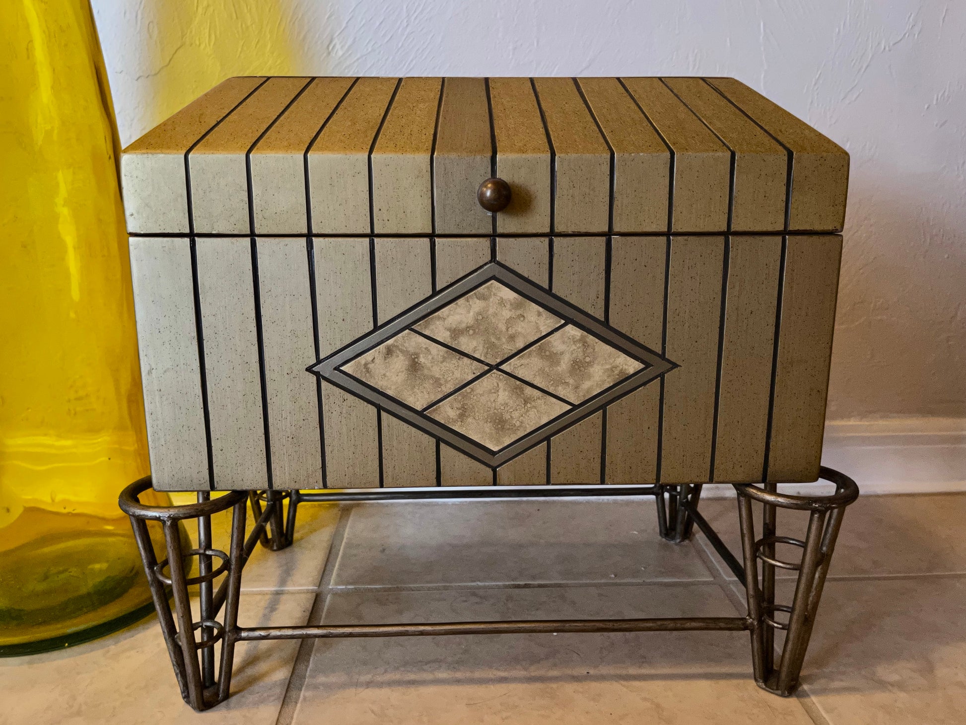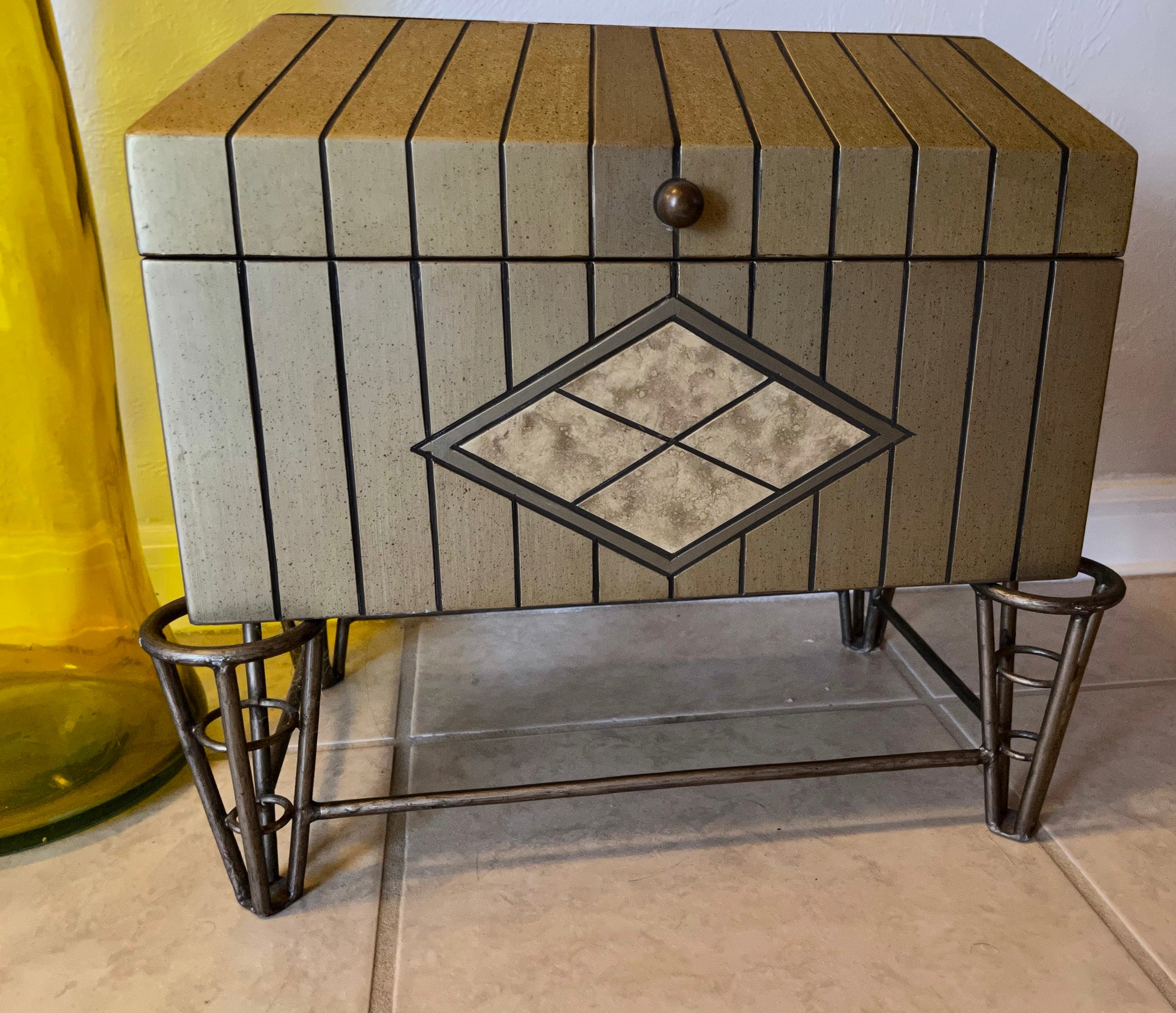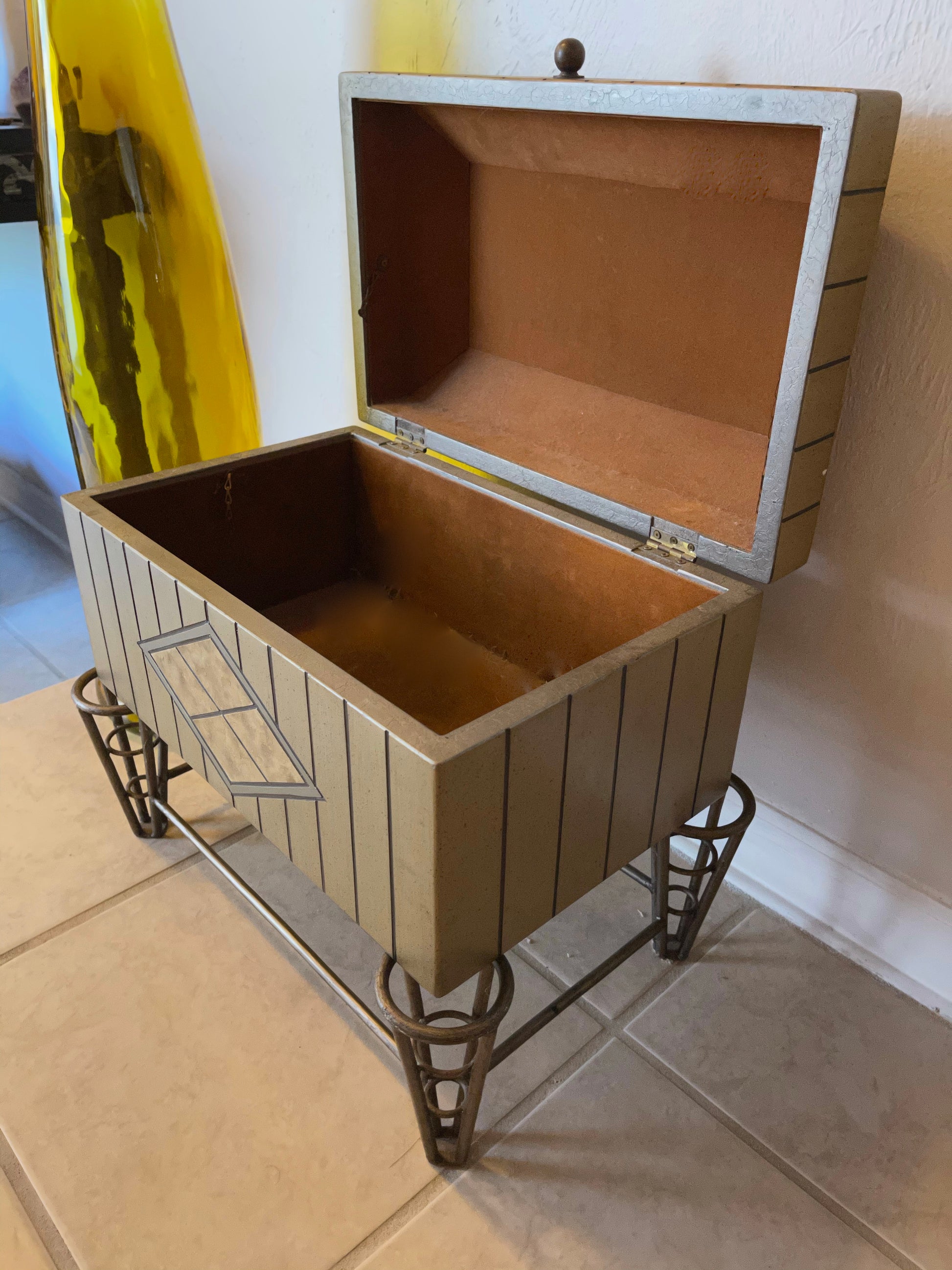 Art Deco Chest, Large Mid Century Modern Metal Trunk, Old World Vintage