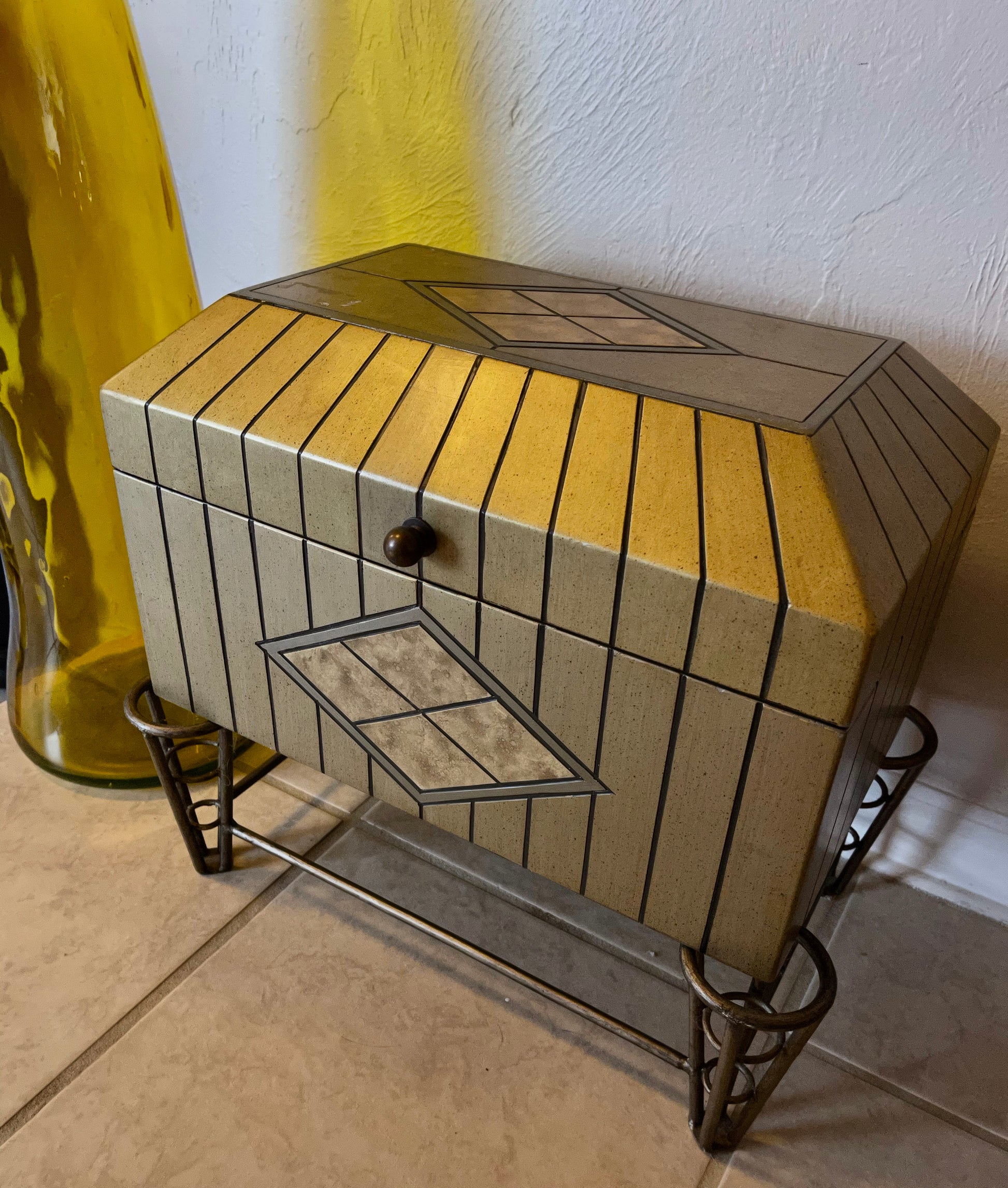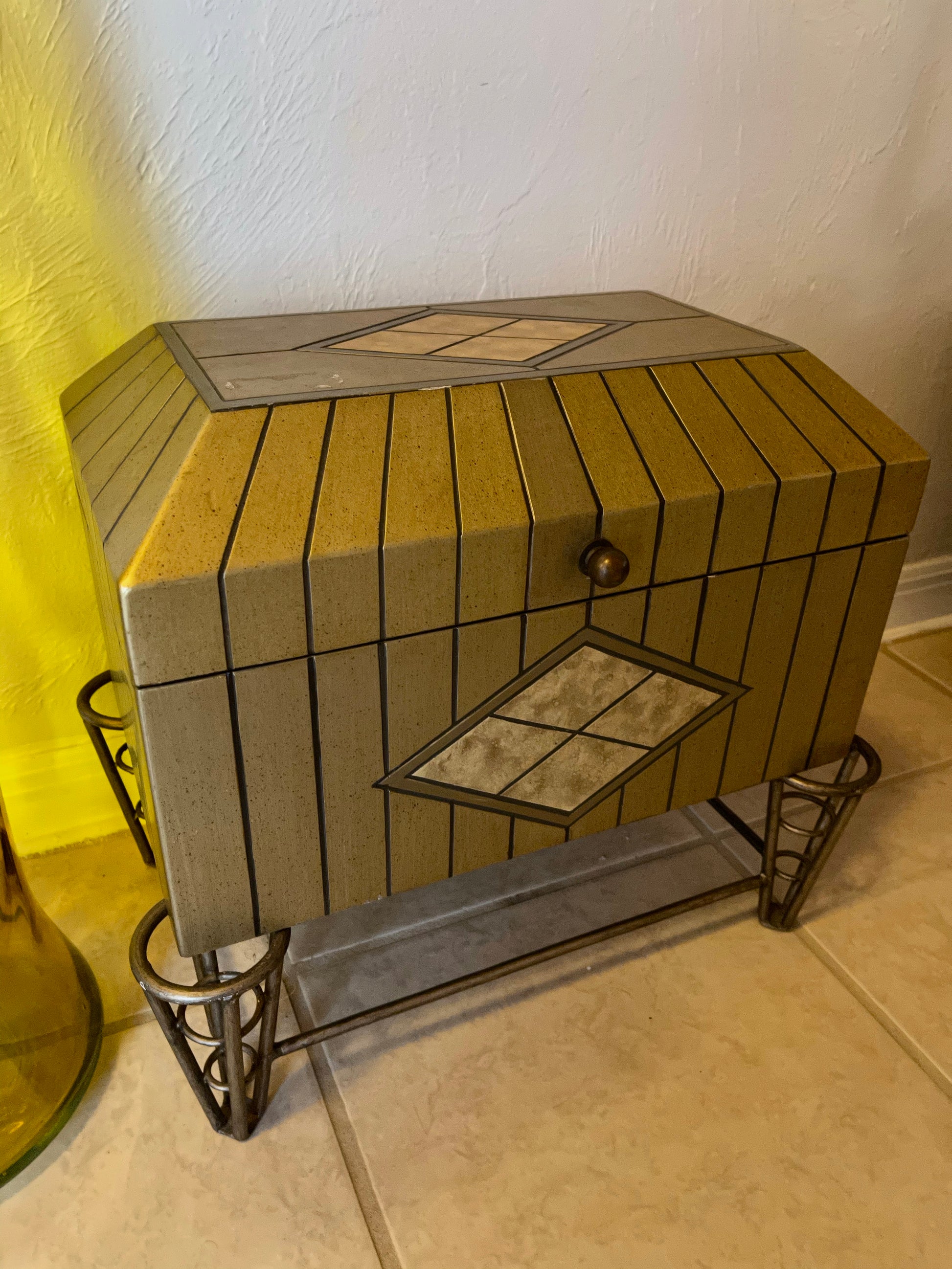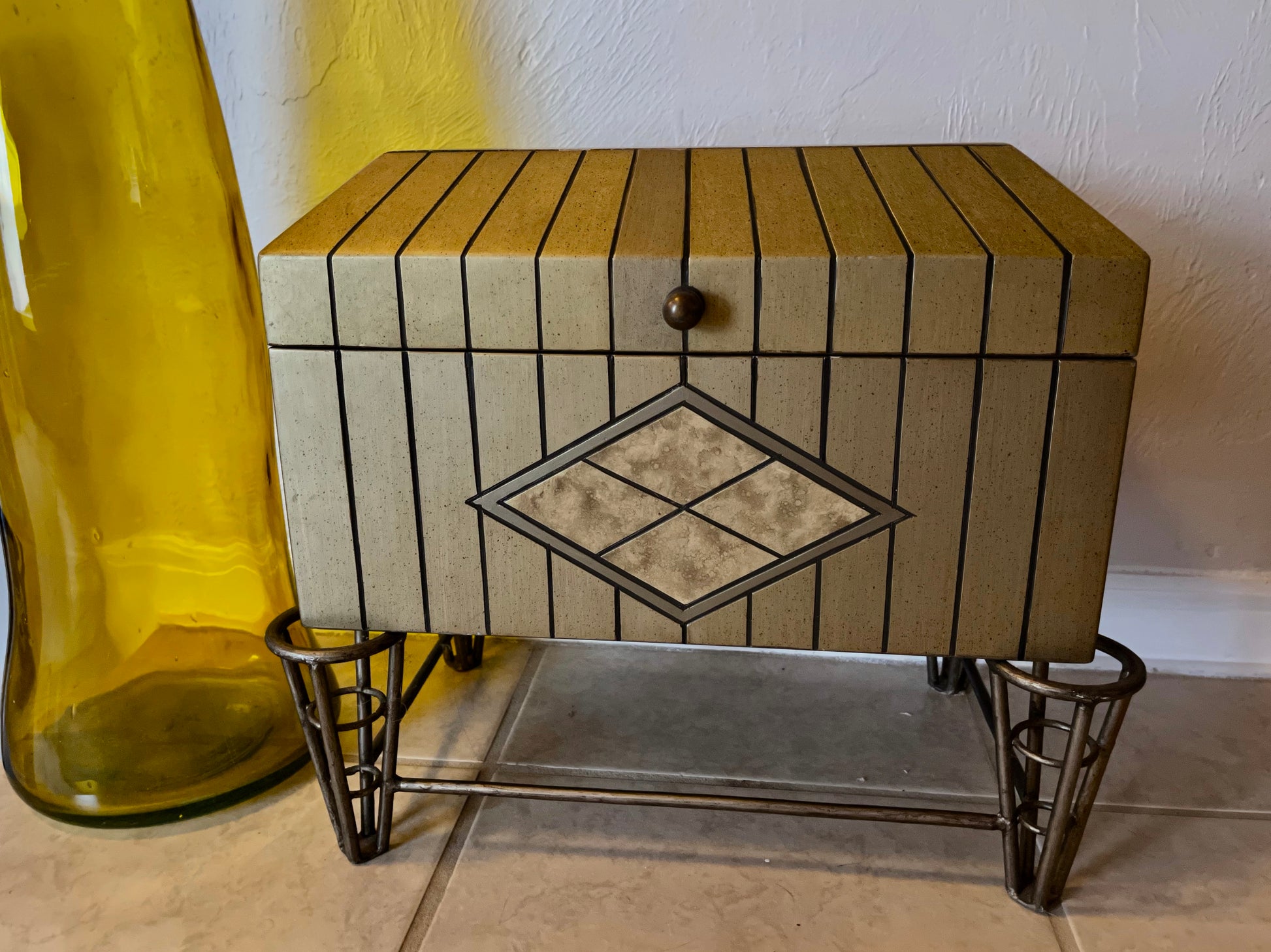 Art Deco Chest, Large Mid Century Modern Metal Trunk, Old World Vintage