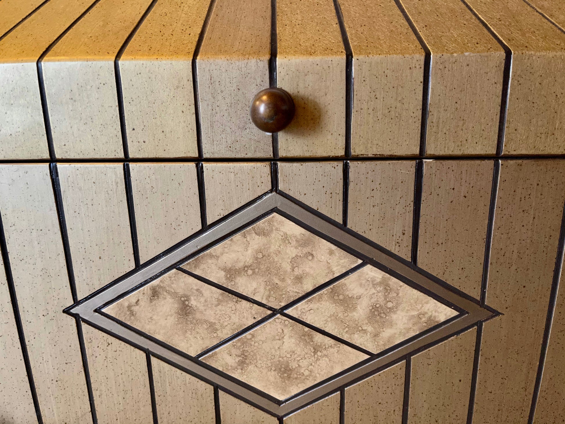 We are fortunate to live in an older area with many of the homes being built in the 1950's. This unusual and heavy piece was discovered at a local estate sale. Very handsome piece in fantastic vintage condition.