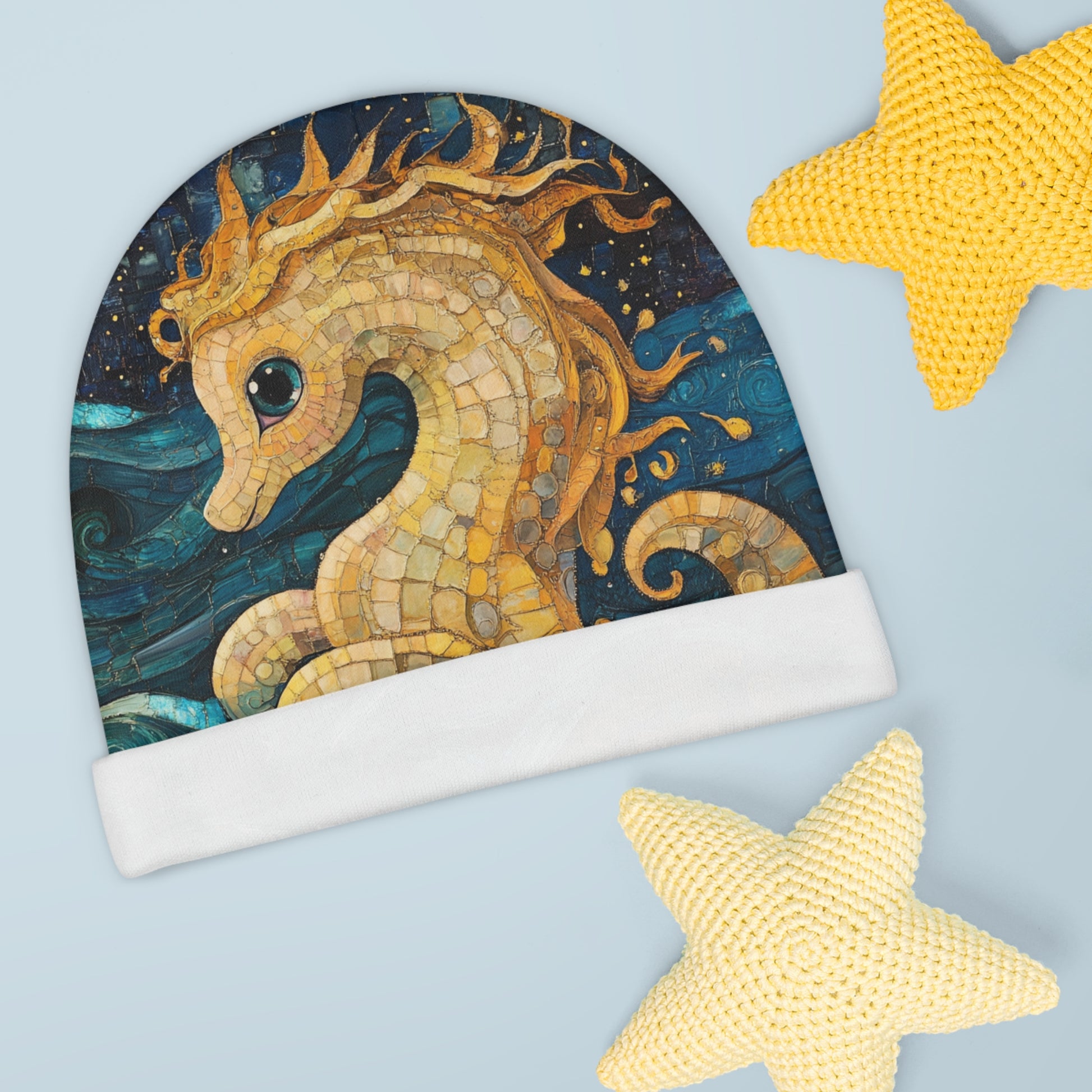 Wrap your little one in style and comfort with this charming Baby Beanie. Perfectly crafted for the adventurous spirits, this beanie radiates a playful vibe that embraces creativity and fun. Its unique design features a whimsical mythical Kelpie, adding a splash of color and personality to any outfit. Ideal for newborns and toddlers, this accessory is not only cute but also practical, making it a wonderful gift for baby showers, birthdays, or any celebration welcoming a new arrival. Dress your tiny trendsetter for winter outings, holiday celebrations, or cozy family gatherings with this delightful piece.