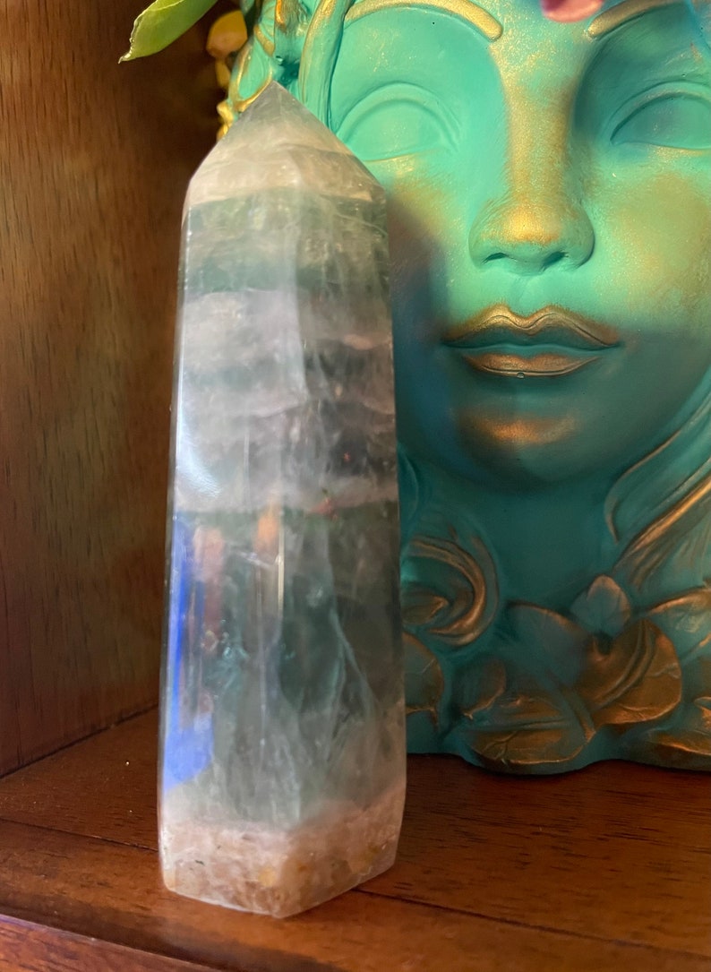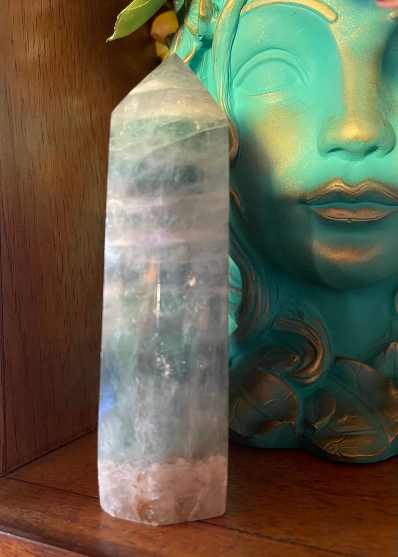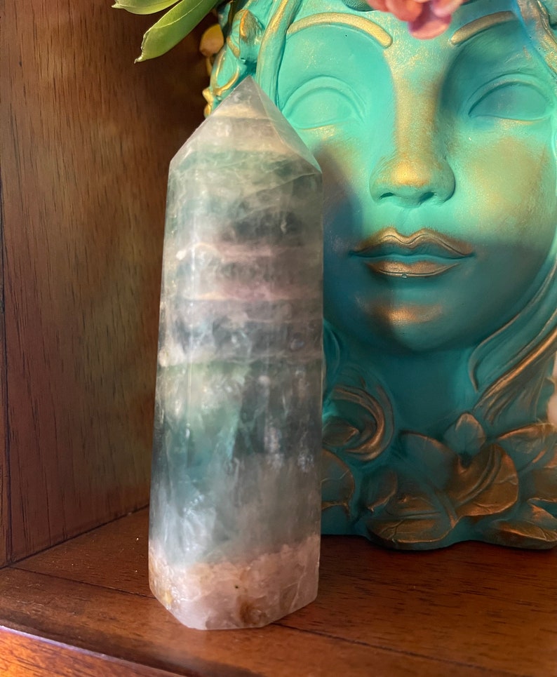 Multi-colored or rainbow fluorite cleanses one’s energy fields on all levels as well as connects the crown, third eye, throat, solar plexus and heart chakras.
