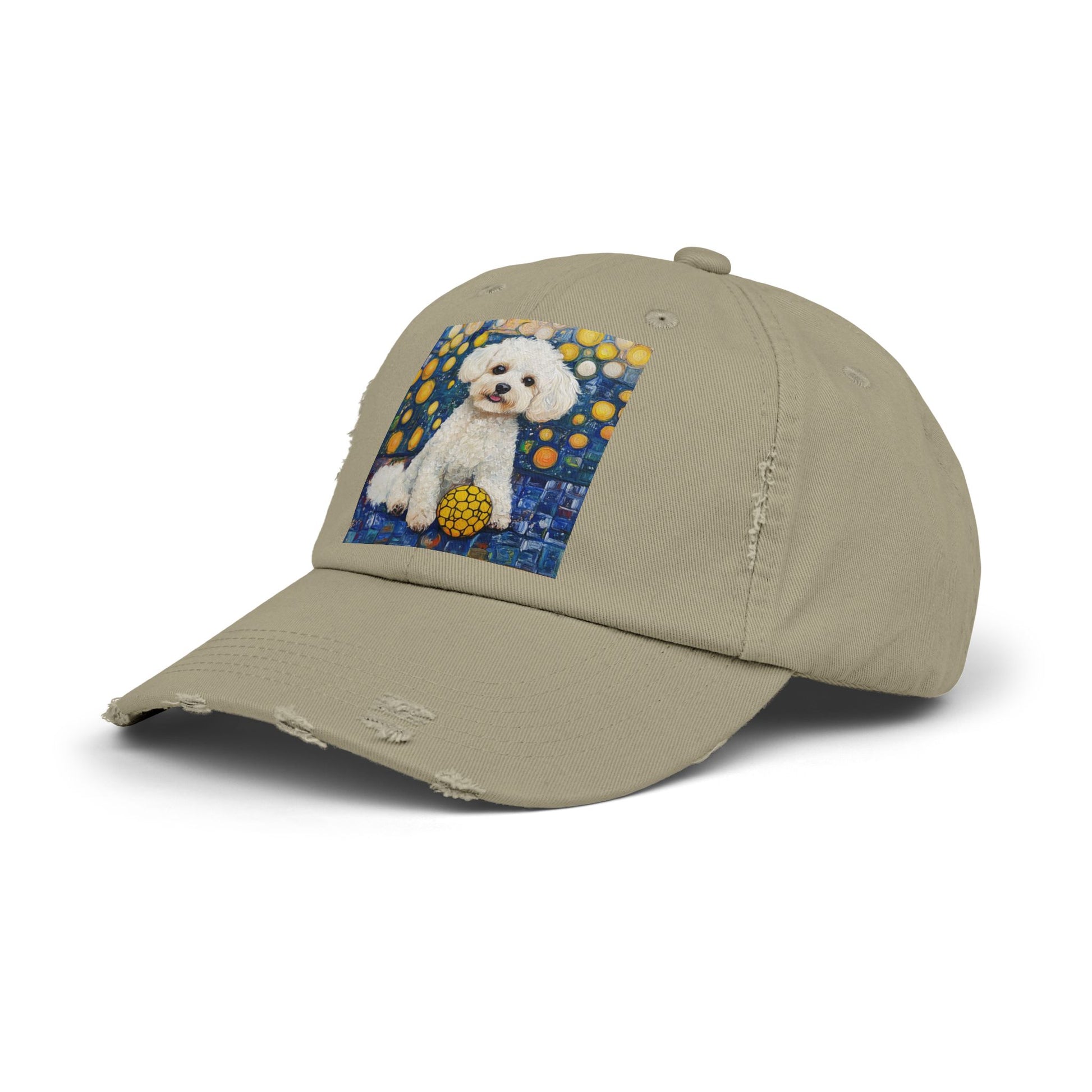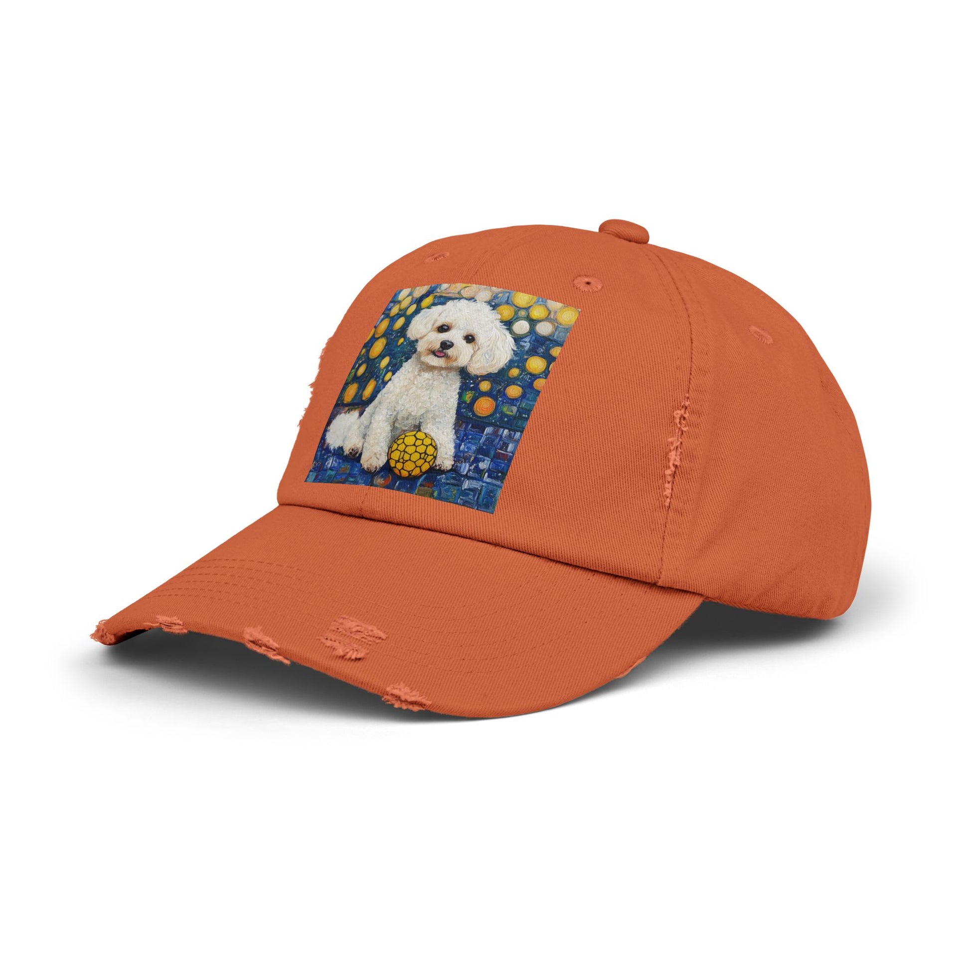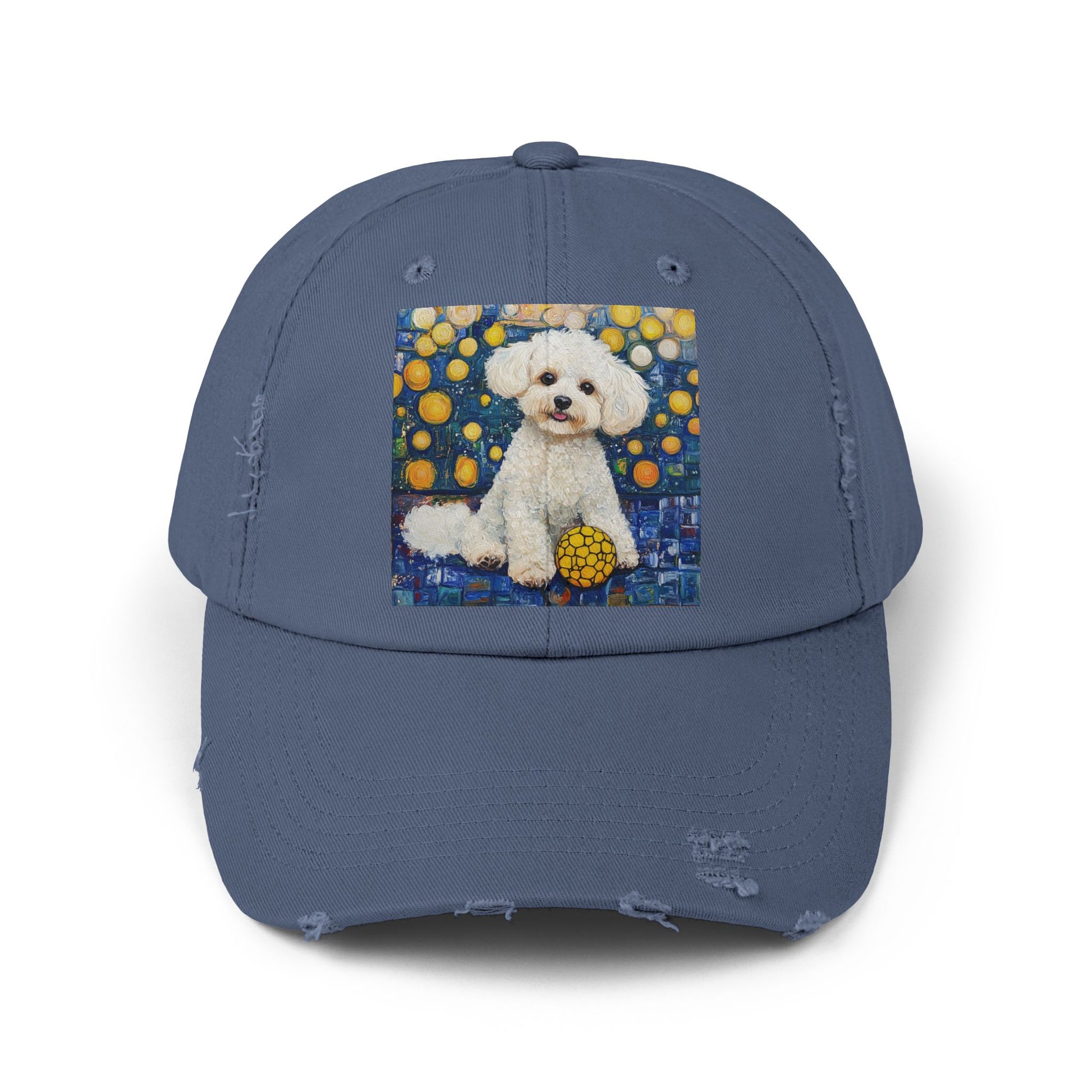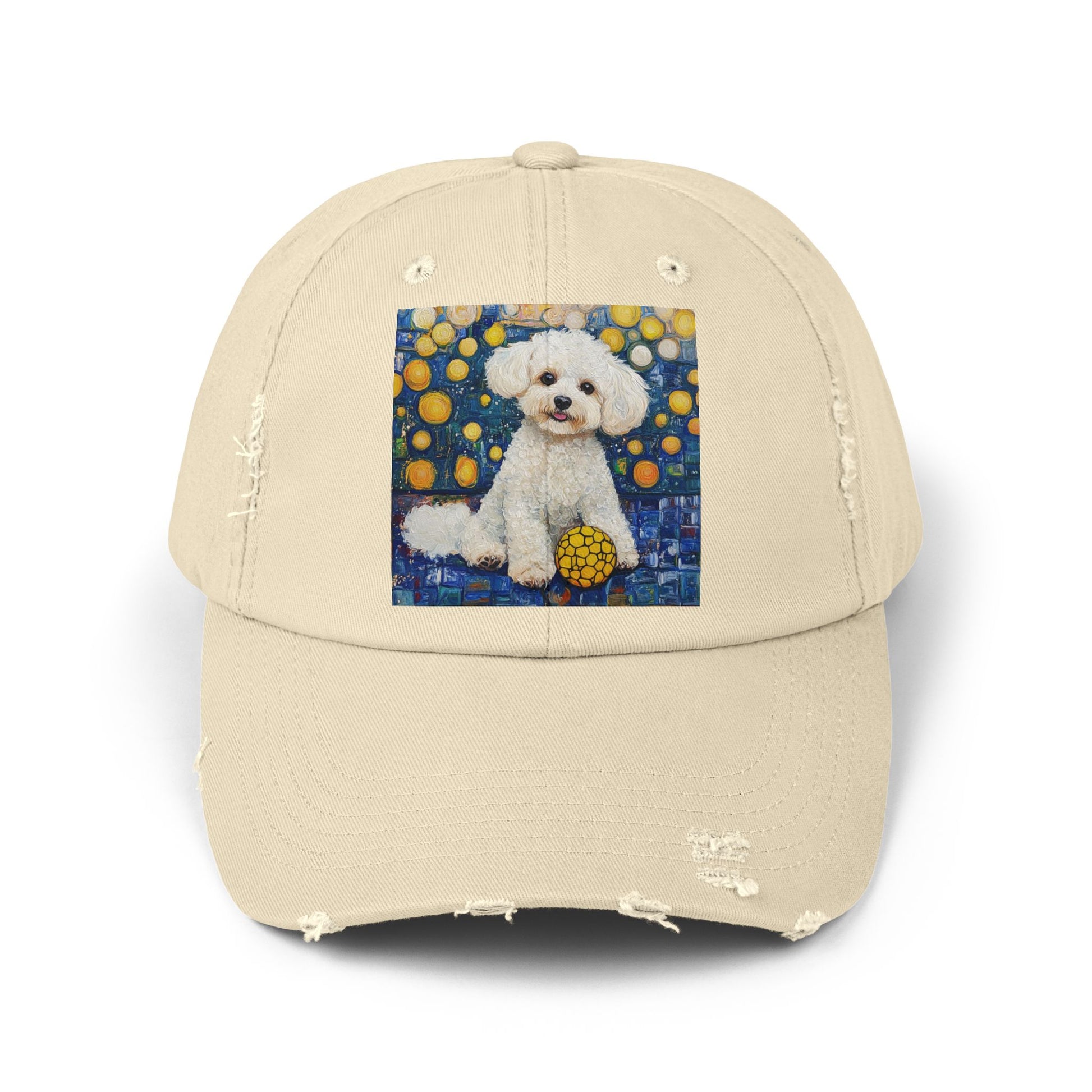 Bichon Frise Pickleball Unisex Distressed Cap with Adorable Dog Art | Pet Lover Gift, Casual Fashion, , Dog Mom Hat, Unique Dog Gift