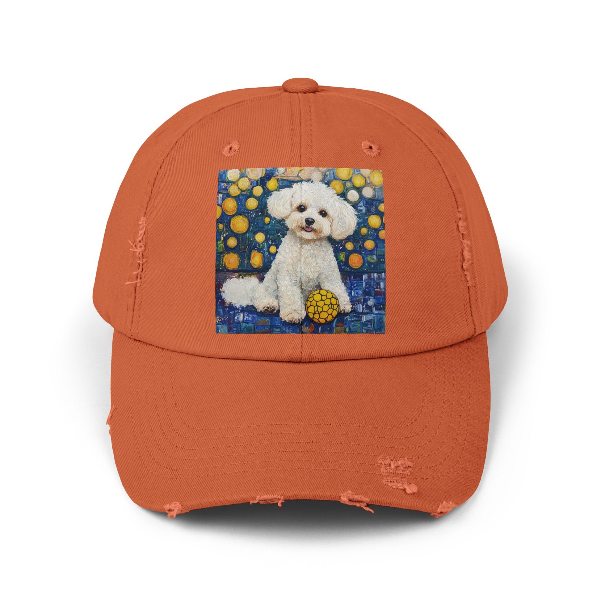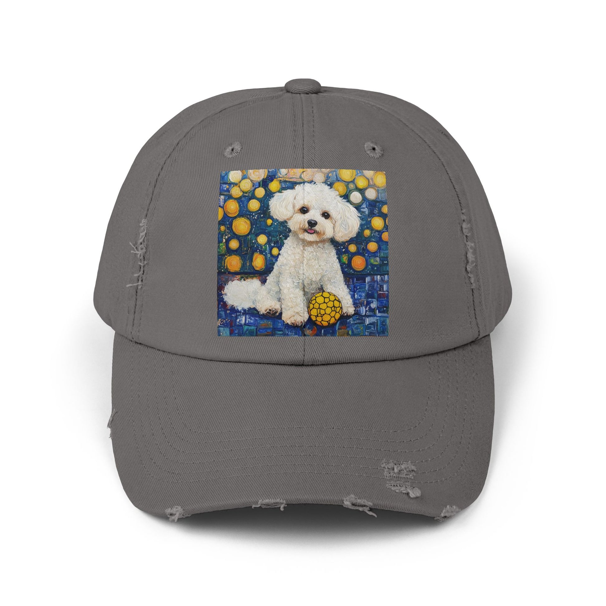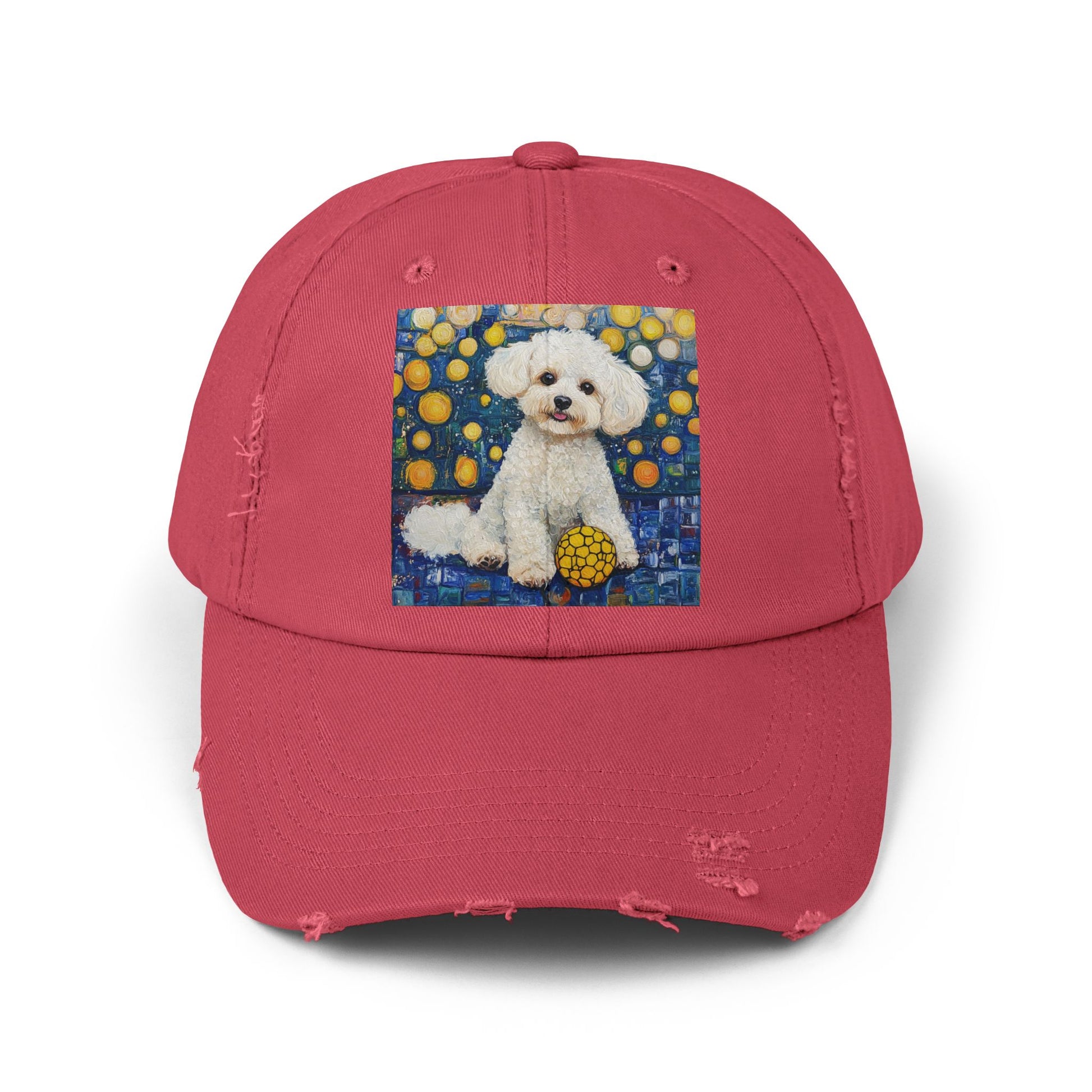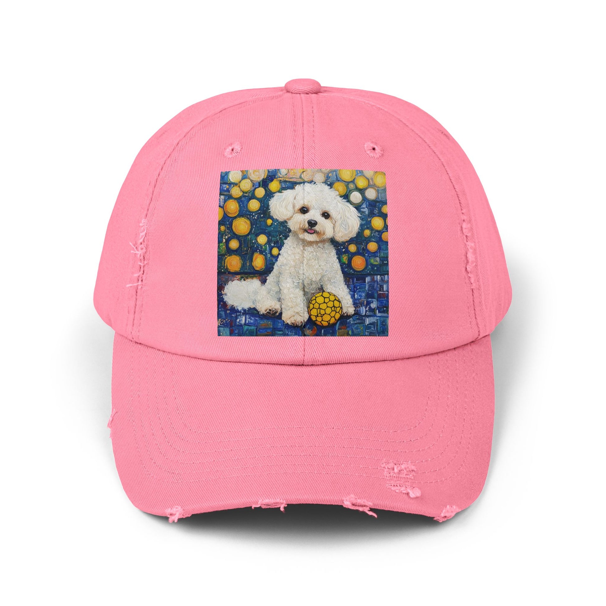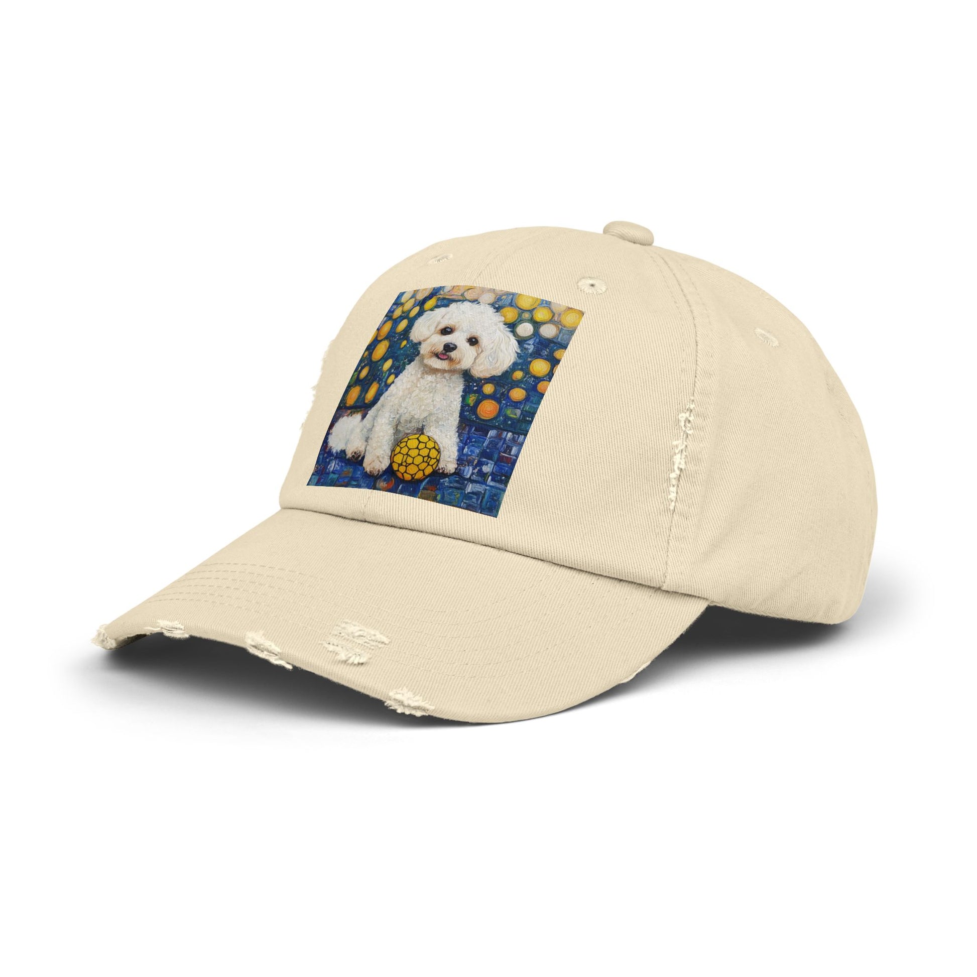 Bichon Frise Pickleball Unisex Distressed Cap with Adorable Dog Art | Pet Lover Gift, Casual Fashion, , Dog Mom Hat, Unique Dog Gift