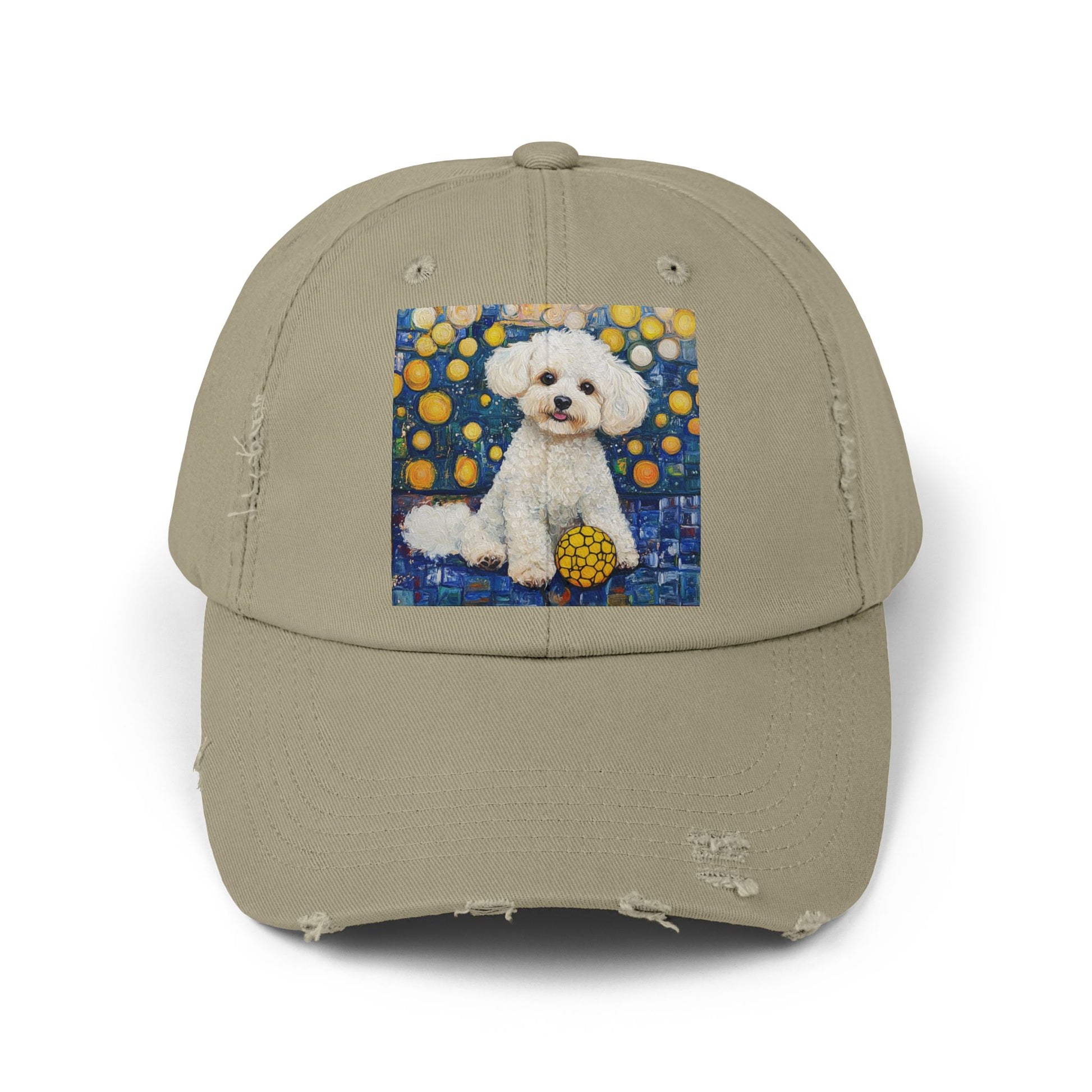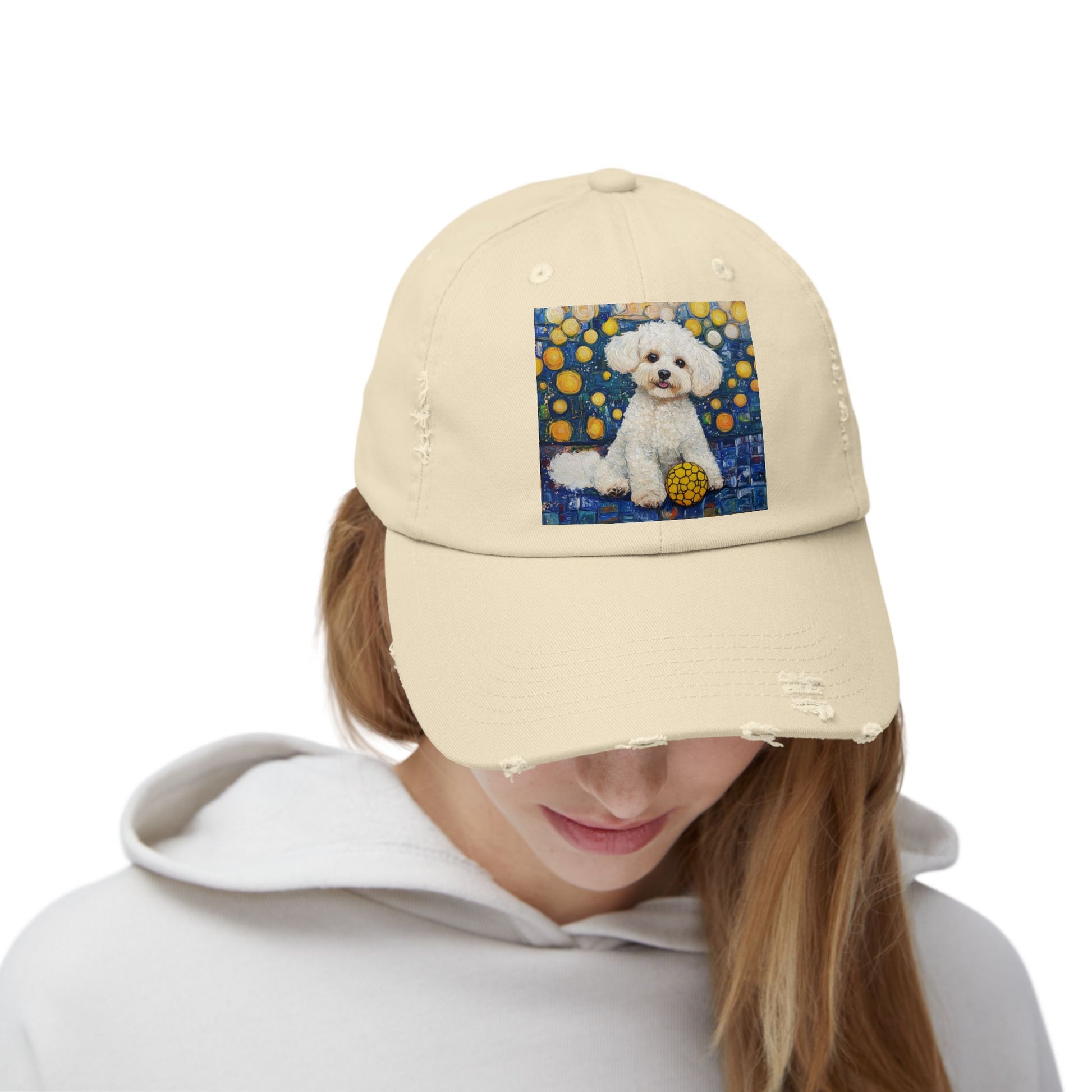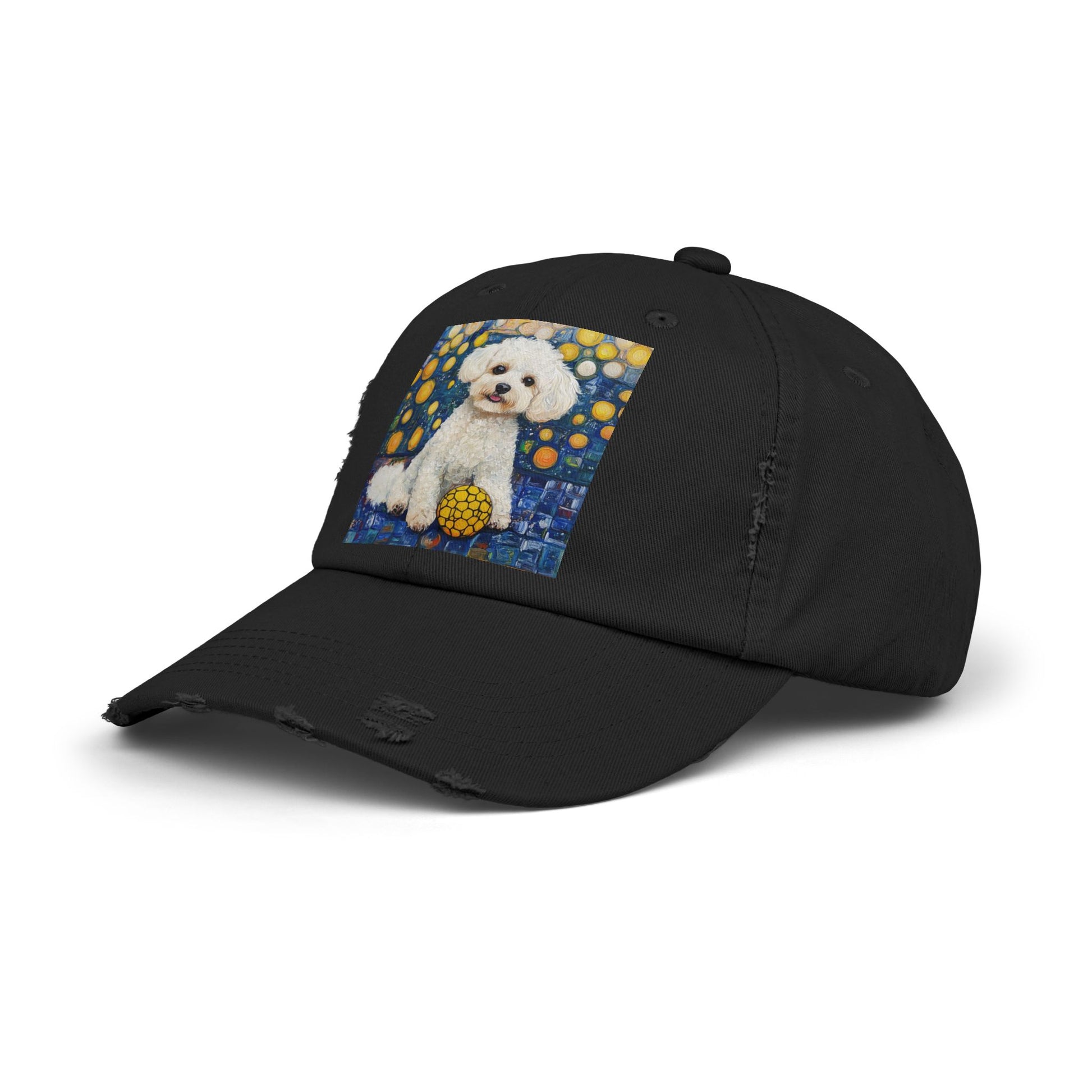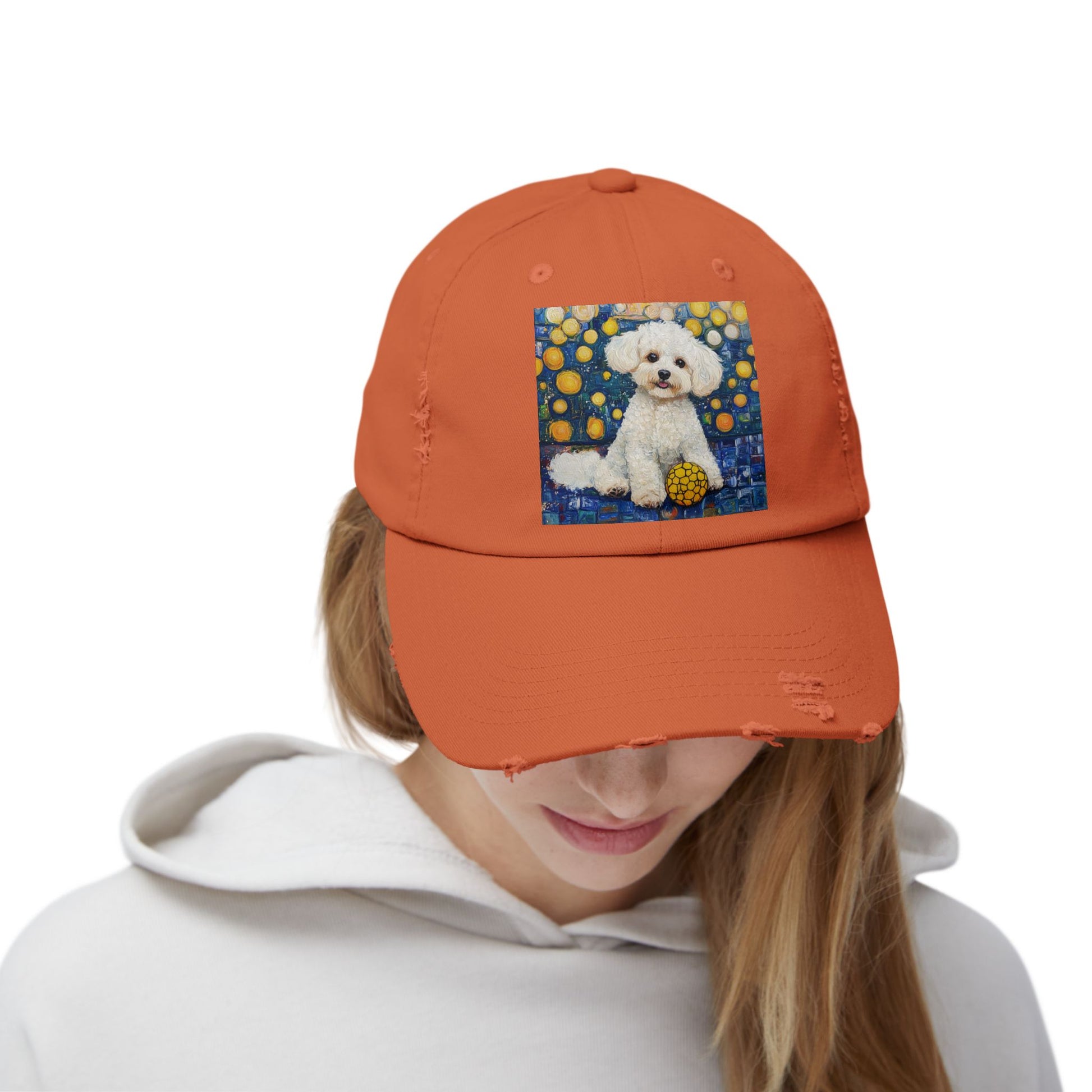 Bichon Frise Pickleball Unisex Distressed Cap with Adorable Dog Art | Pet Lover Gift, Casual Fashion, , Dog Mom Hat, Unique Dog Gift