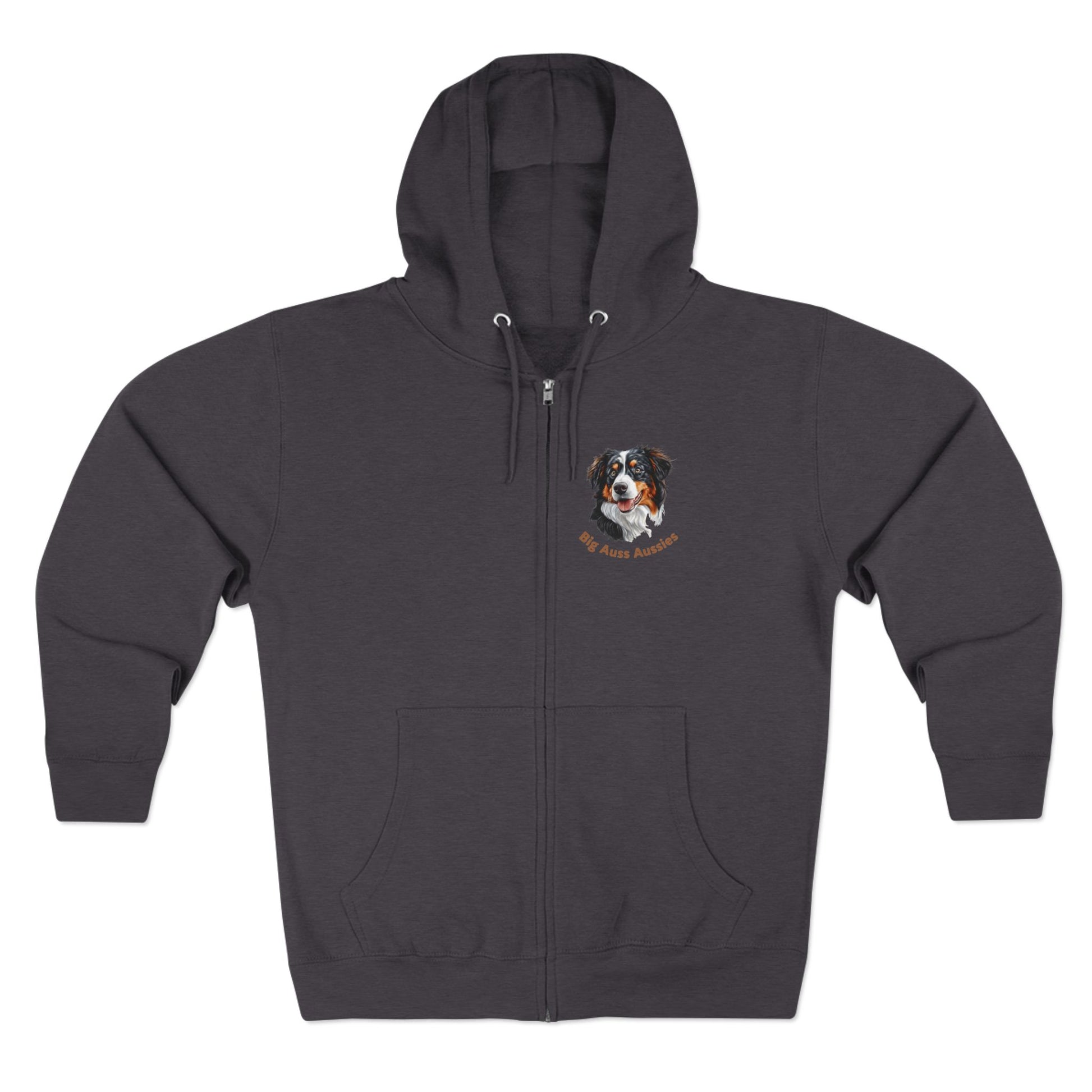 Big Auss Aussies Unisex Zip Hoodie - Cozy Pet Apparel, Australian Shepherd Clothing