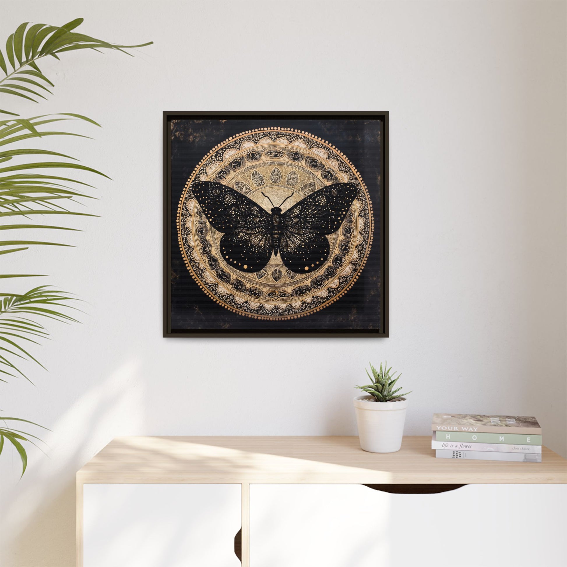 Black Moth Mandala Matte Canvas Framed | Wall Art
