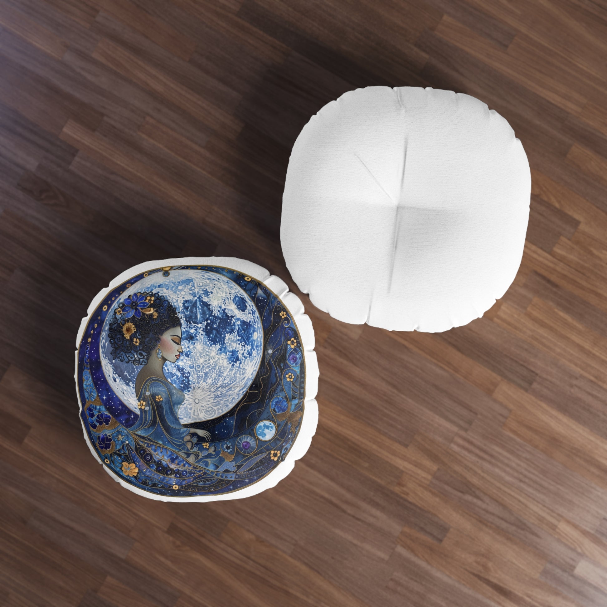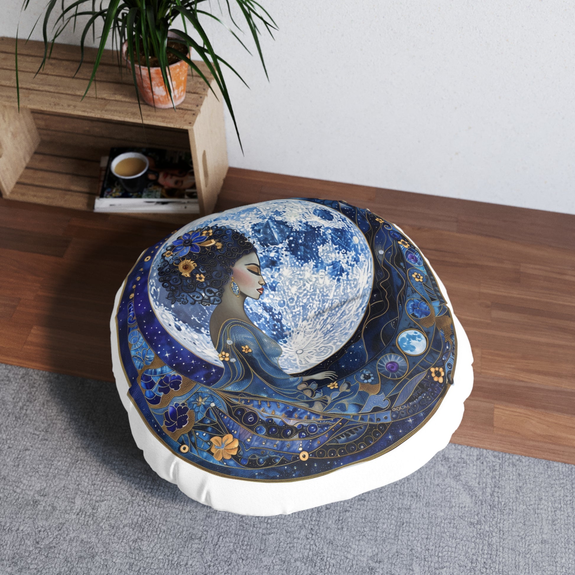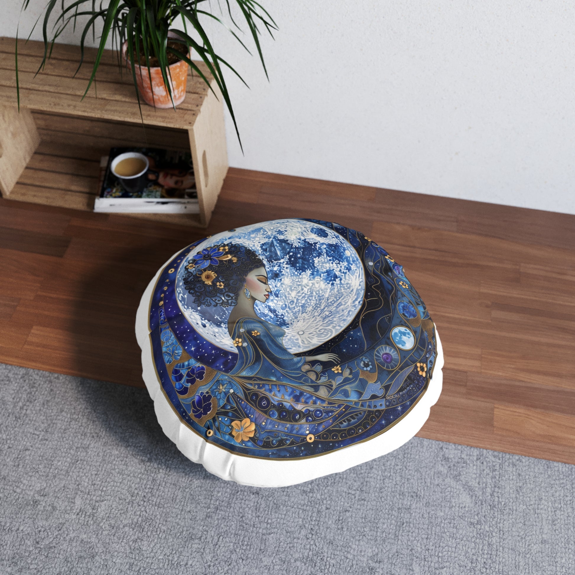 Blue Moon Goddess Tufted Floor Pillow, Round - Moon Goddess Decor, Bohemian Home Accent, Cozy Living Space, Gift for Her