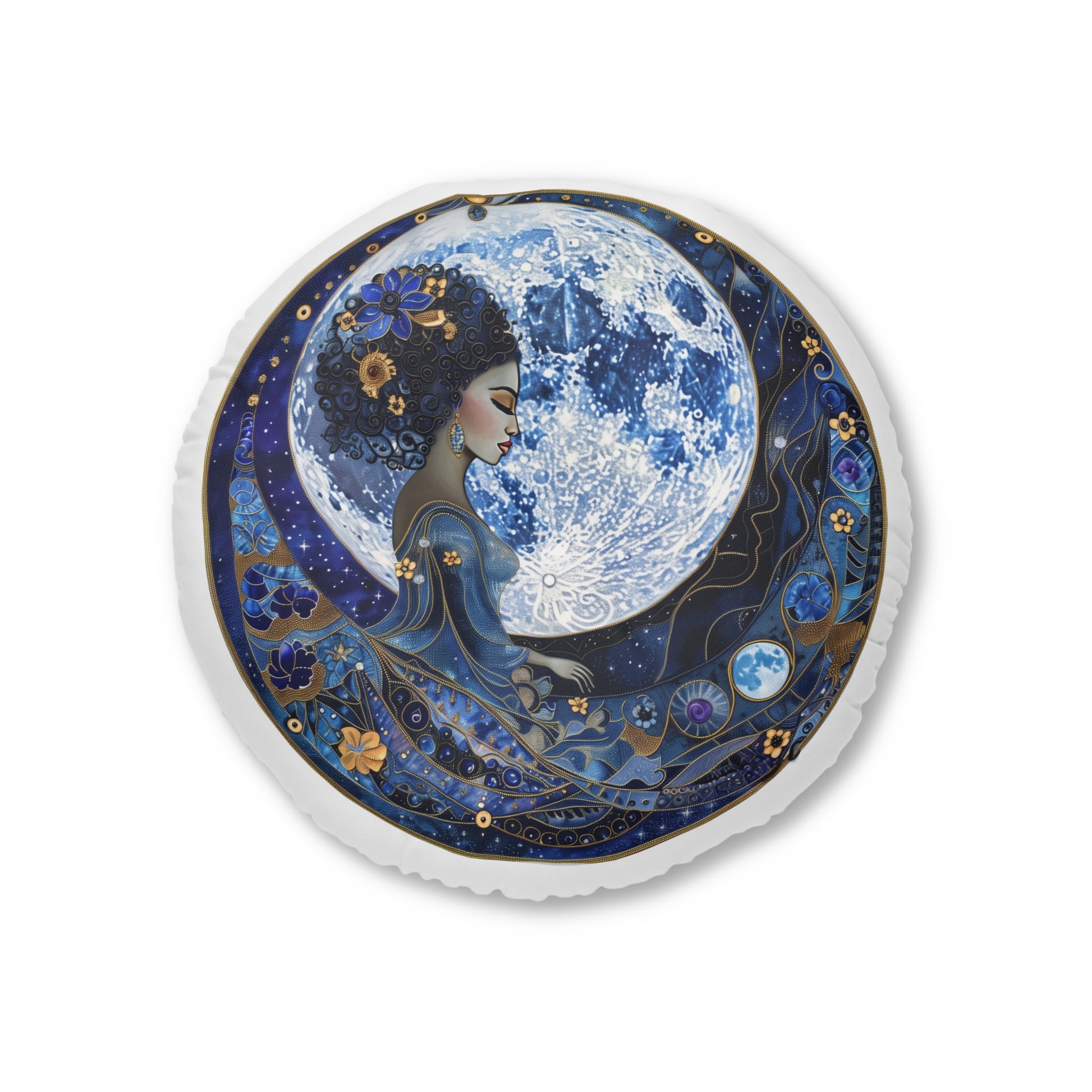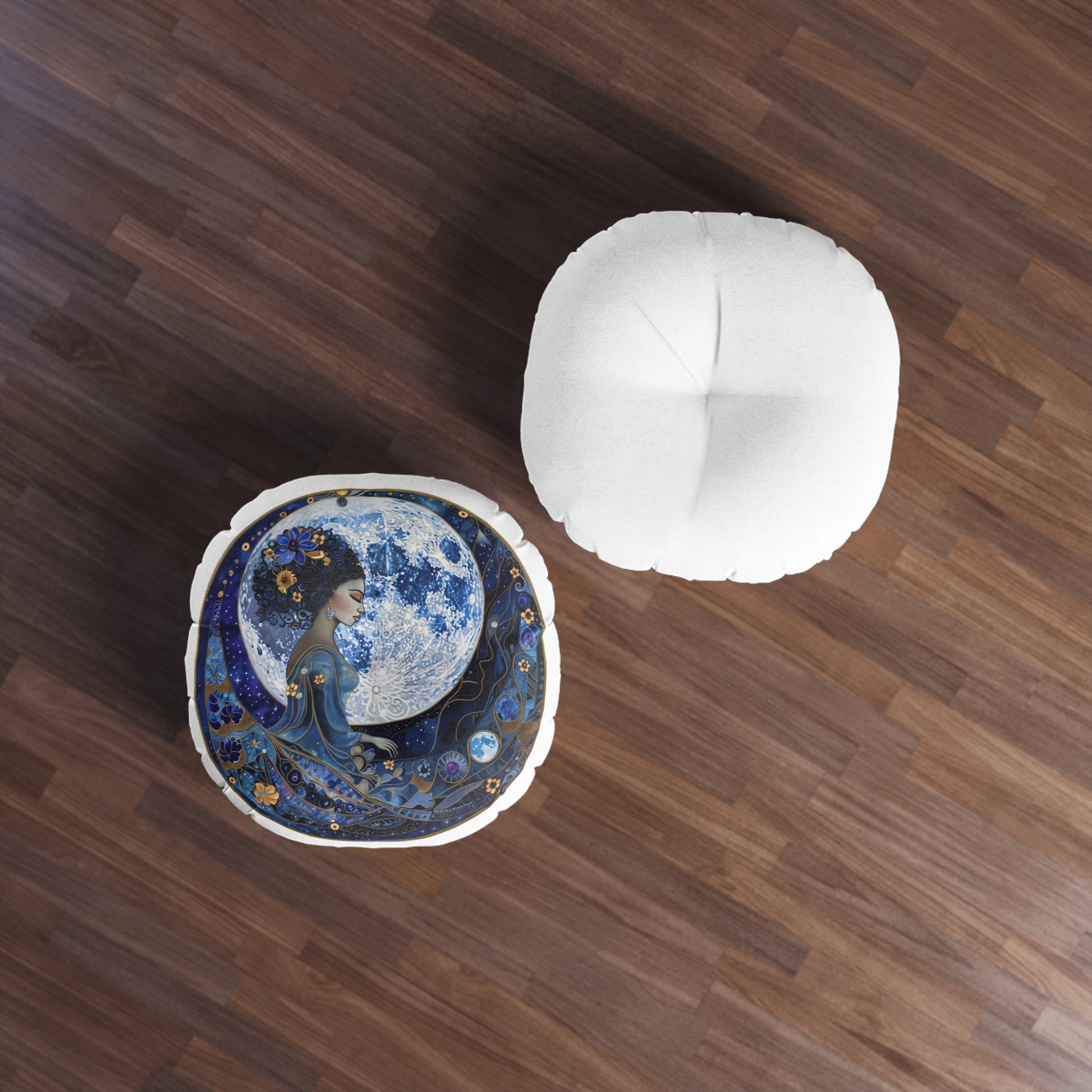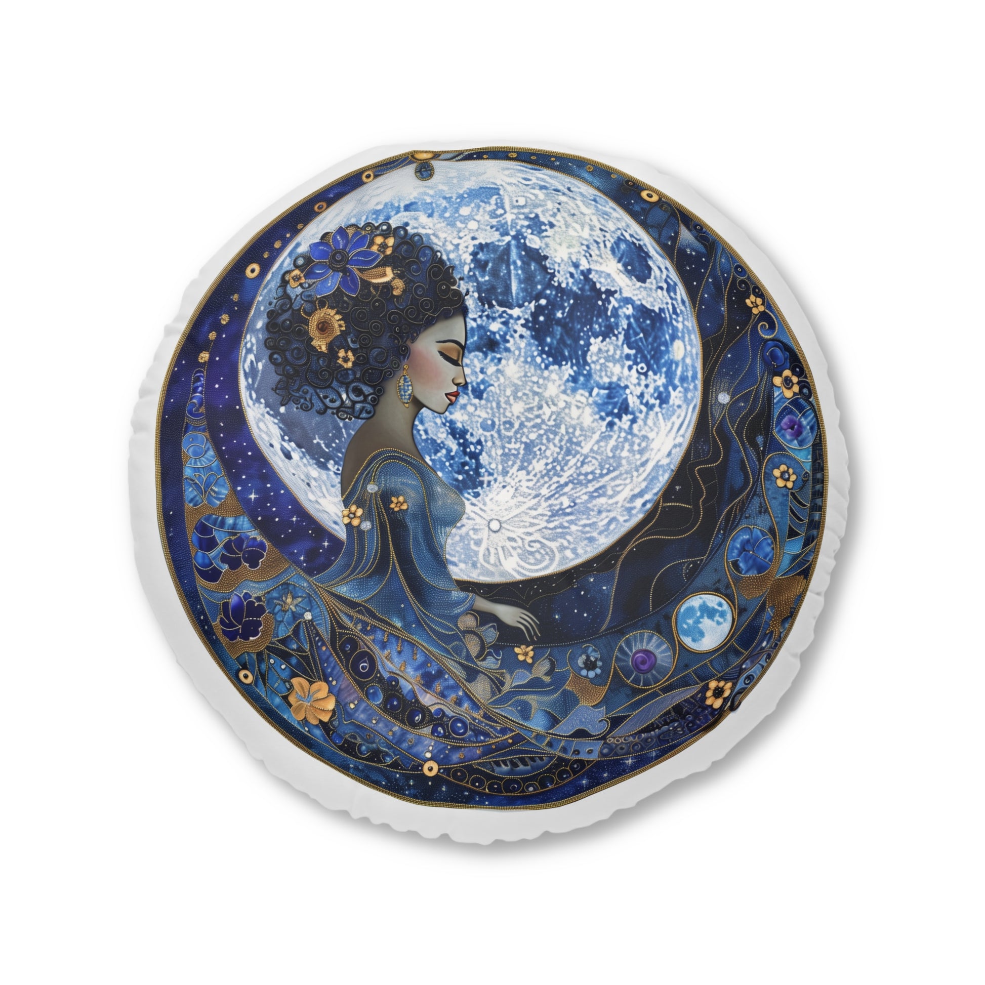 Blue Moon Goddess Tufted Floor Pillow, Round - Moon Goddess Decor, Bohemian Home Accent, Cozy Living Space, Gift for Her