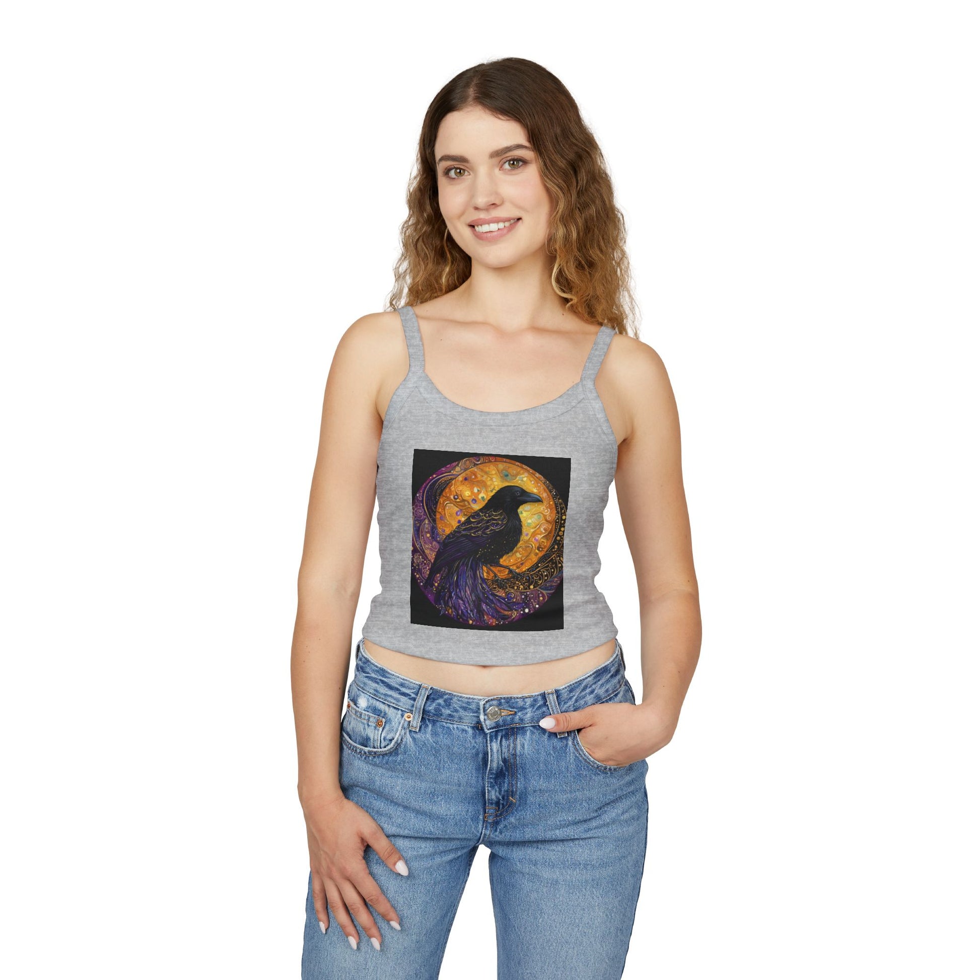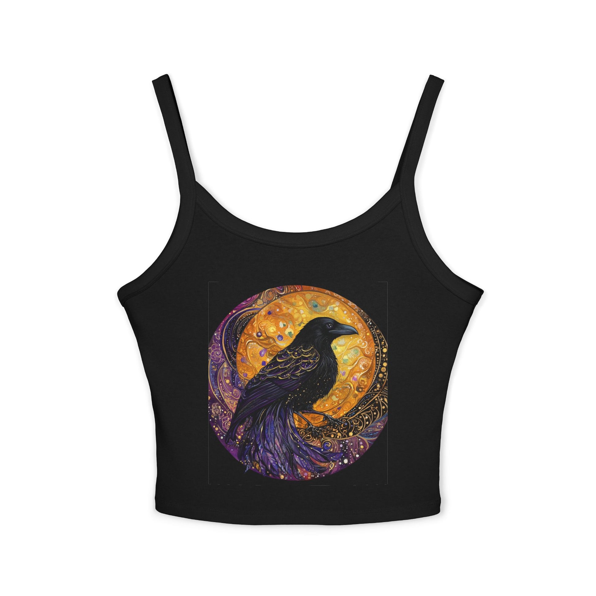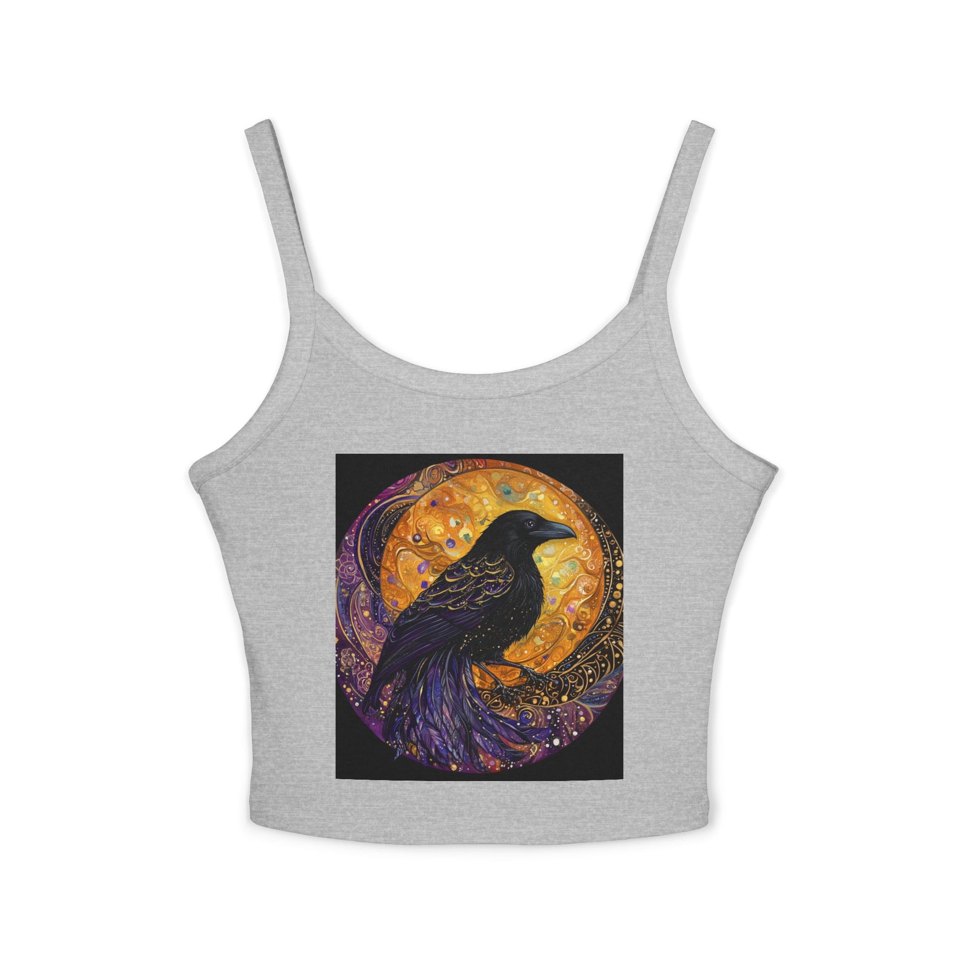 Boho Raven Spaghetti Strap Tank Top, Witchy Apparel, Summer Fashion, Festival Wear, Unique Gift, Cosmic Design