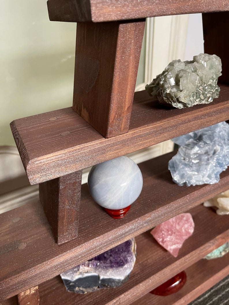 I love clean lines and there is over 84" (7 feet) of shelf space for crystals!!!