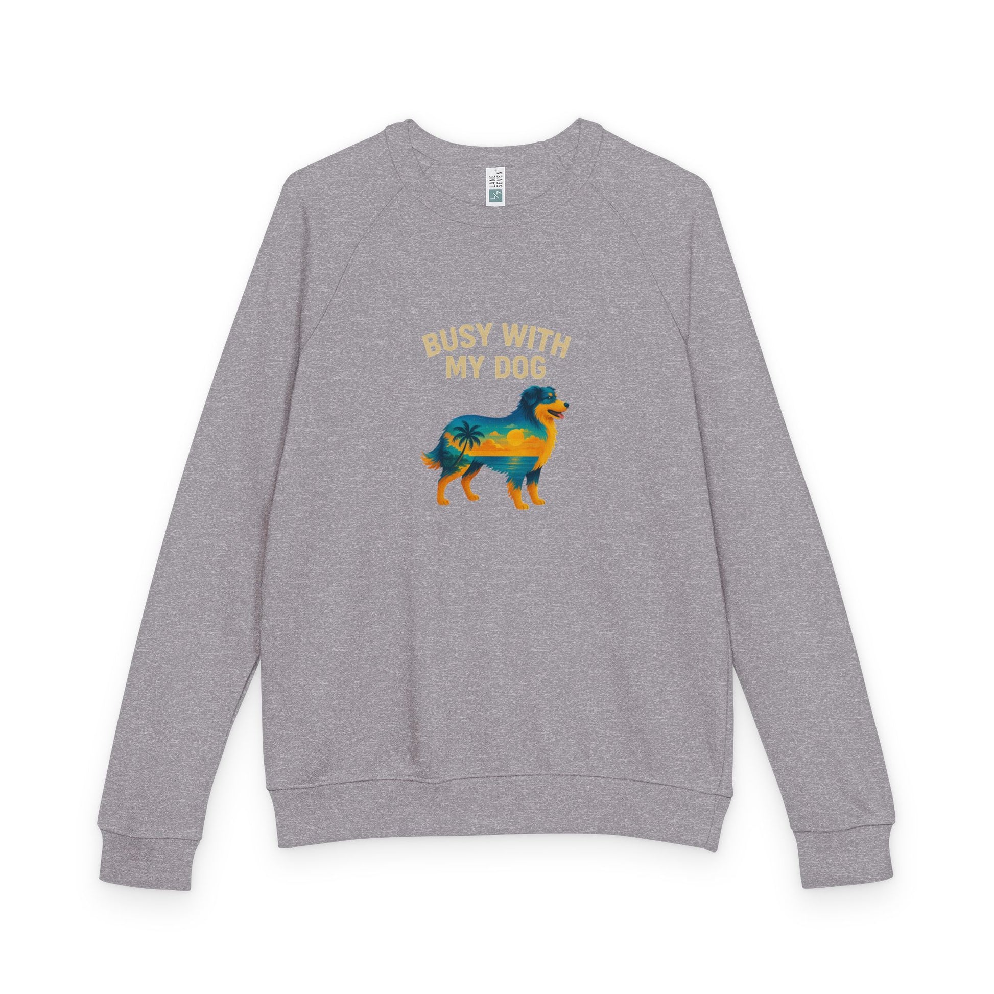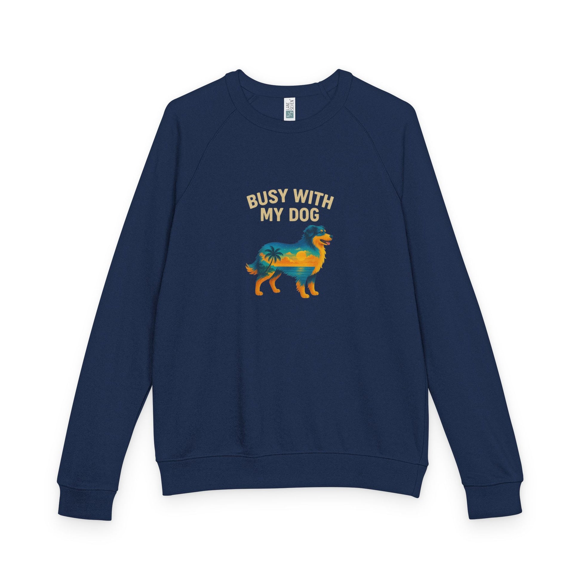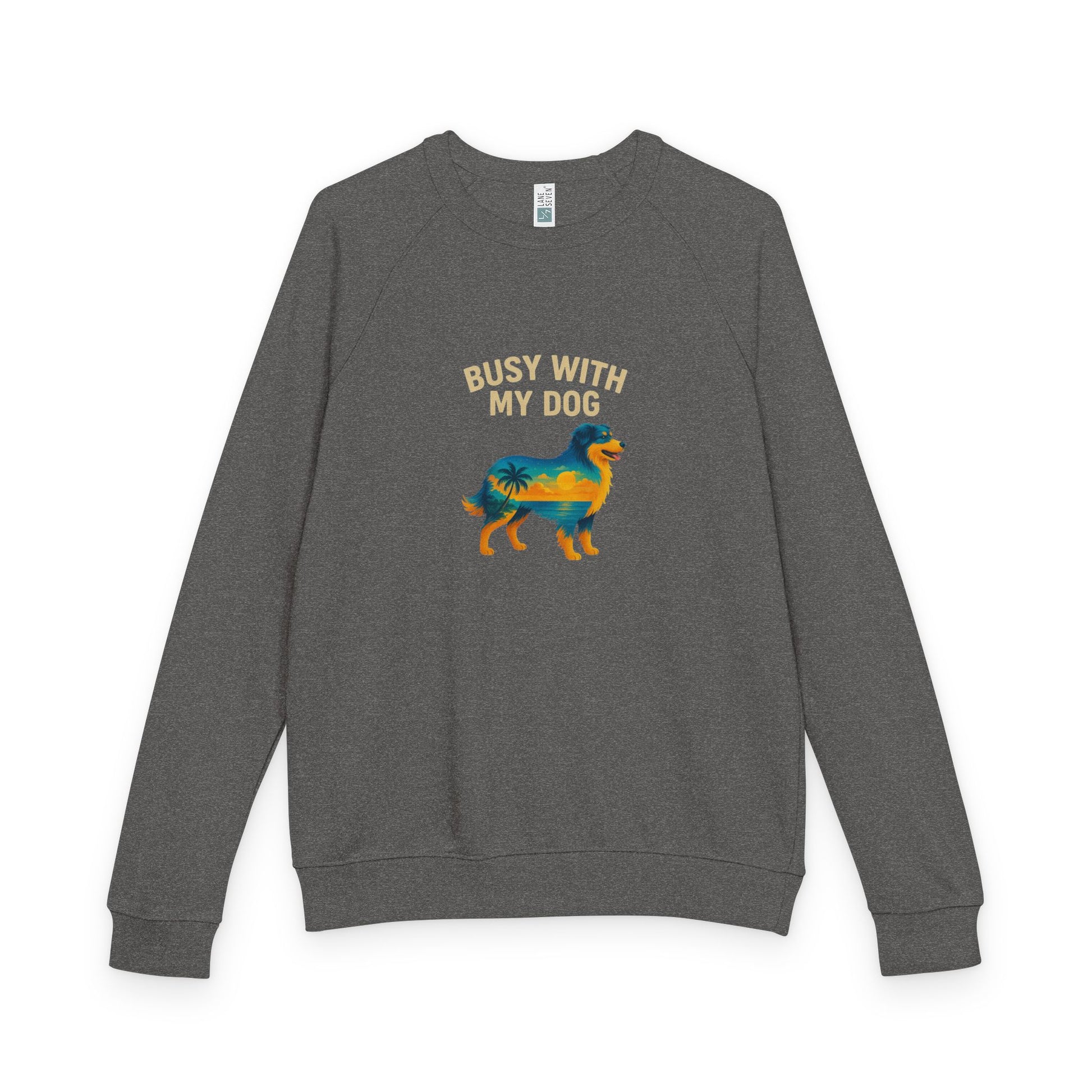 This cozy French terry crewneck feels like a quiet morning stroll with your dog — soft under the hands, relaxed in the shoulders, and carrying a small, bright moment across the chest. The raglan sleeve silhouette lets you move freely on walks, throws, and weekend chores. Inside, thoughtful details (twill neck tape, tear-away tag, half-moon back patch) keep it comfortable and built to last. The playful “Busy With My Dog” artwork adds a warm, slightly vintage vibe that slips easily into everyday wear for dog lovers who favor comfort with a touch of personality.