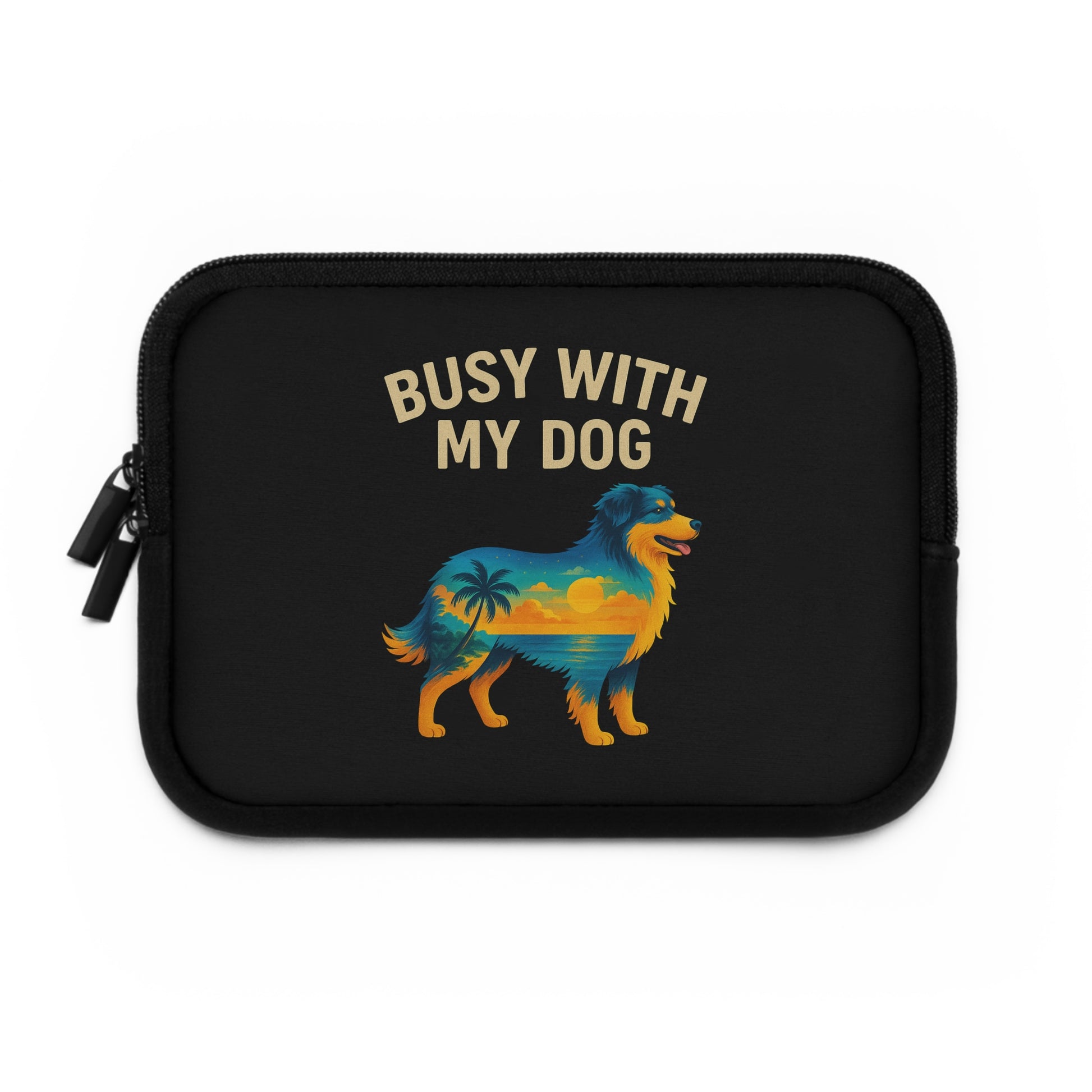 Carry your laptop with a relaxed, sunny energy. This neoprene laptop sleeve wraps your device in cushioned foam, keeping dust and light bumps at bay while the dual zippers make access smooth and secure. The front shows a warm, beachy dog silhouette with the playful line “Busy With My Dog,” evoking evenings on the sand and slow, dog-centered weekends. Lightweight and water-resistant, the sleeve slides easily into a bag or sits solo on a desk — a small statement for anyone who schedules life around walks, sunset runs, and canine companionship.