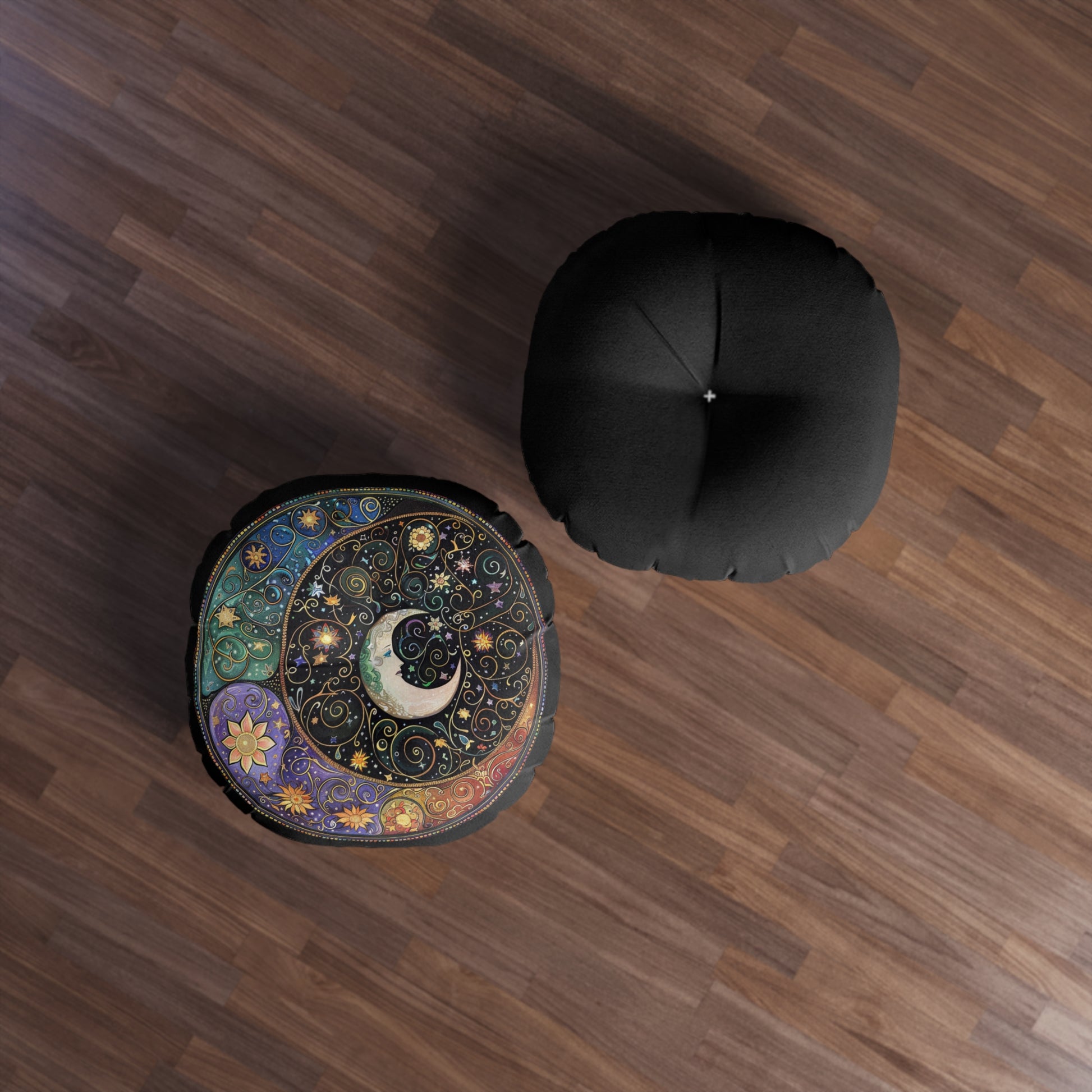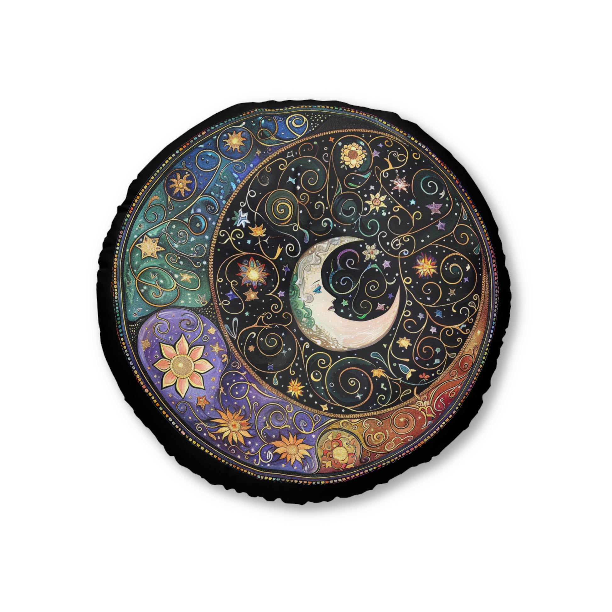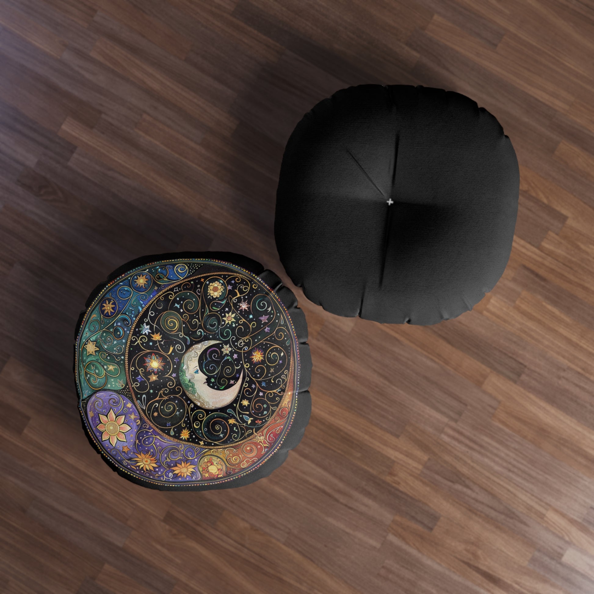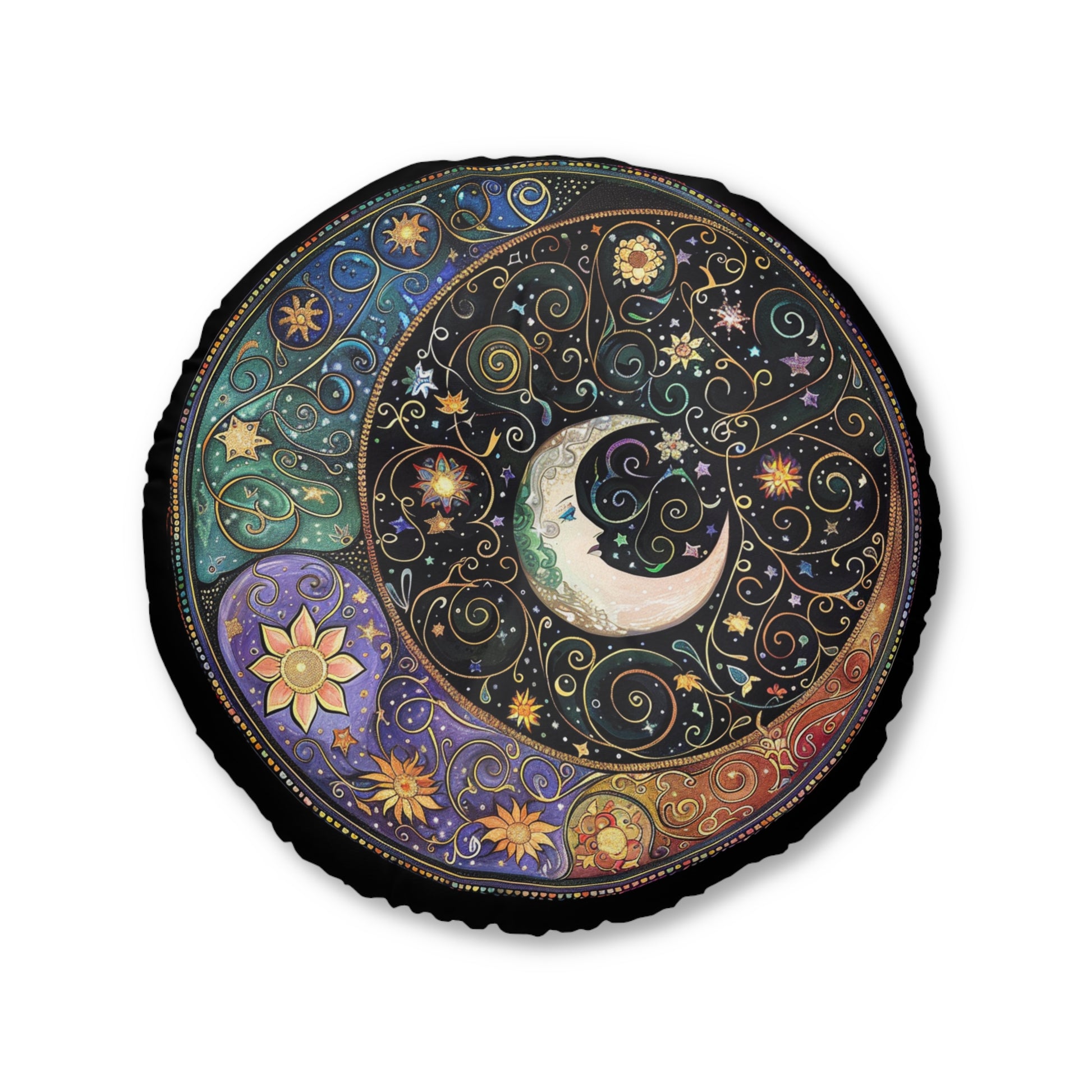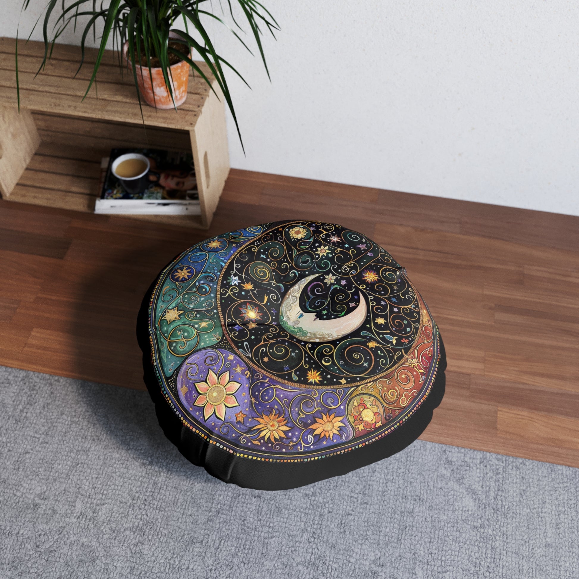 Celestial Tufted Floor Pillow, Round - Boho Home Décor, Meditation Cushion, Cosmic Decor, Astrology, Gift for Star Lovers
