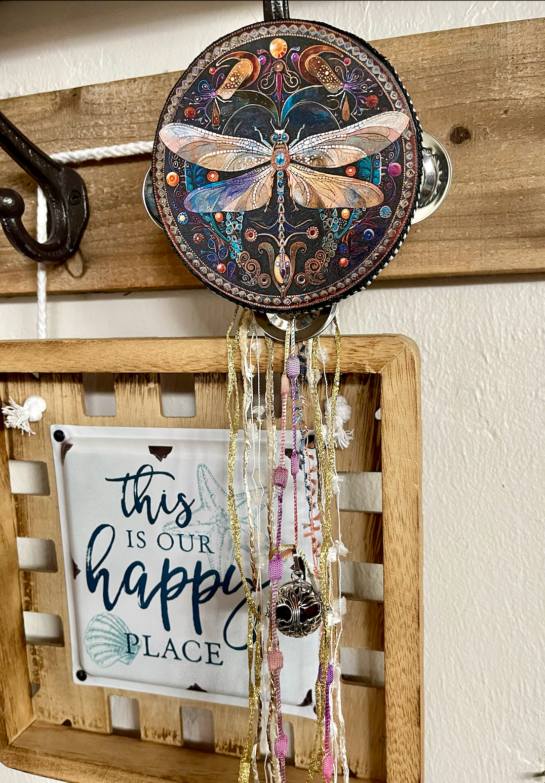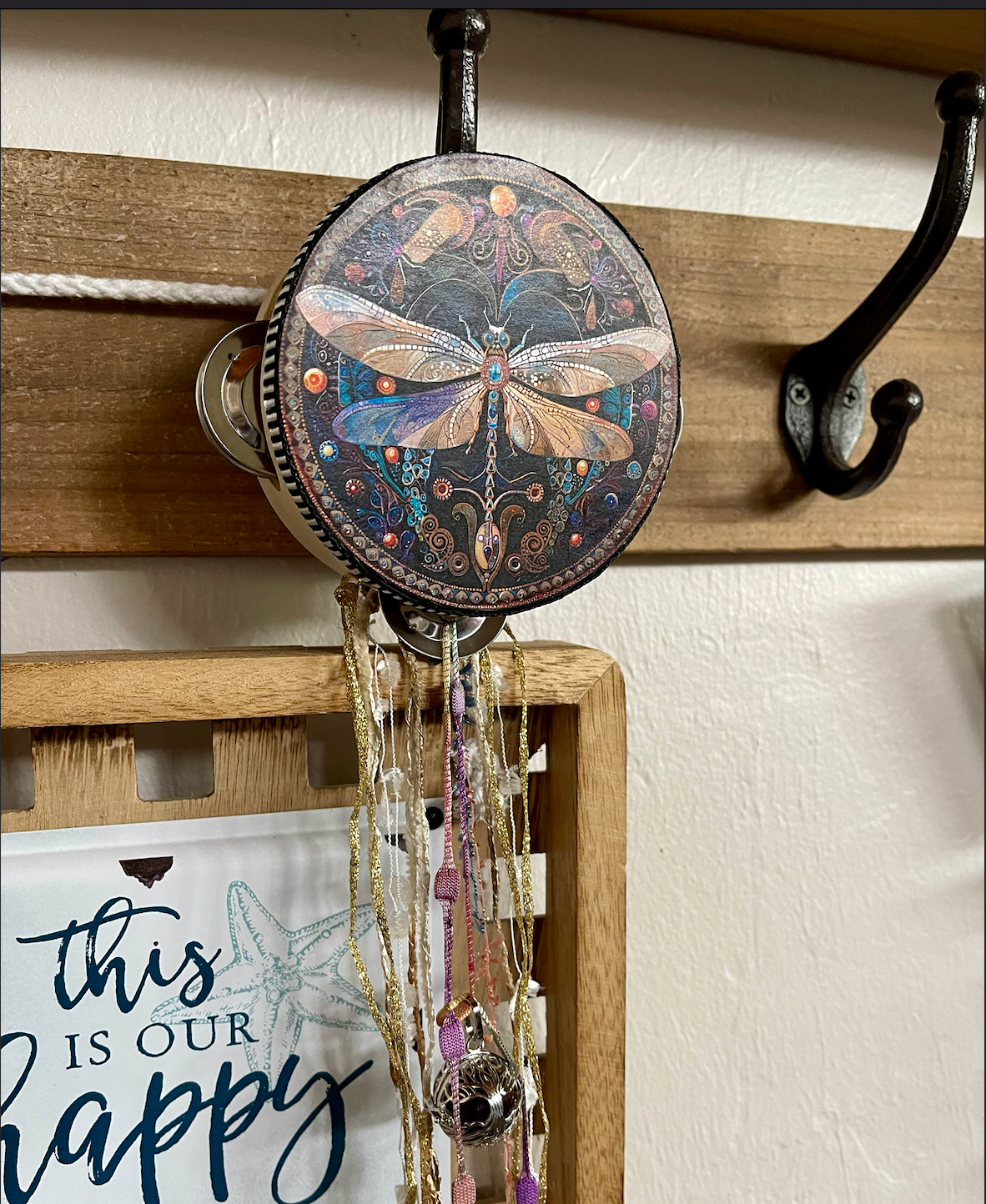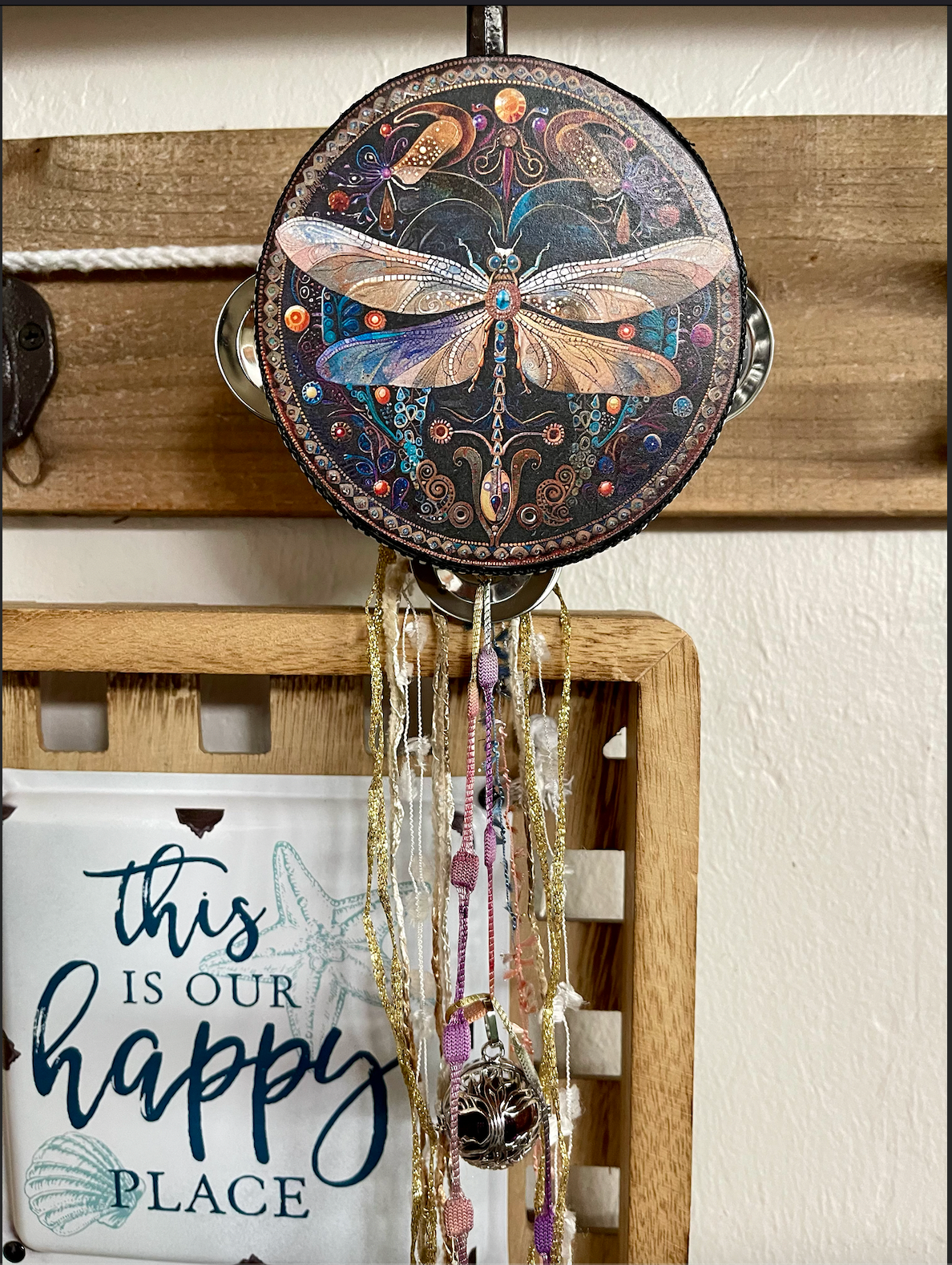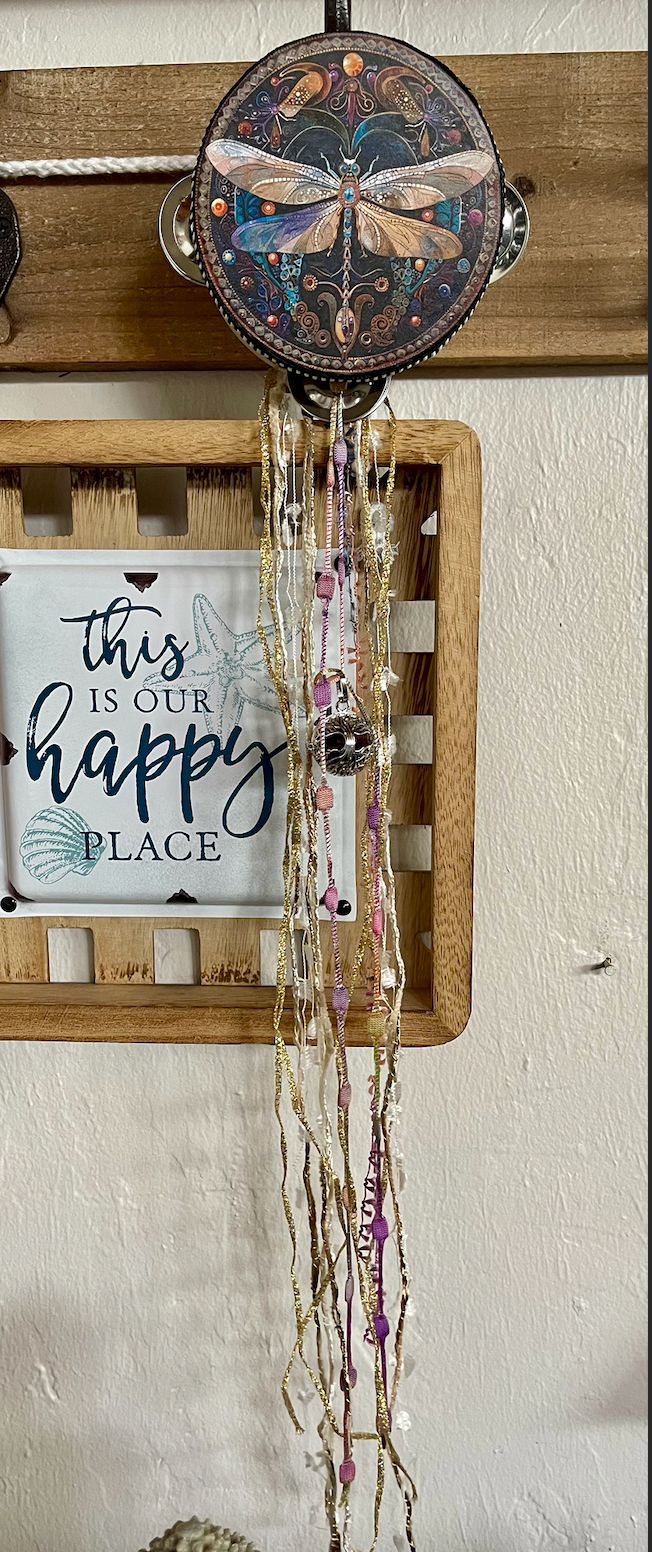 This beautiful tambourine is a fun accent to any space.