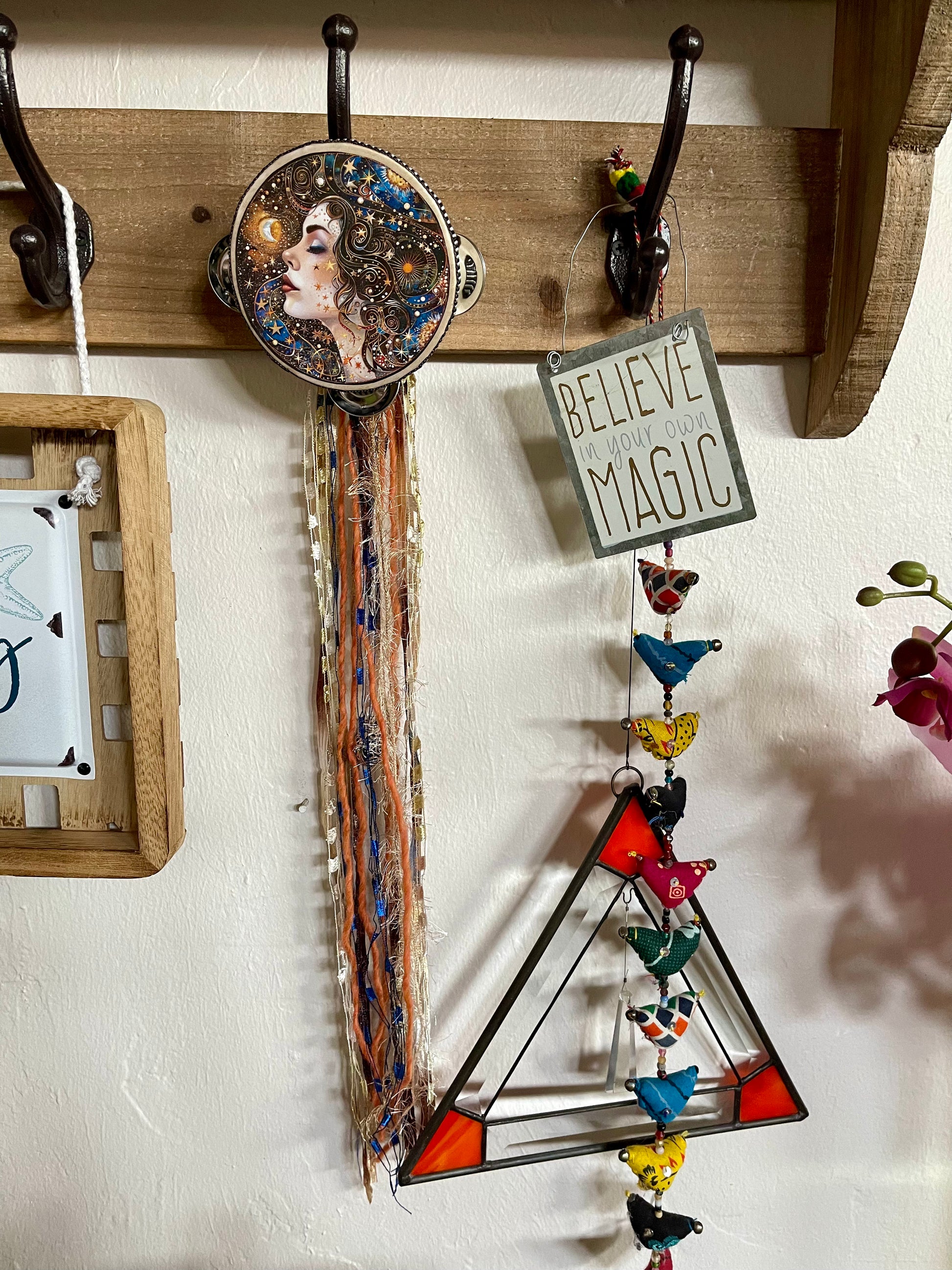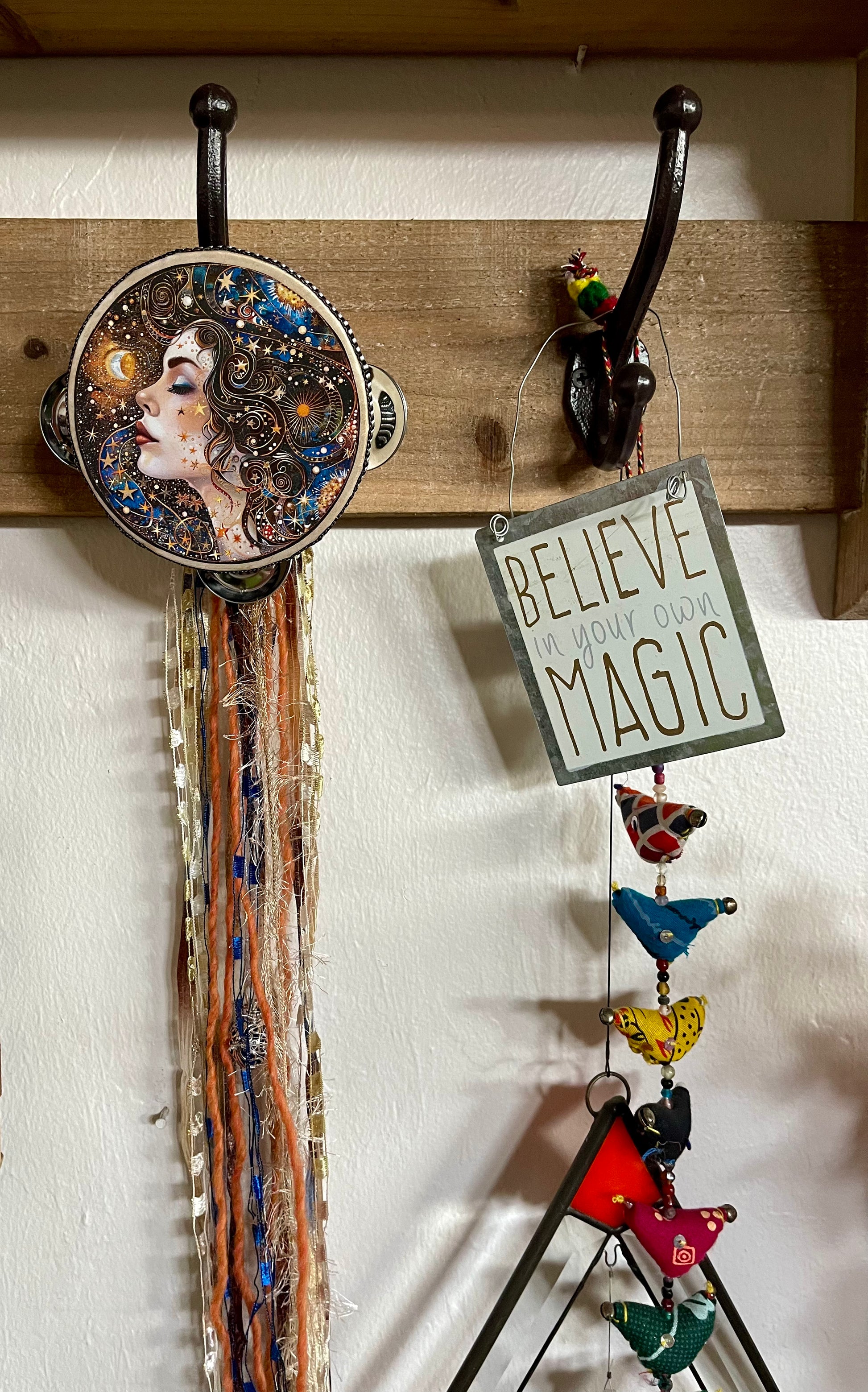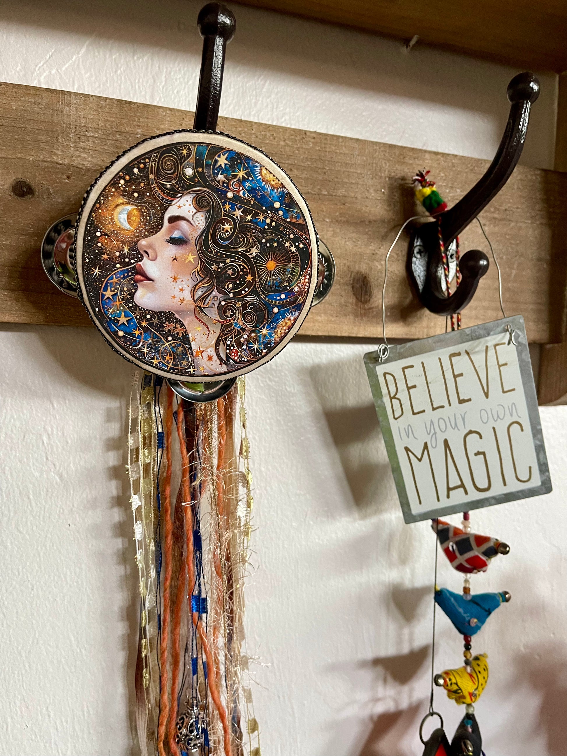 Charmed Celestial Goddess Tambourine and Ribbon Wall Accent, Bodhi Home Decor