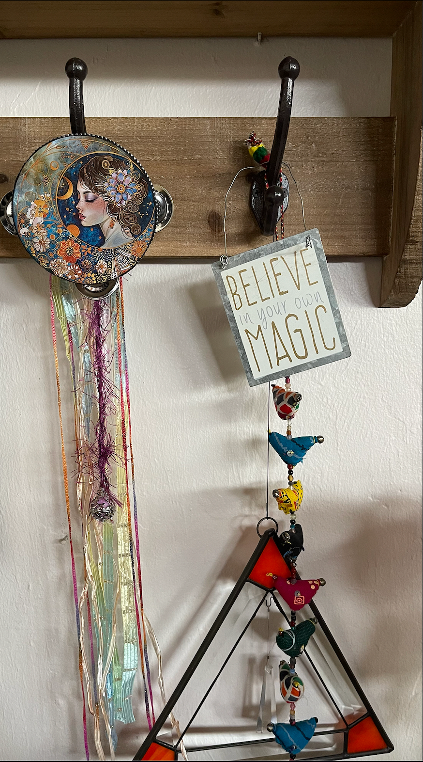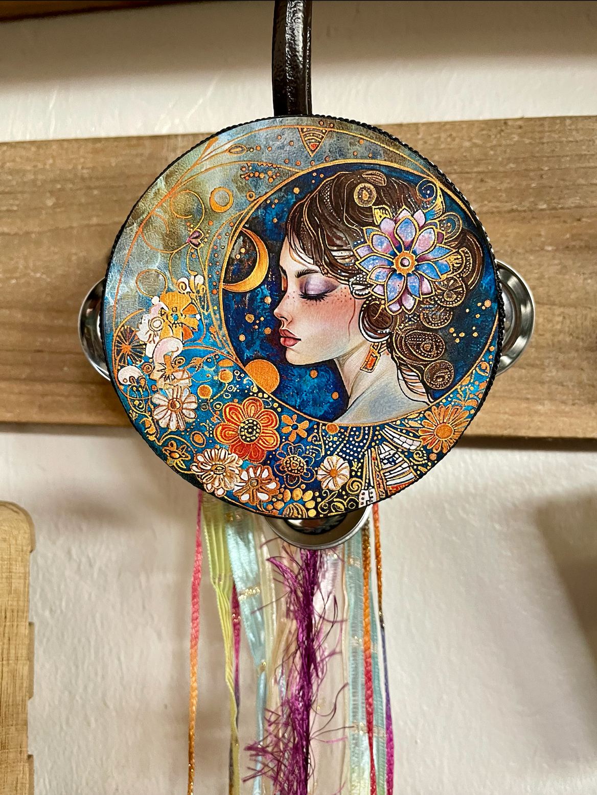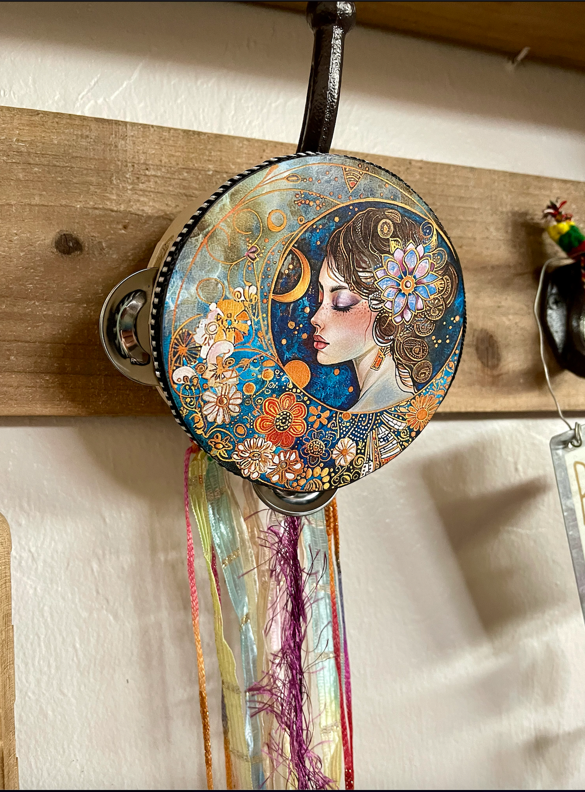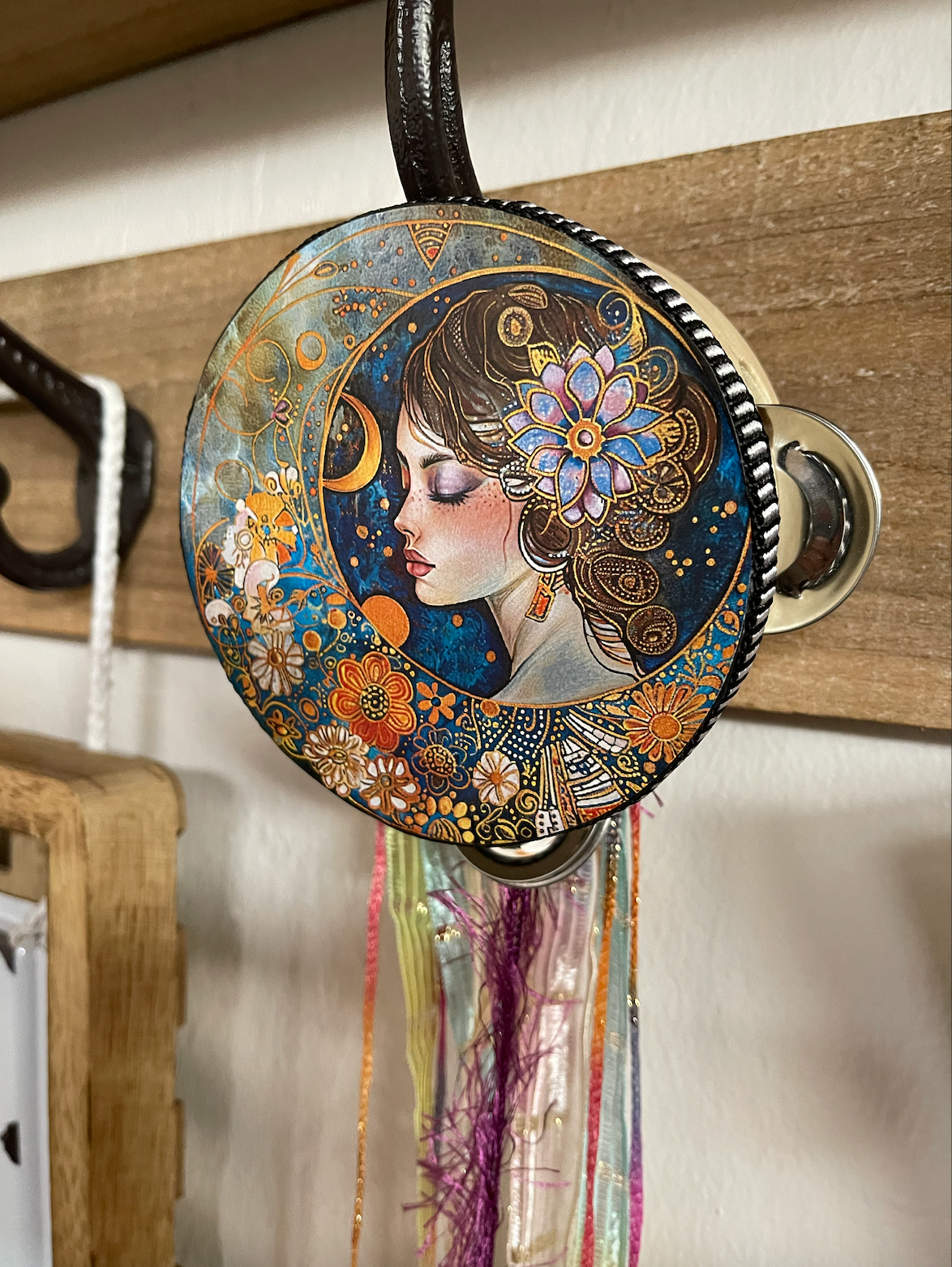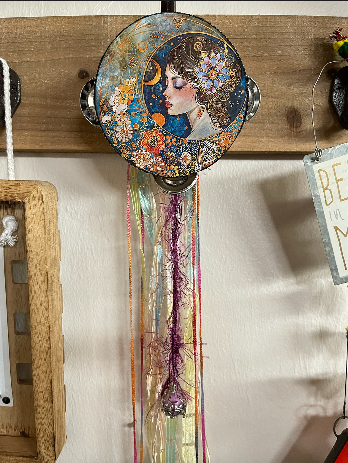 This beautiful tambourine is a fun accent to any space.