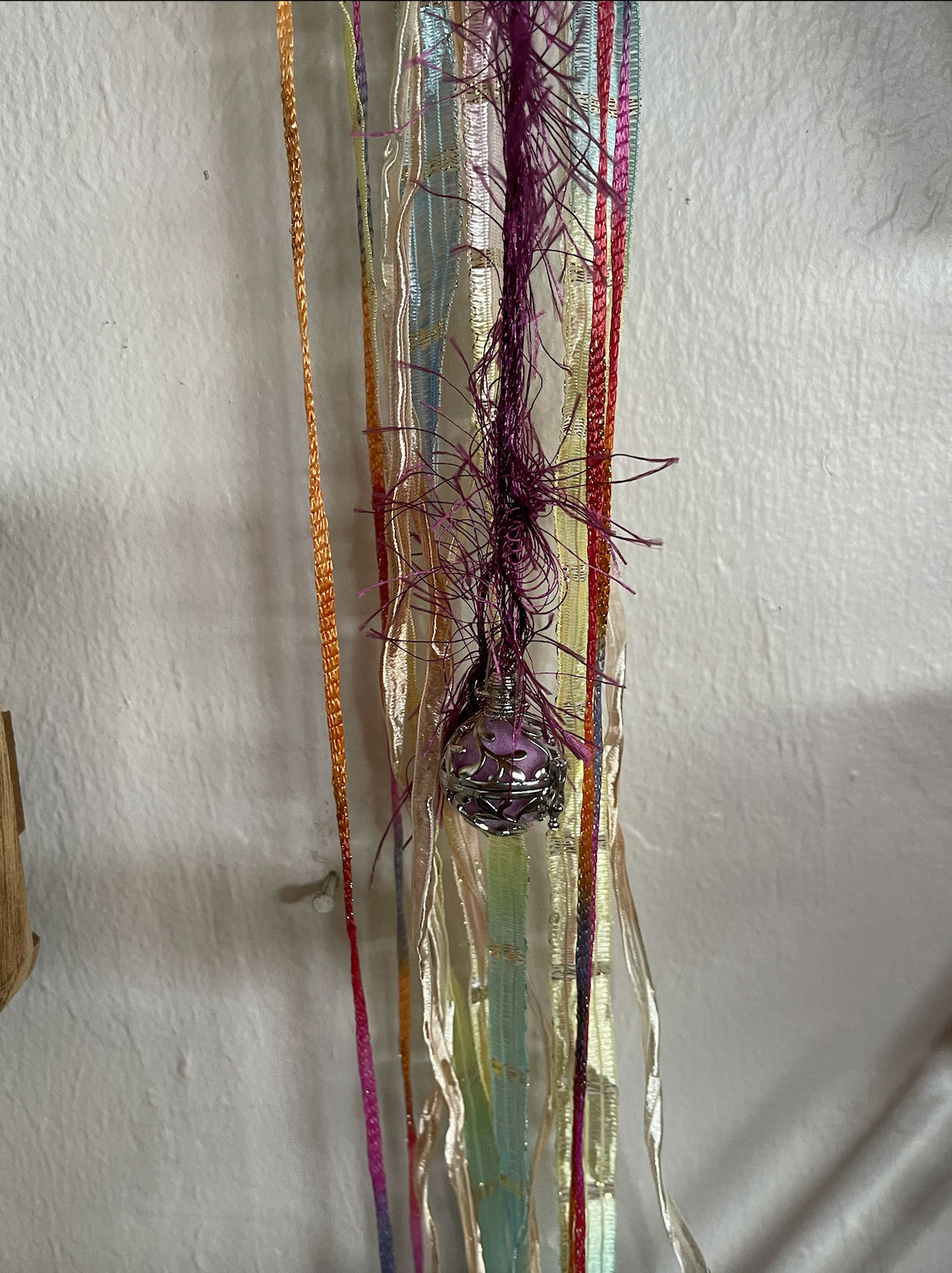 Quality ribbon and ball diffuser charm complete this 4" diameter tambourine.