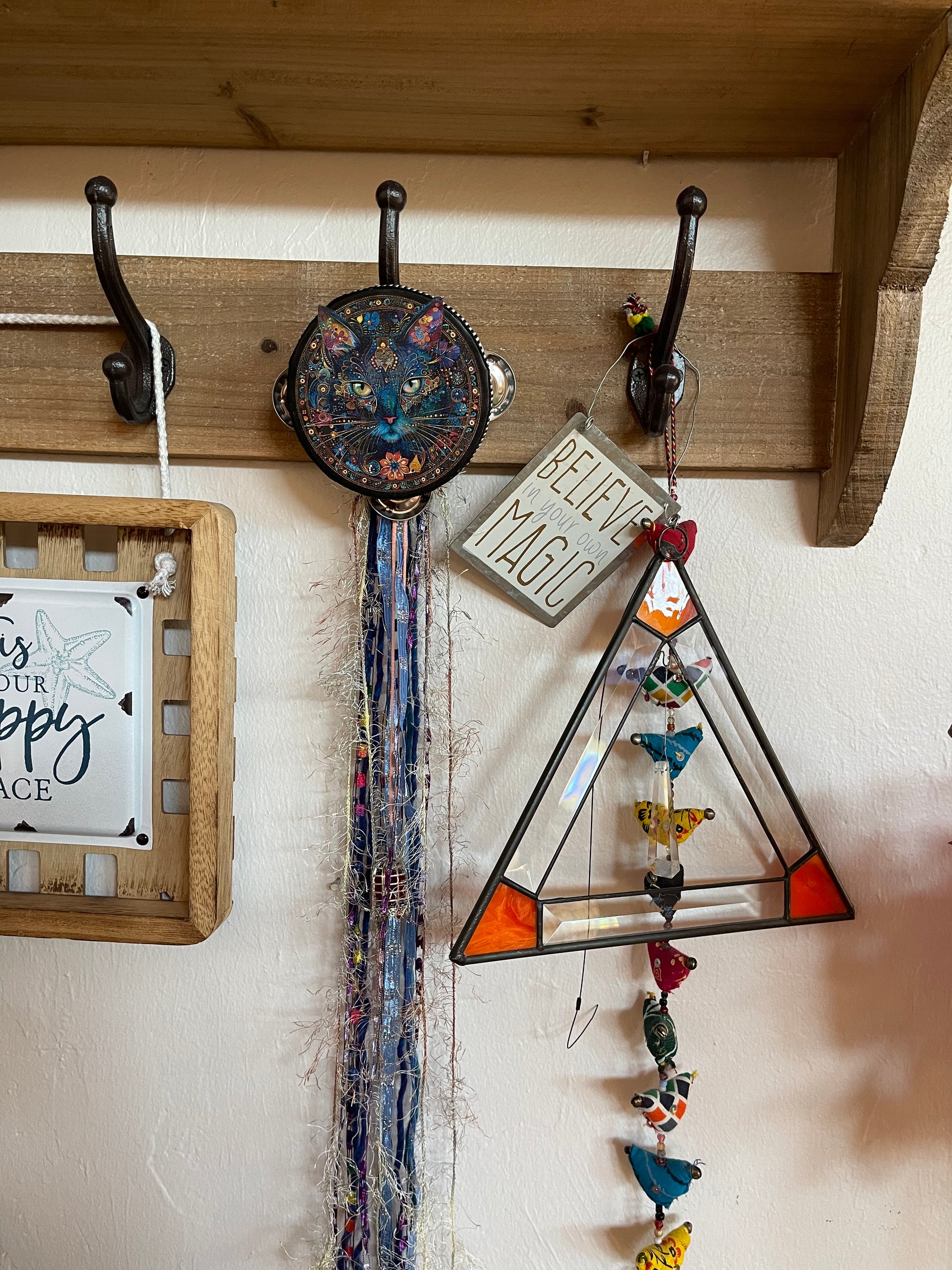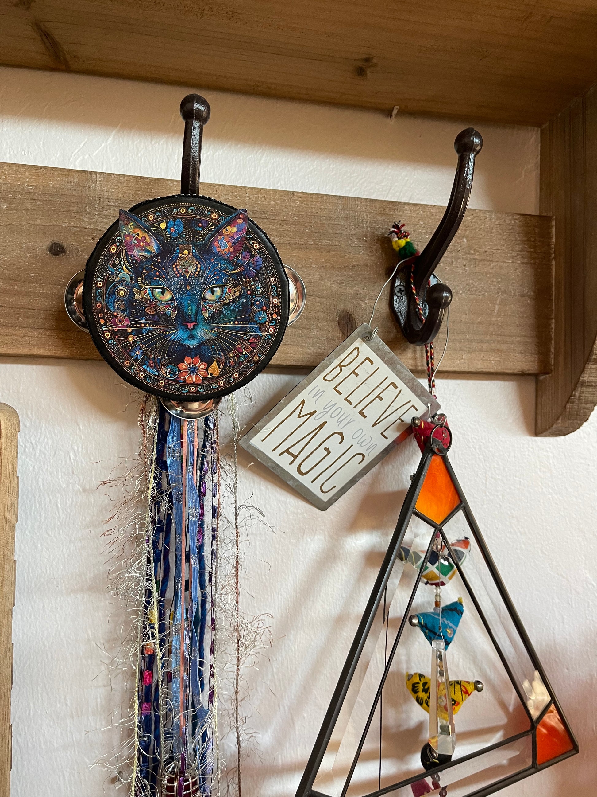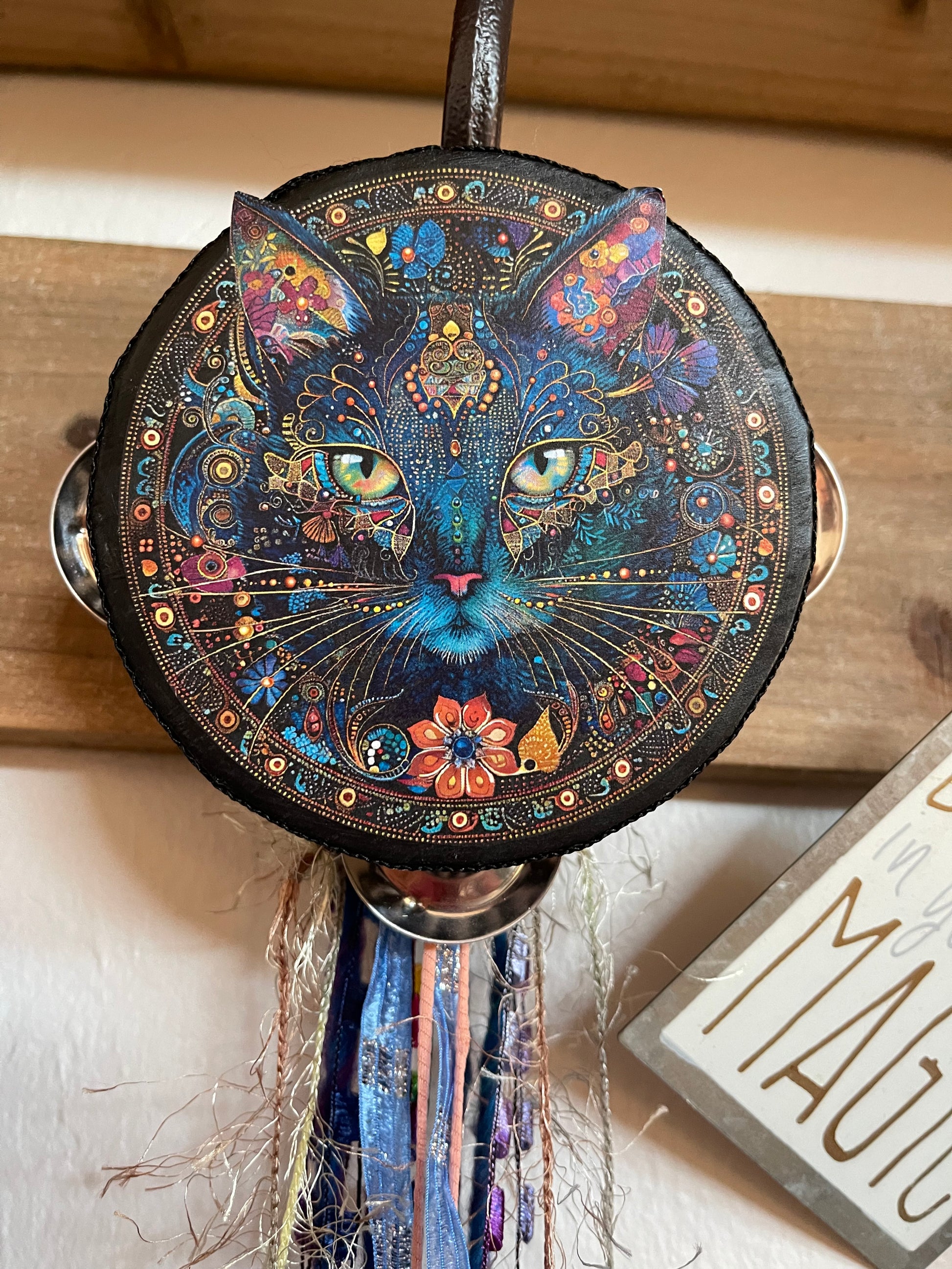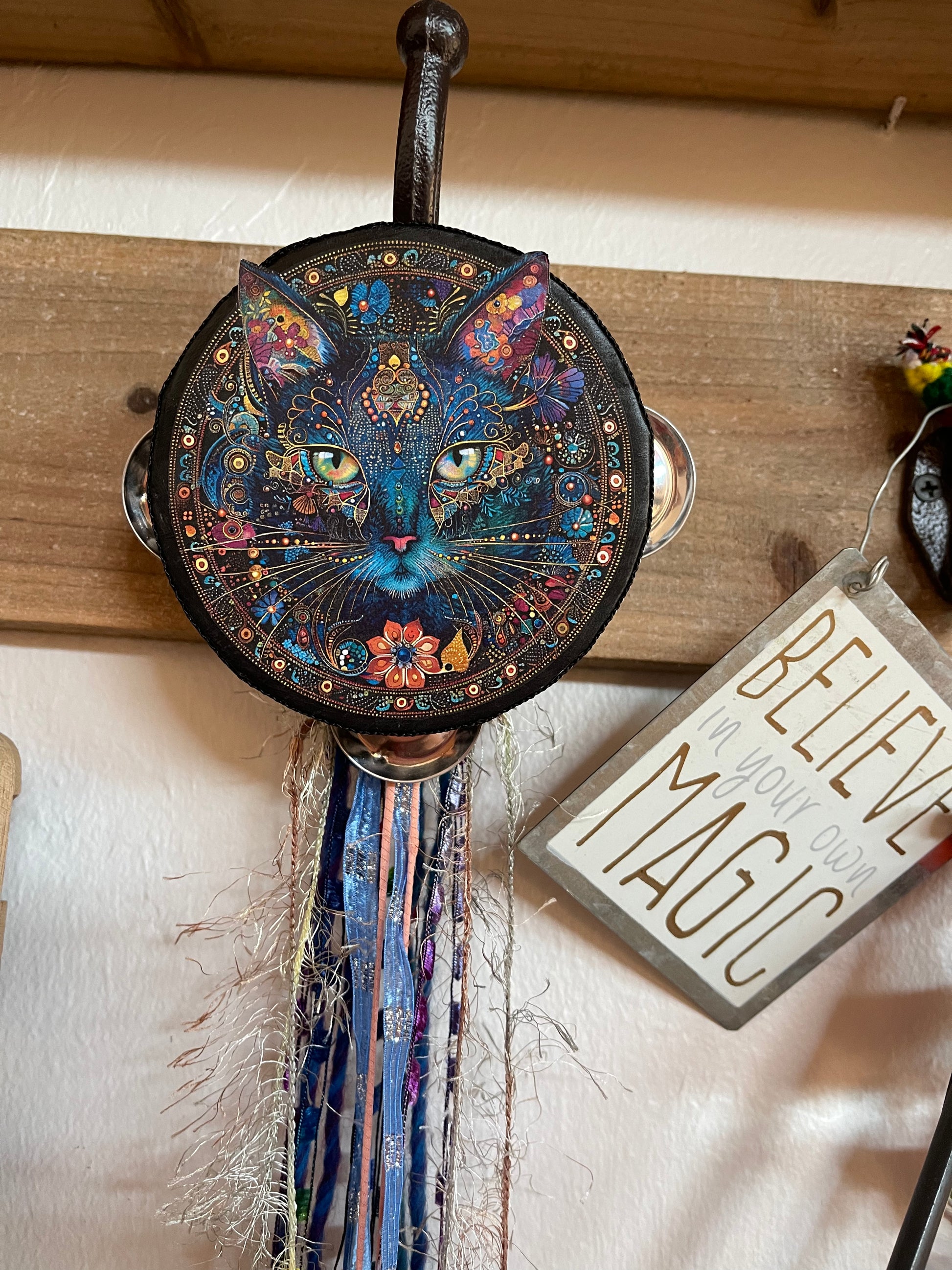 Charmed Mystical Cat Tambourine with Ribbon and Charm, Bodhi Home Decor