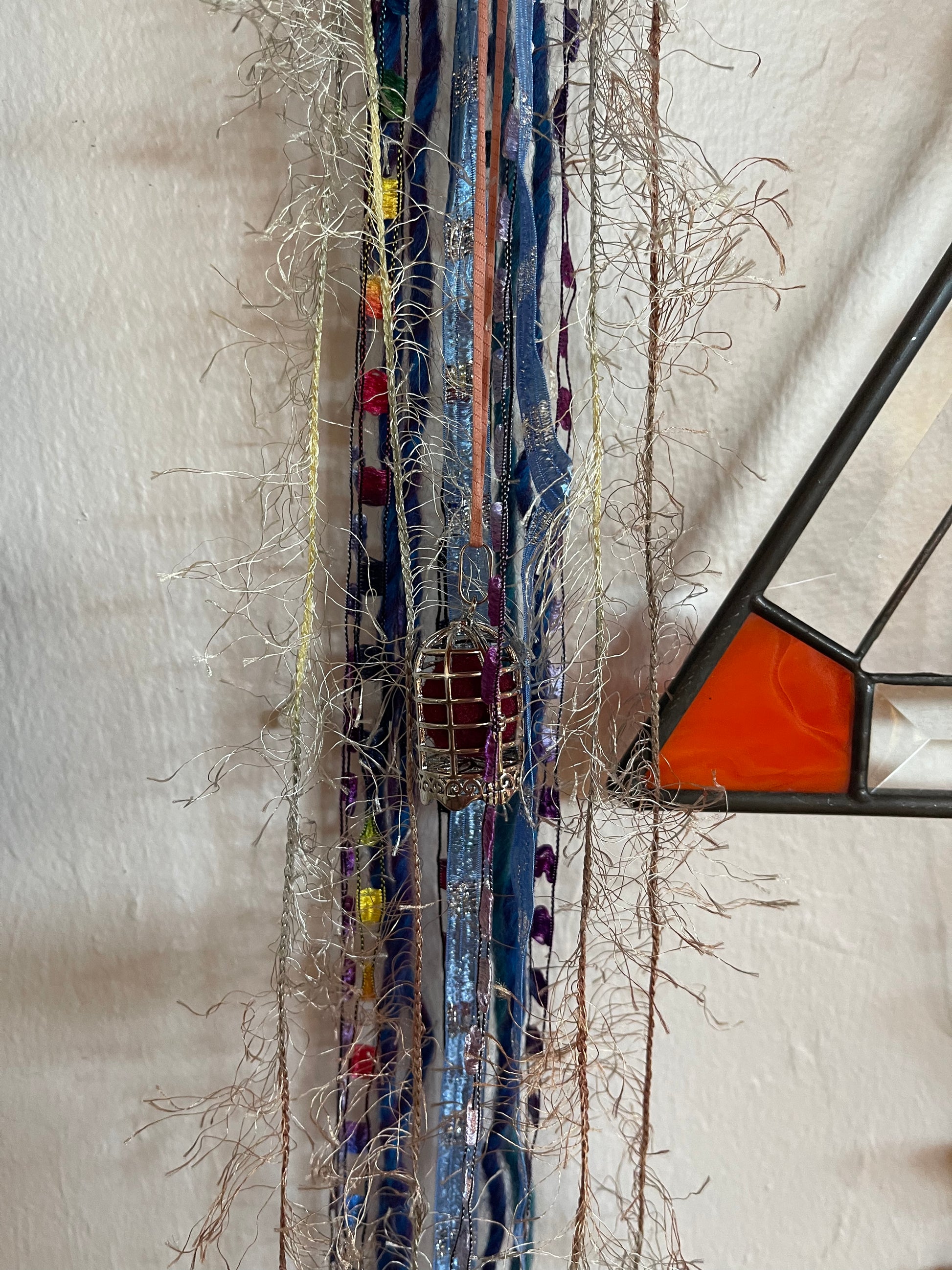 Elevate any space with the playful allure of this exquisite tambourine. Crafted with meticulous detail, the tambourine features a vibrant cascade of quality ribbon and a birdcage charm.