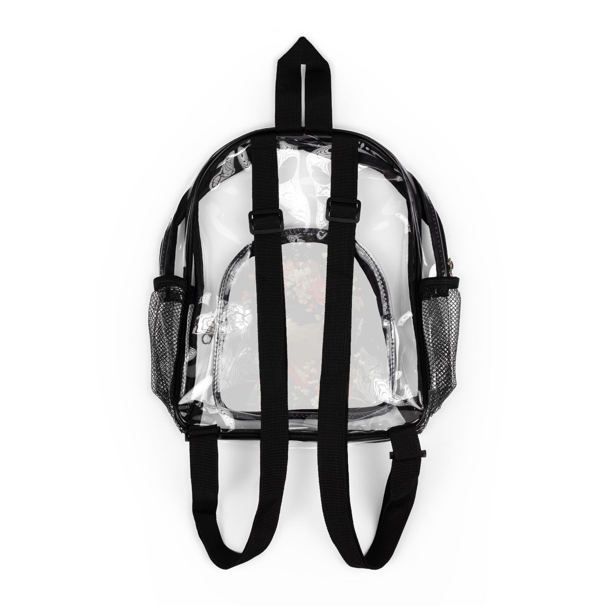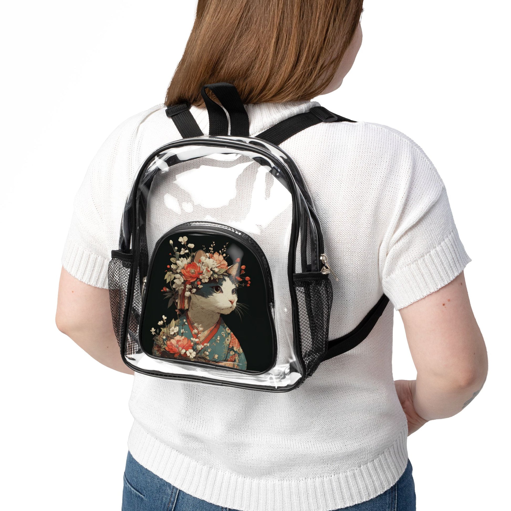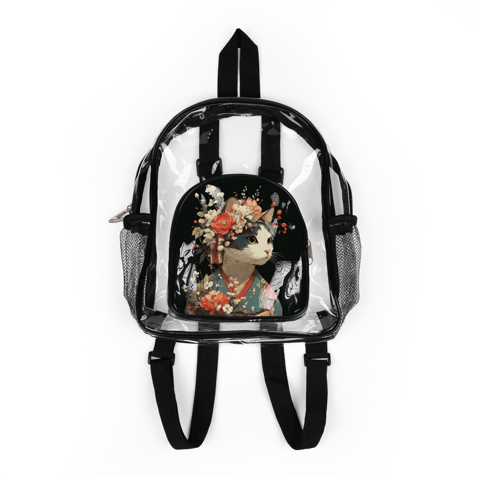 Clear Stadium Backpack with Floral Cat Design, Clear Bag for Concerts, Sports Events, Festivals, School, Fashion