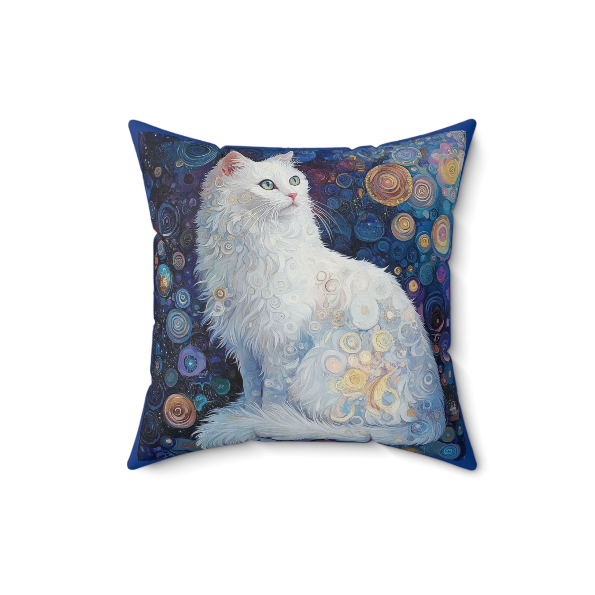 Crystal Cat Collection White Quartz Cat Pillow, Cozy Home Decor, Cat Lover Gift, Animal Art Cushion, Pet Themed Decorative Pillow