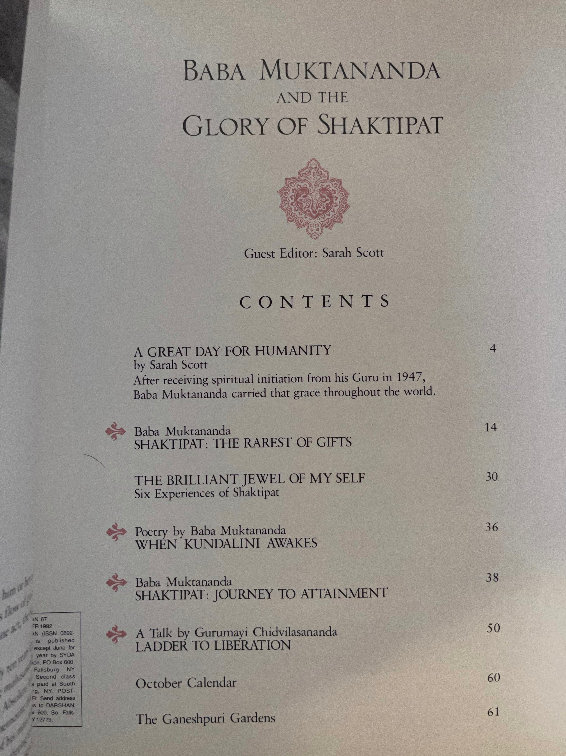 Darshan Magazine, In The Company of The Saints, Babamuktananda and The Glory of Shaktipat