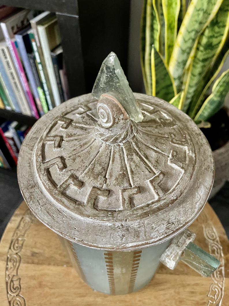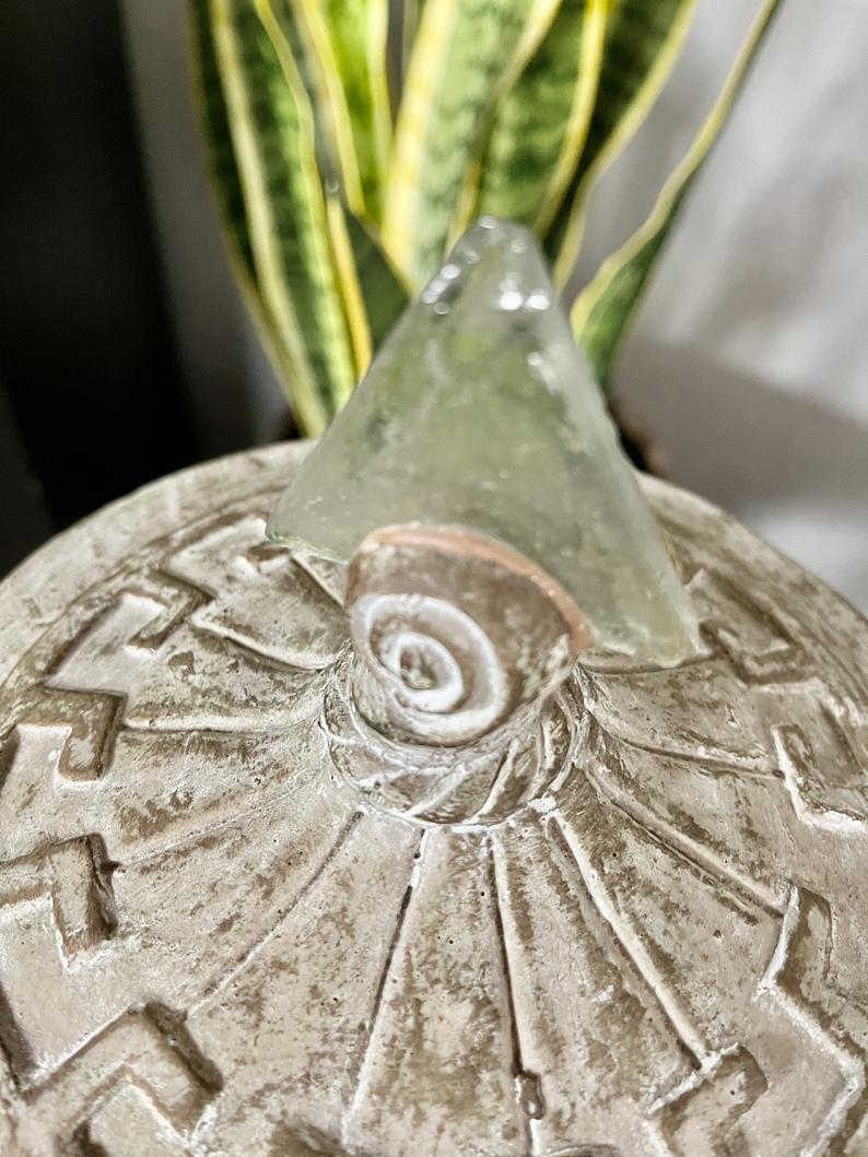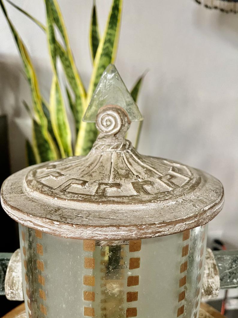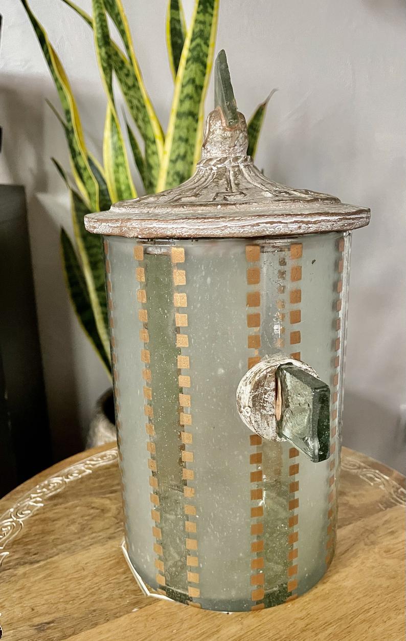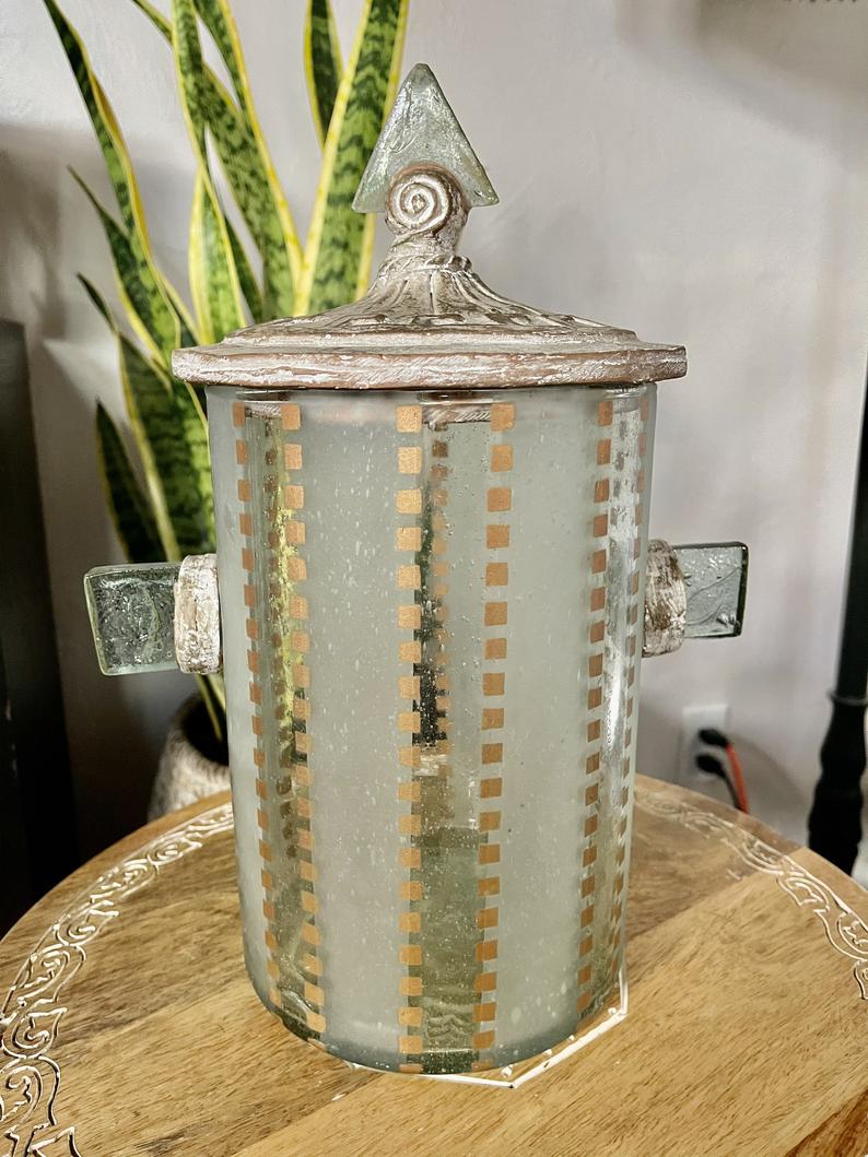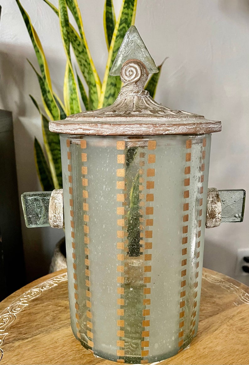 Eclectic Hand Crafted Glass Jar with Triangle Lid, Home Decor