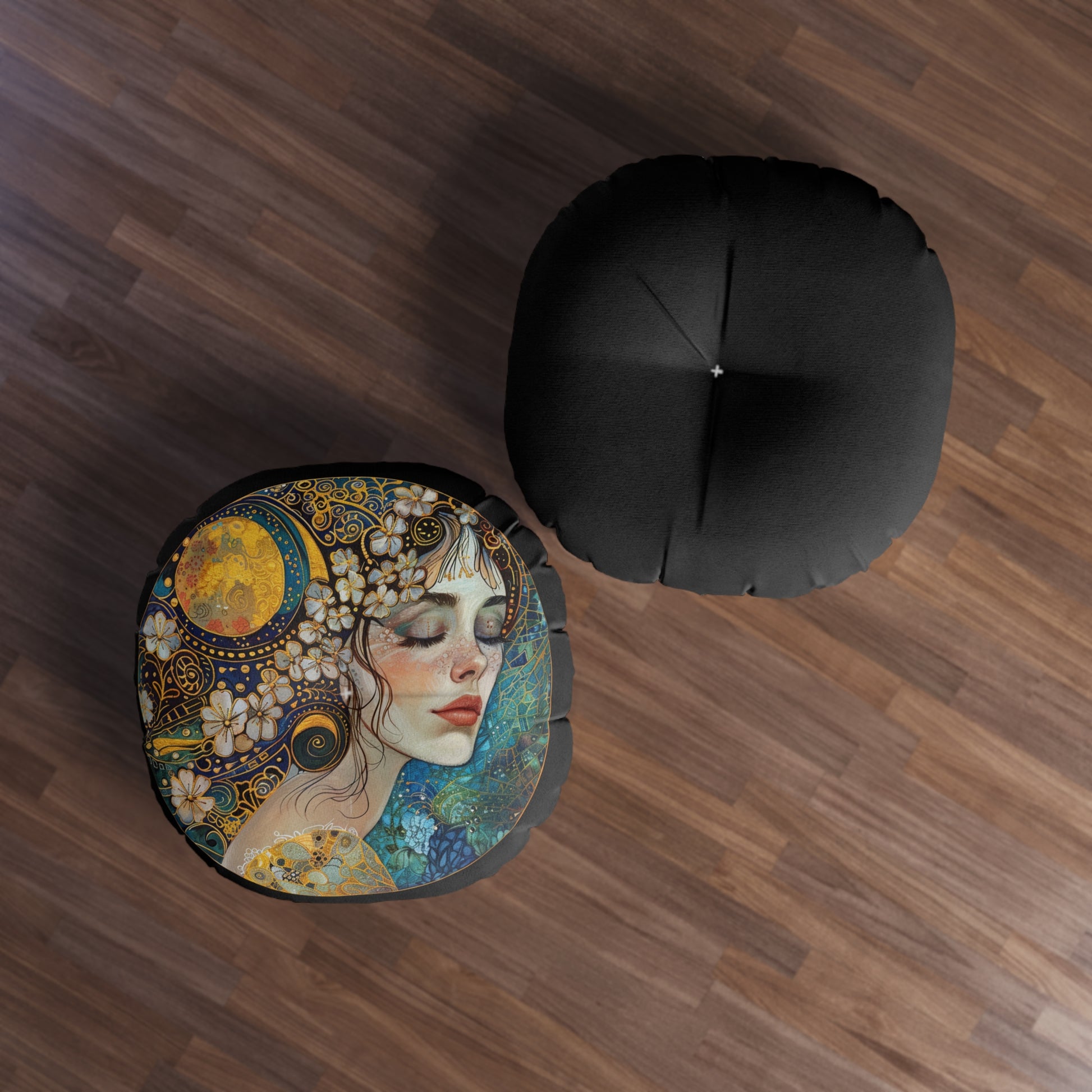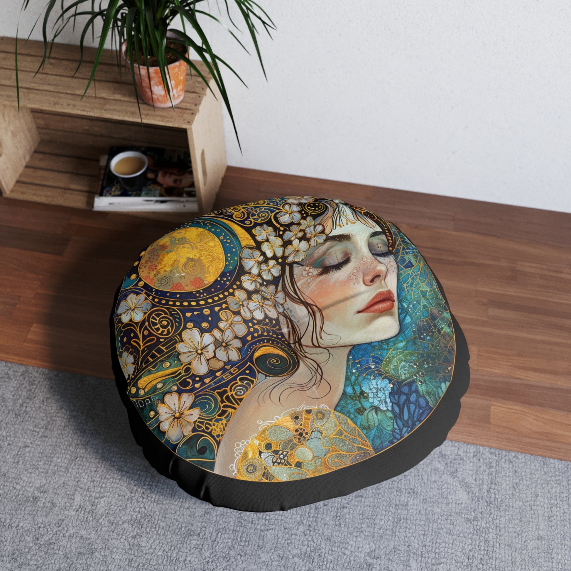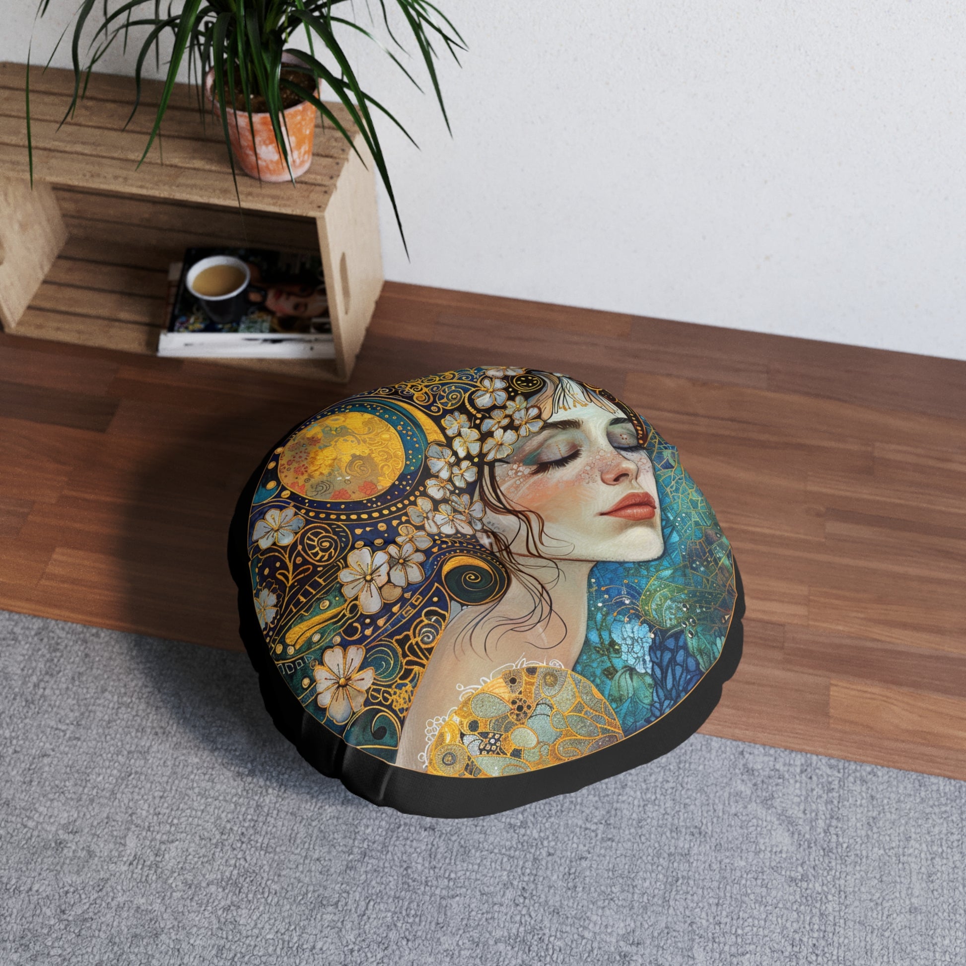 Elegant Bohemian Tufted Floor Pillow, Cozy Home Decor, Round Pillow, Boho Cushion, Meditation Support, Gift for Yoga Lovers