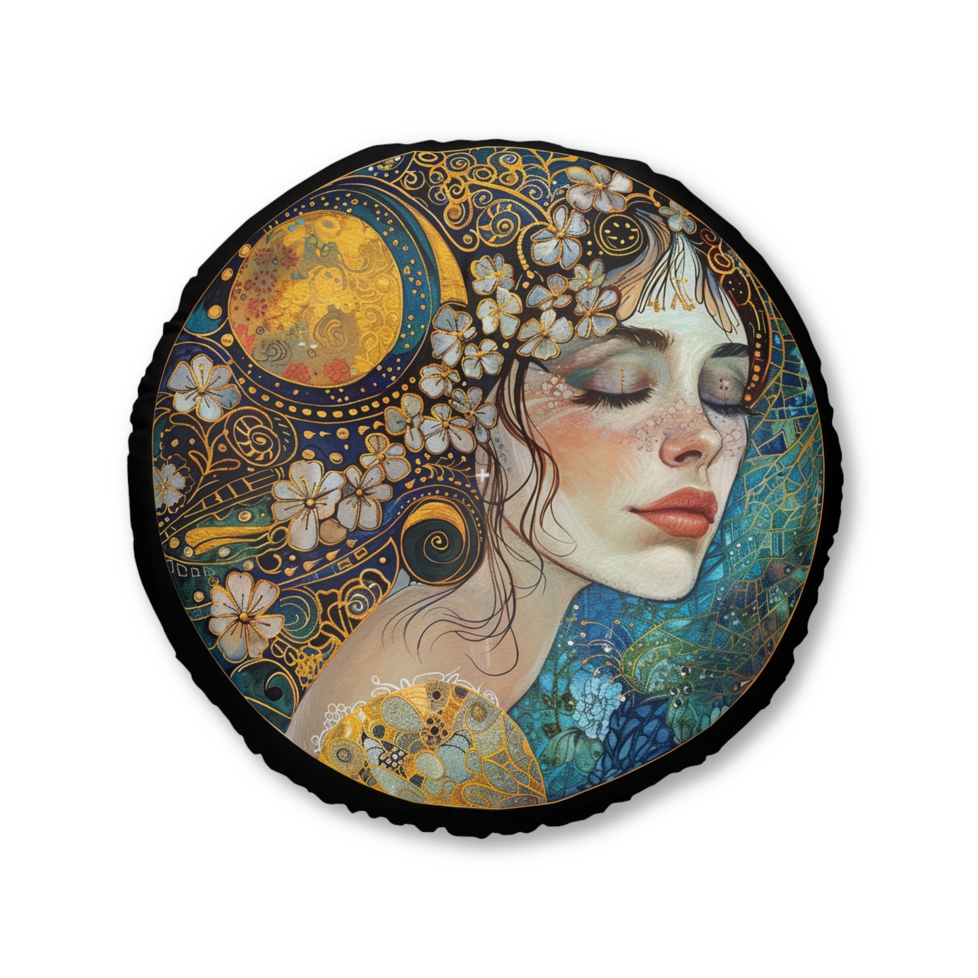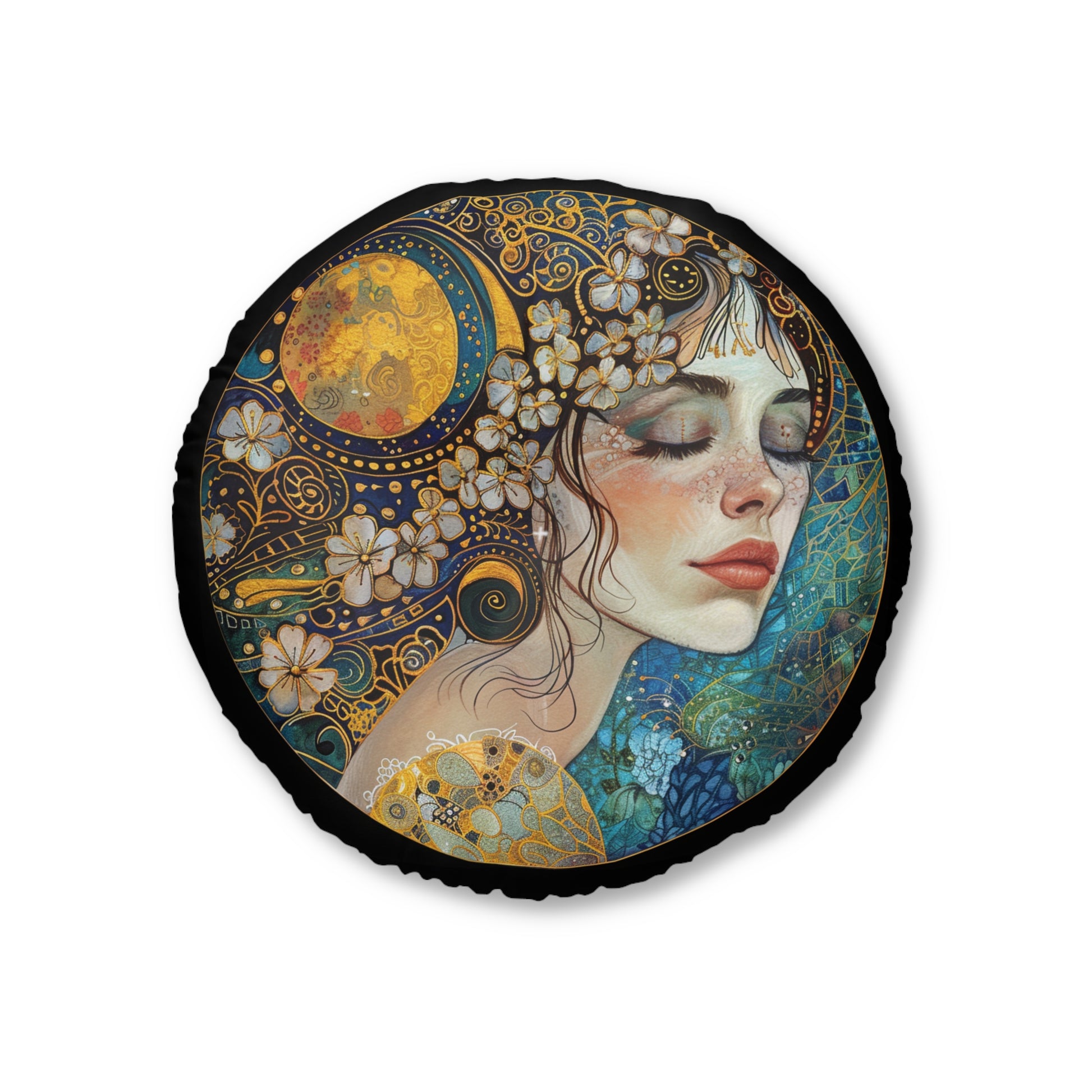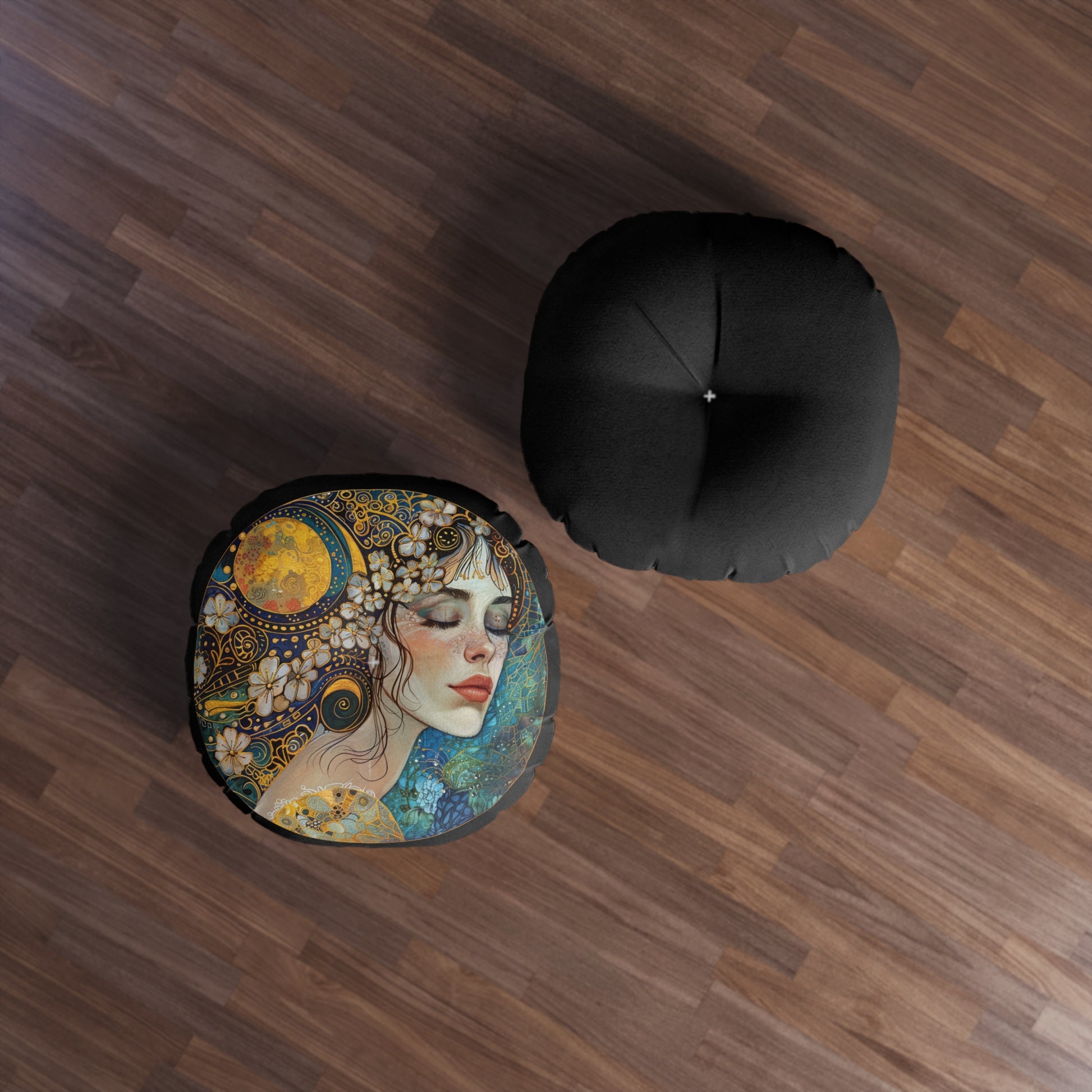 Elegant Bohemian Tufted Floor Pillow, Cozy Home Decor, Round Pillow, Boho Cushion, Meditation Support, Gift for Yoga Lovers