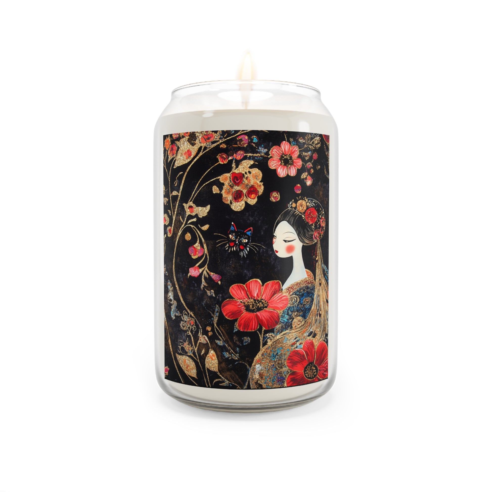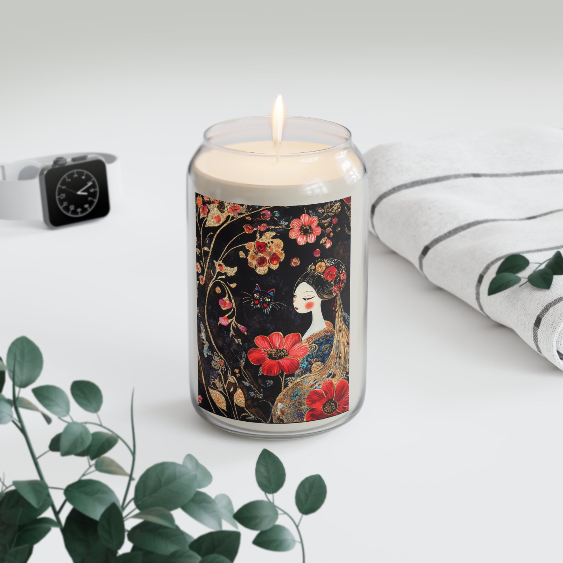 Elegant Geisha Cat Scented Soy Candle, Aromatherapy Gift, Hand-Poured Candle, Home Decor, Floral Design, Relaxation Gift