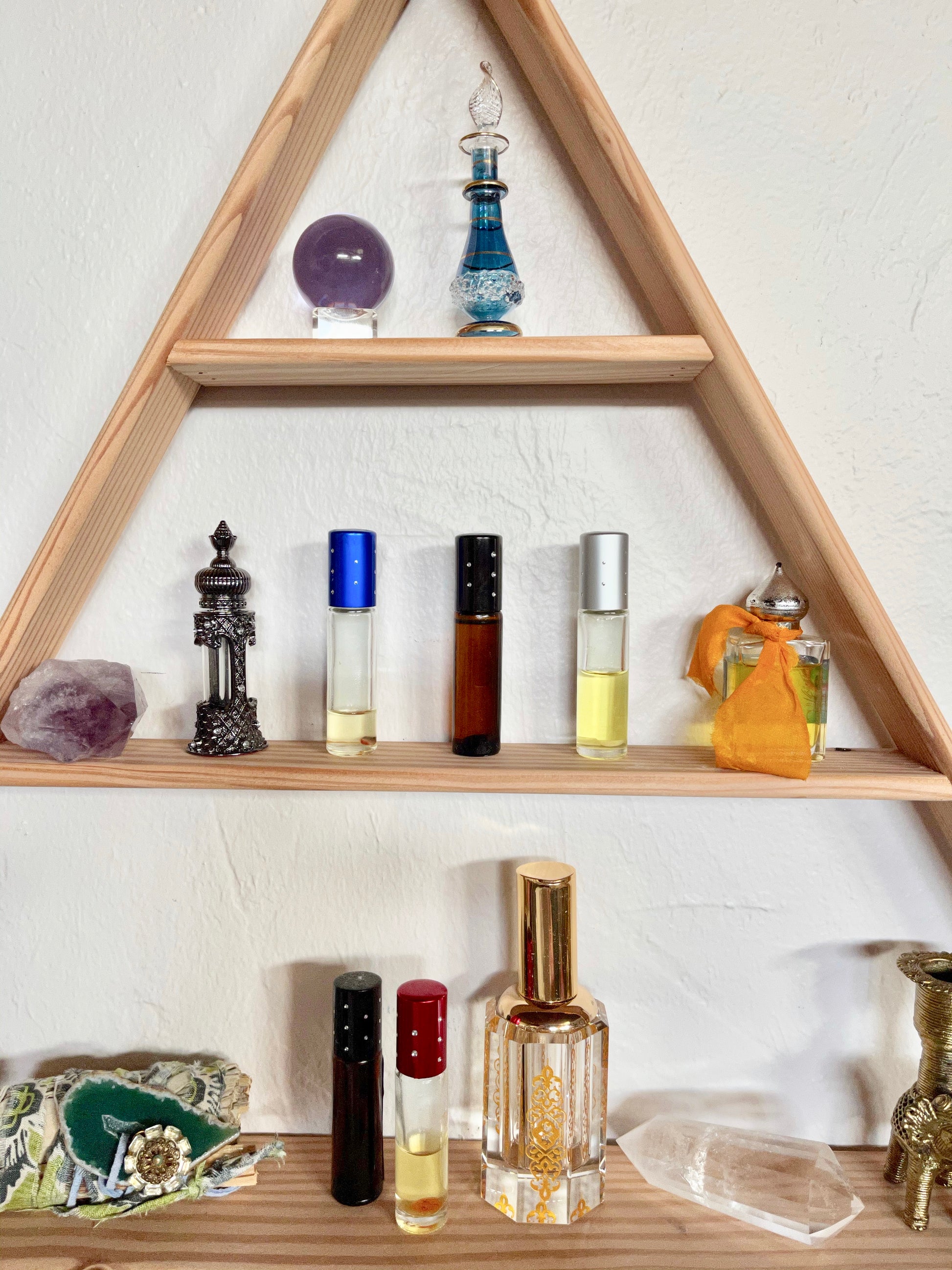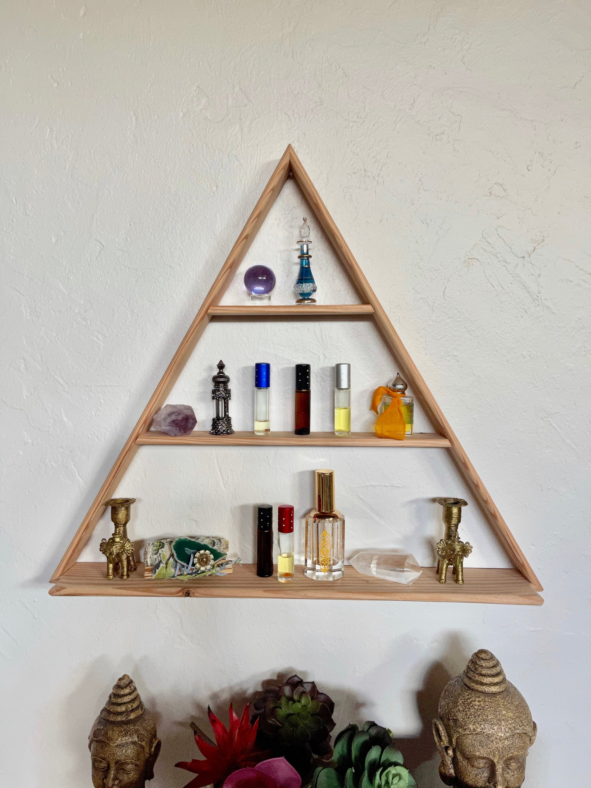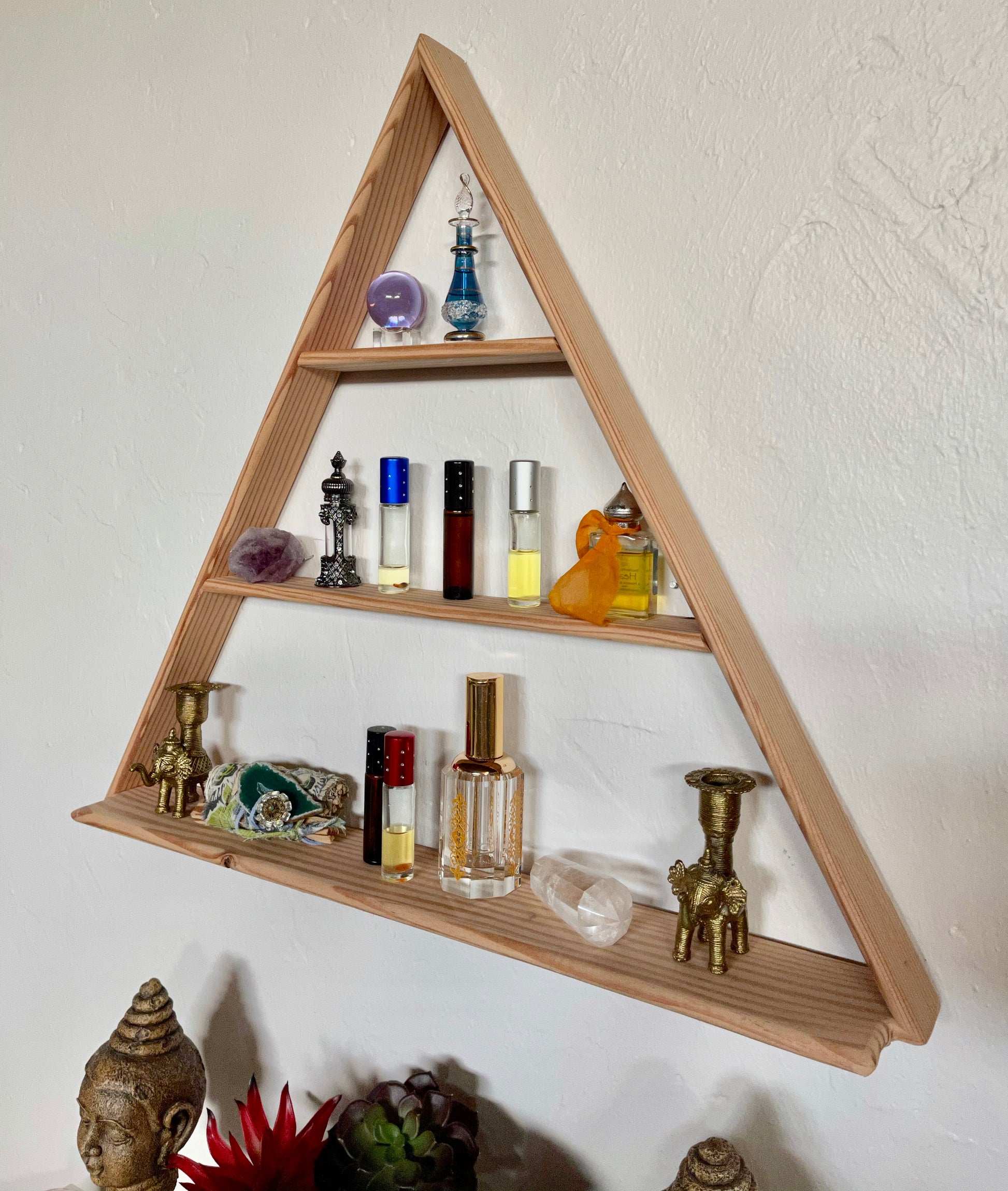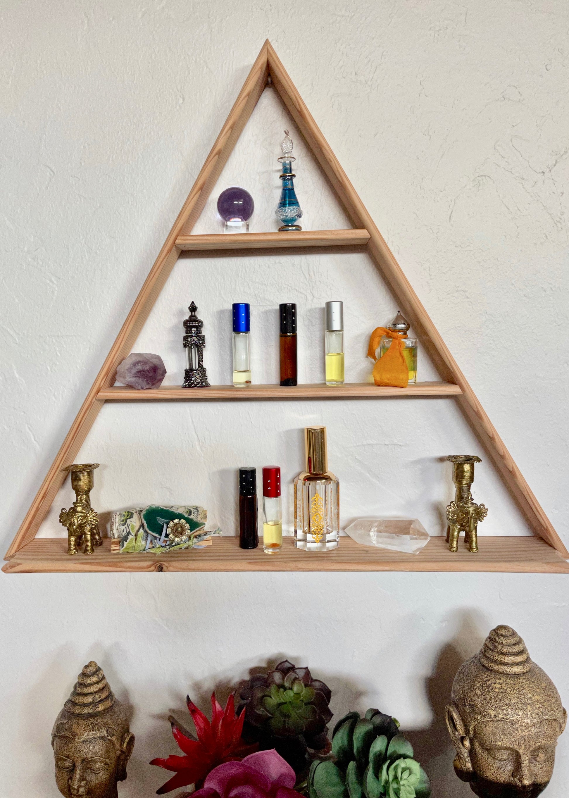 This large but lightweight triangle shelf is a perfect way to display all of your perfumes and essential oils.