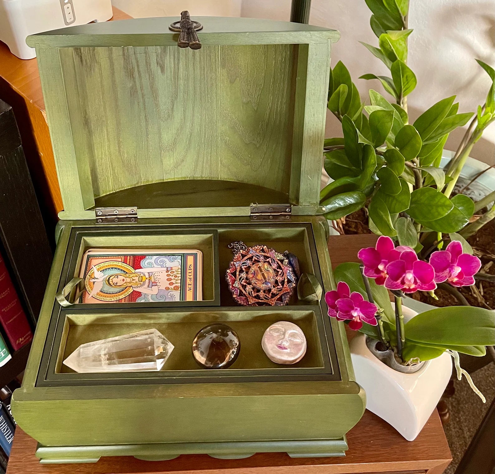 Fabulous Vintage Chest, Green Witch Mystical Storage Chest, Old World Vintage