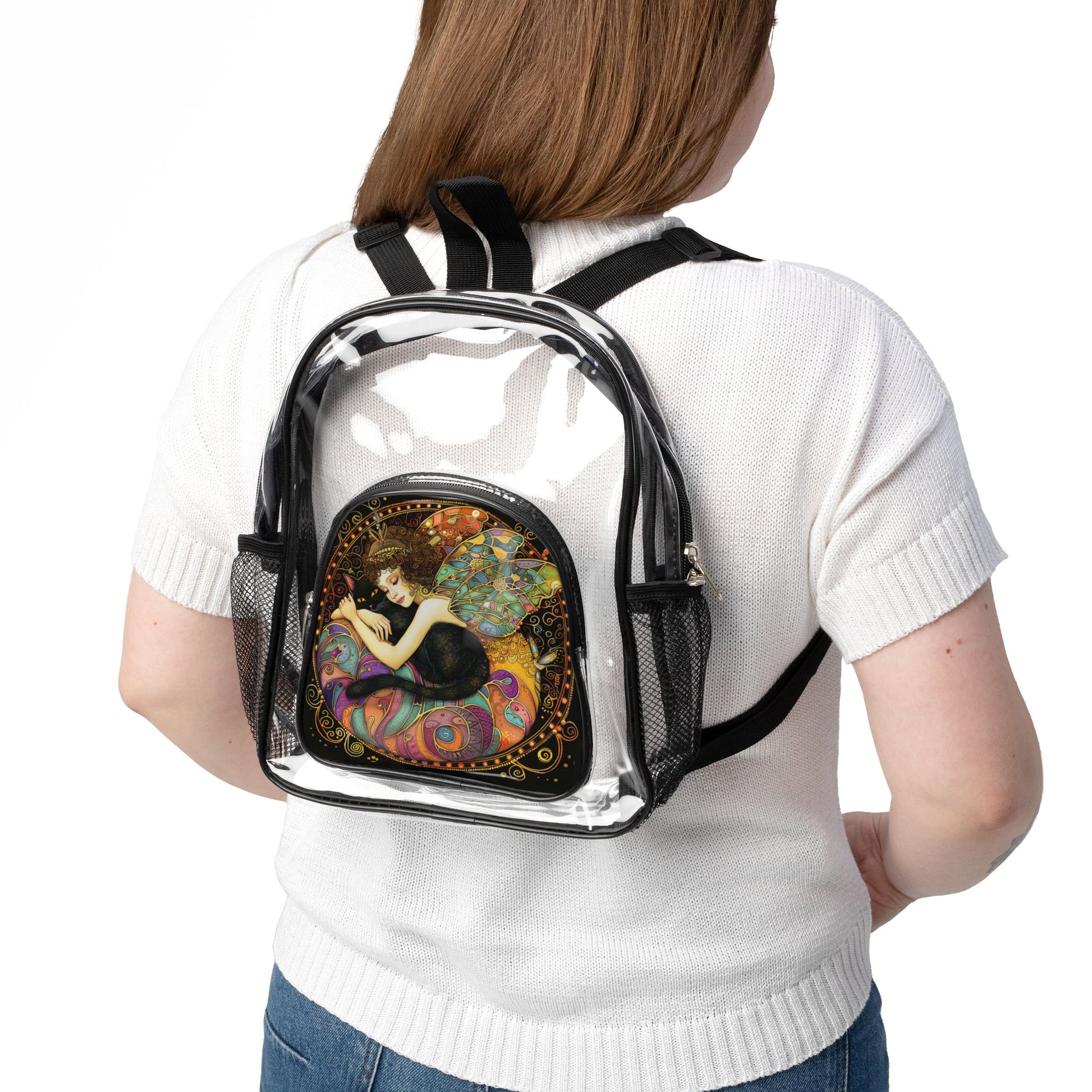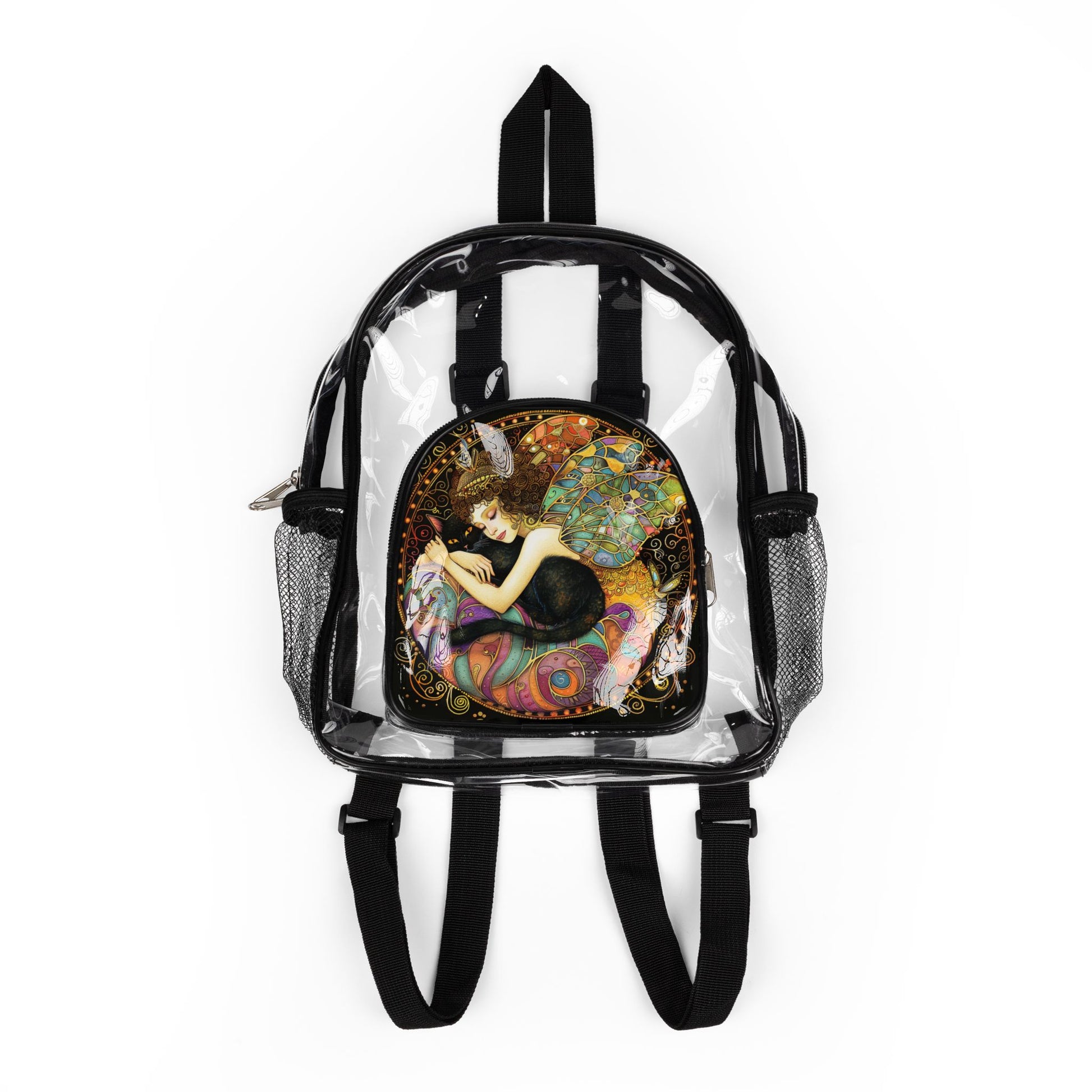 Fairy Cat Clear Stadium Backpack with Artistic Design, Transparent Bag, Festival Ready, Game Day Essentials, Eco-Friendly Carryall