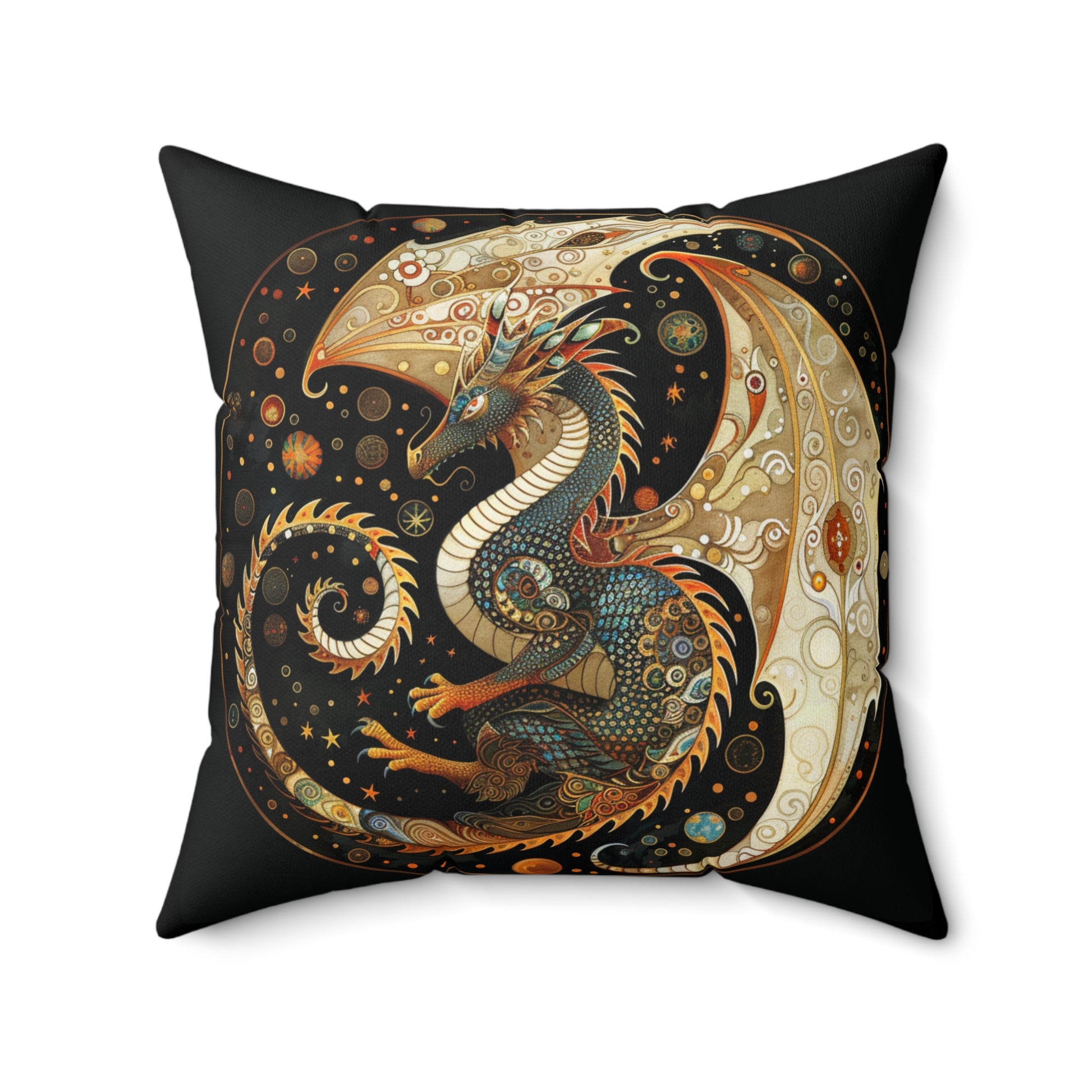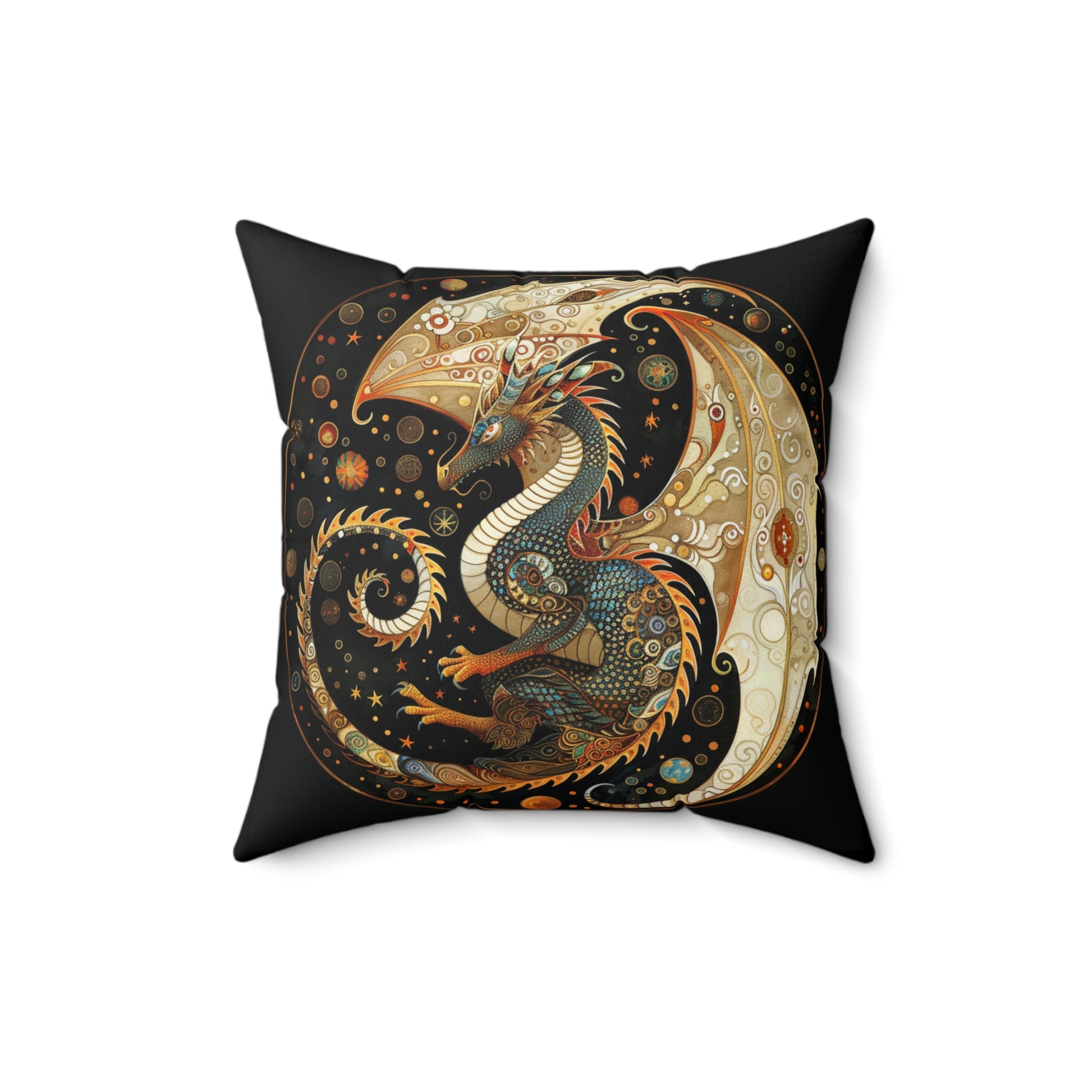 Transform your living space with this luxurious square pillow, designed to add a touch of elegance and whimsy to any room. The intricate design evokes a sense of mystery and adventure, making it a perfect accent for both modern and bohemian decor. Whether placed on a cozy couch or in a stylish bedroom, this pillow invites comfort and creativity. Ideal for art lovers, dragon enthusiasts, or anyone looking to express their unique style. Perfect for home decor refreshes, housewarming gifts, or simply as a treat for yourself. This product shines during celebrations like housewarming parties, birthdays, or seasonal holidays when personalized touches are appreciated.