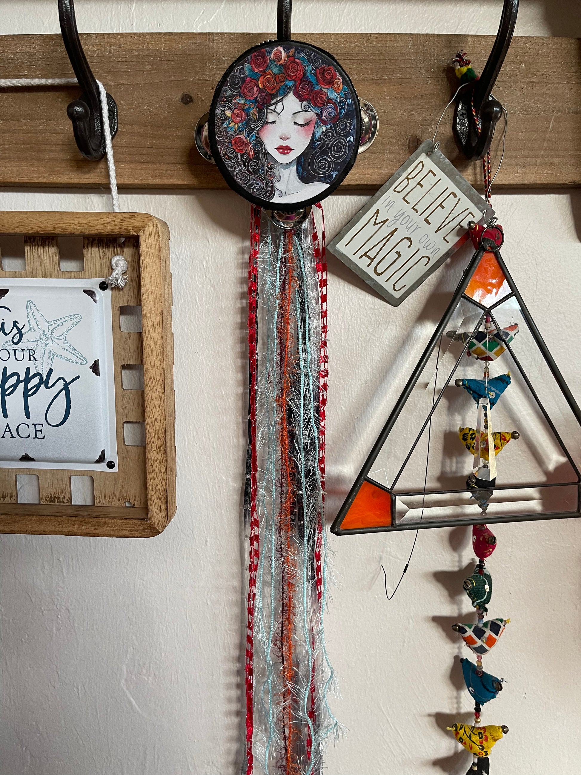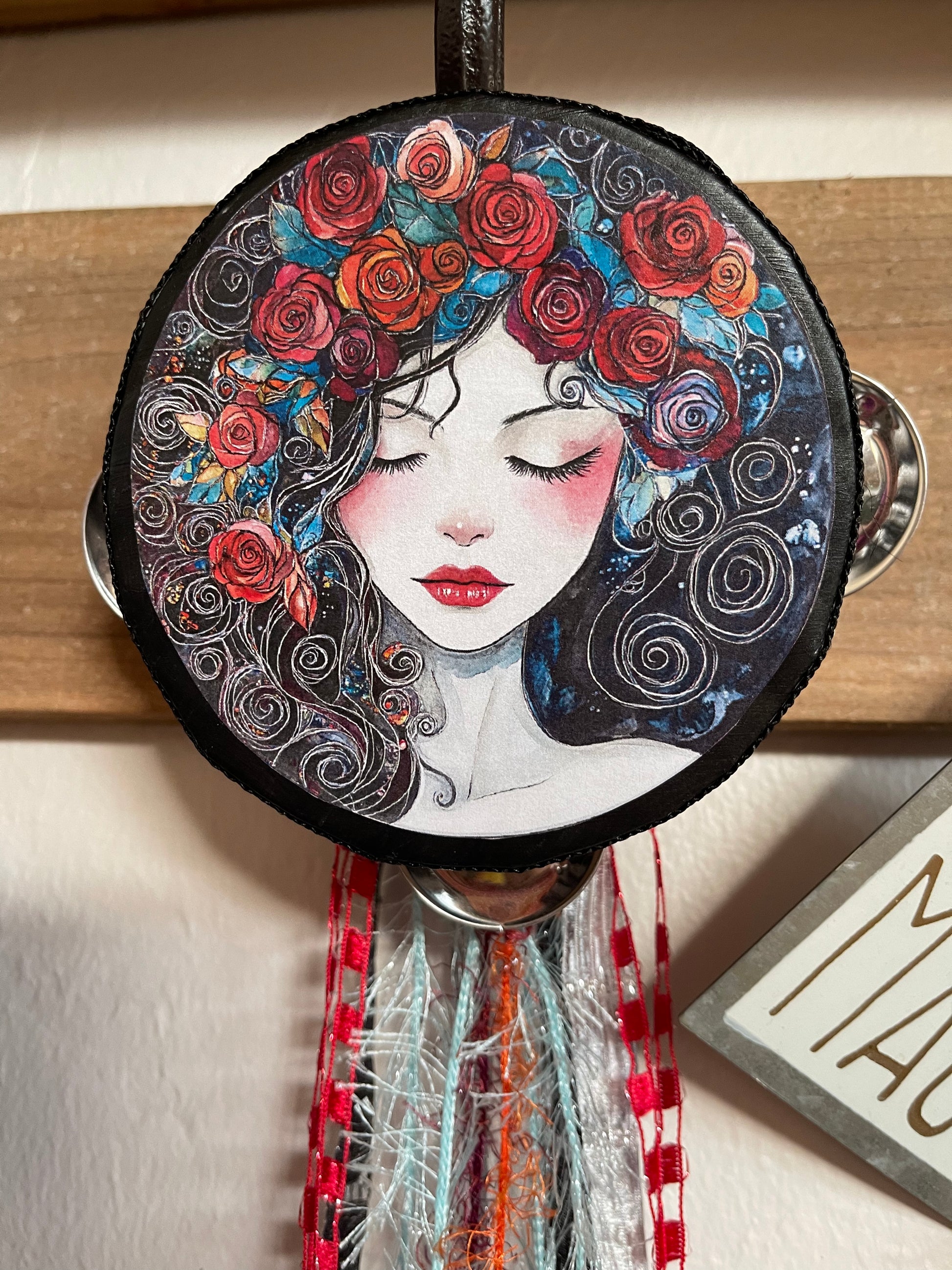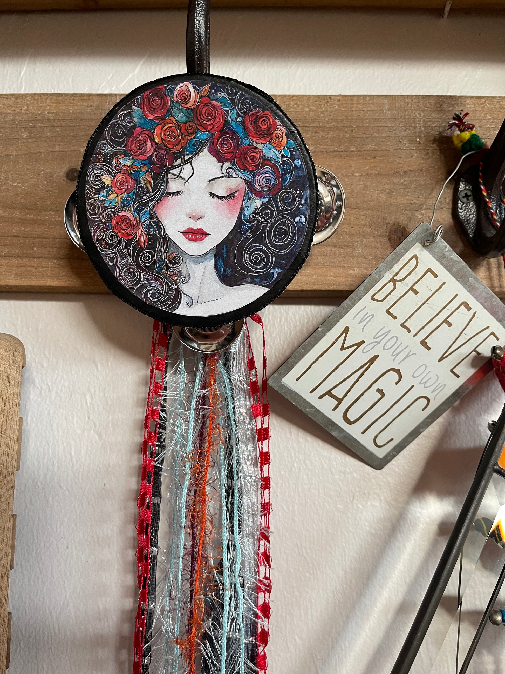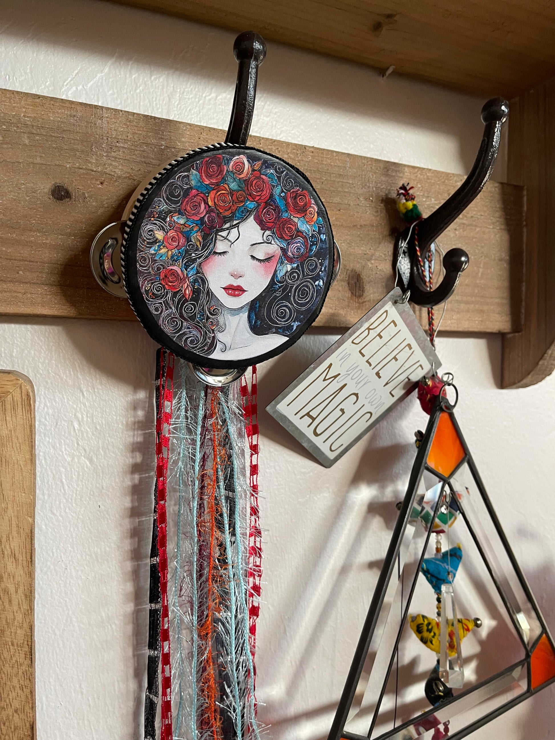Floral Goddess Tambourine and Ribbon Wall Accent, Bodhi Home Decor