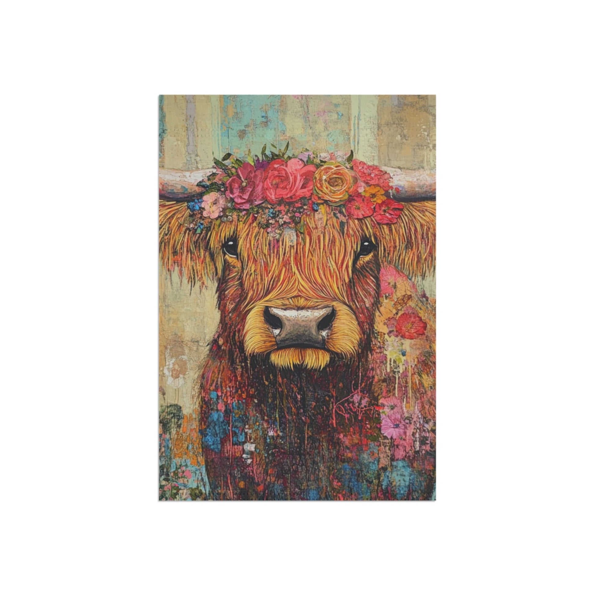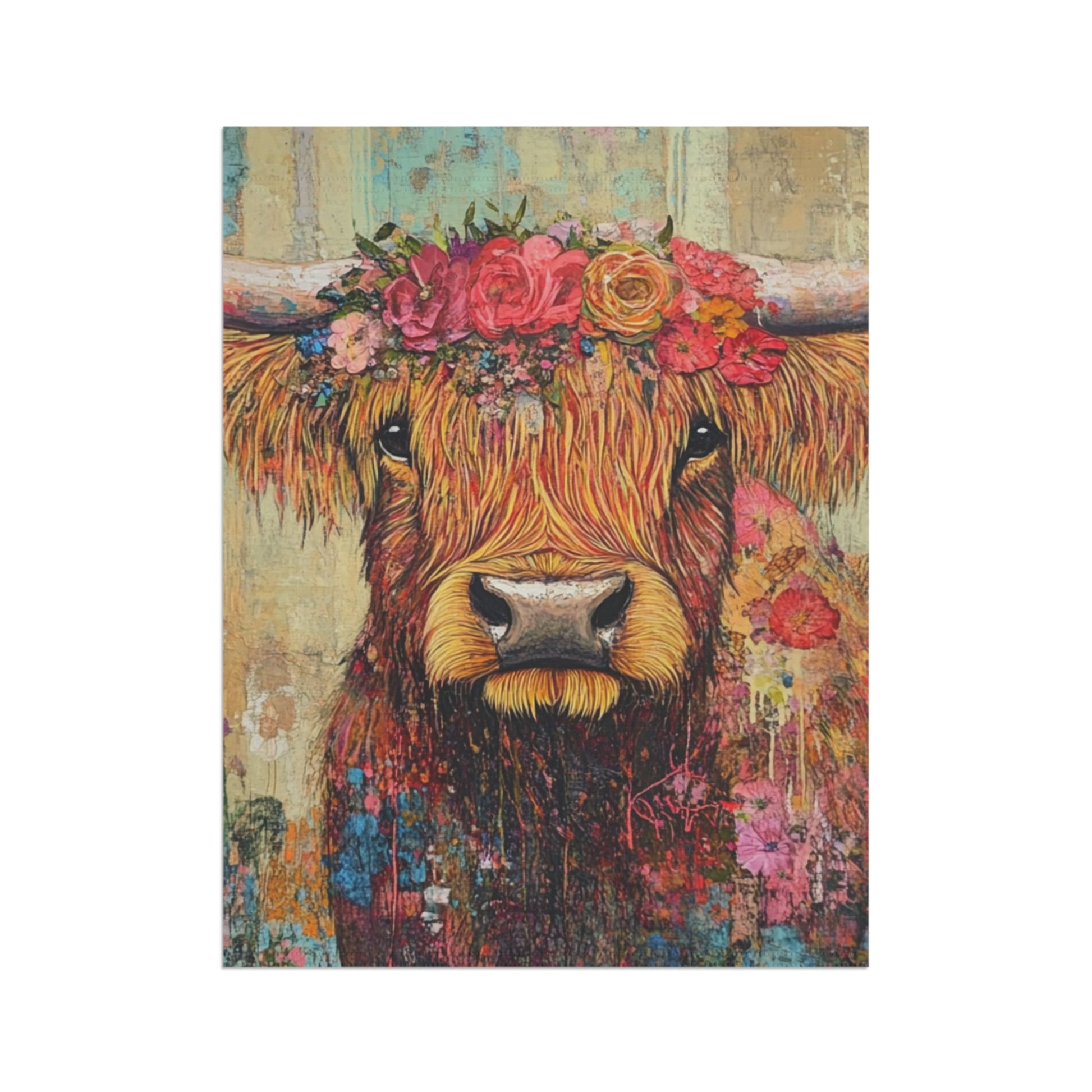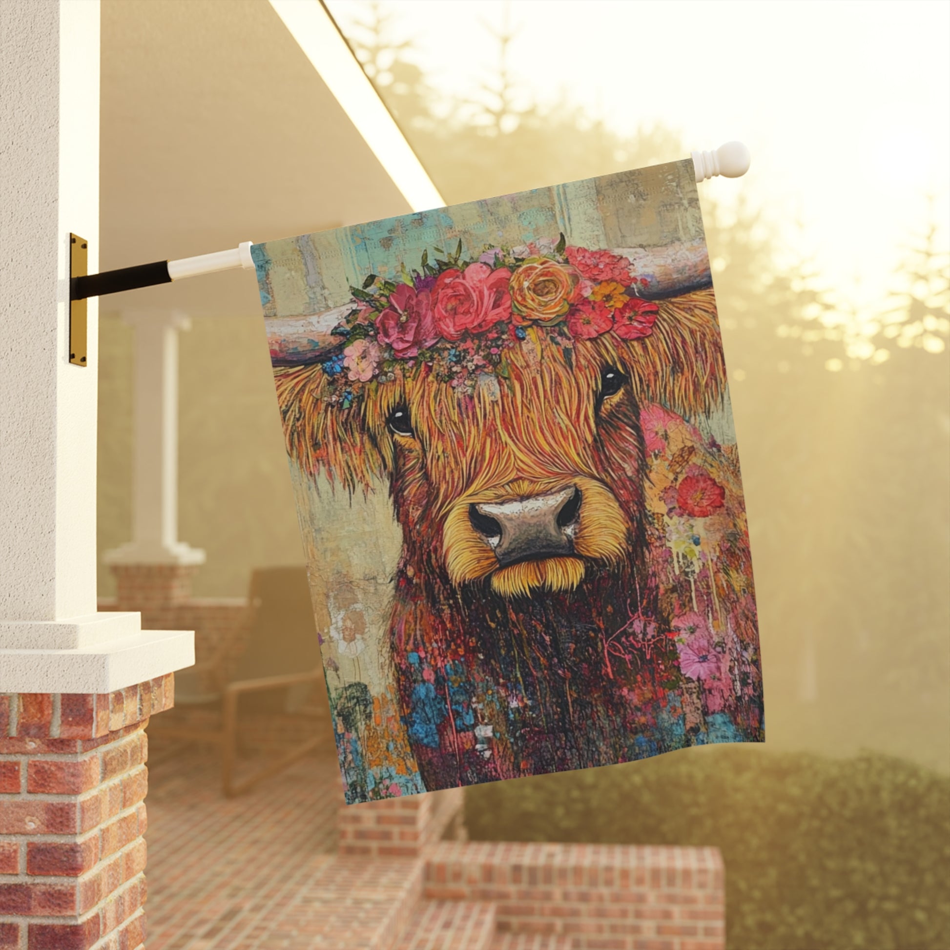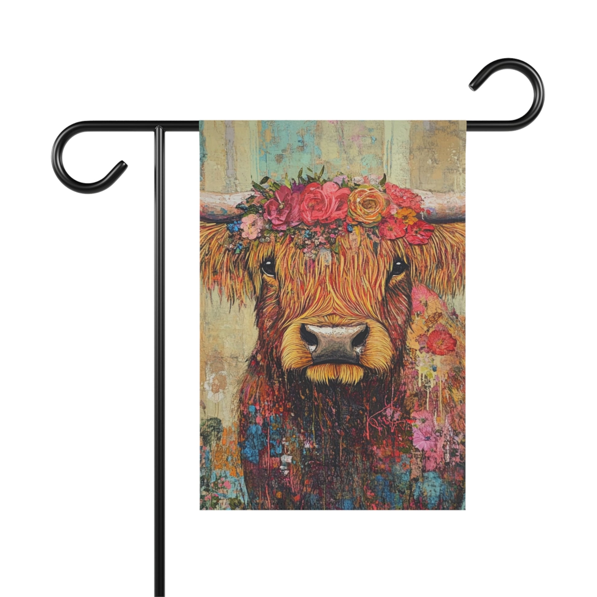 Floral Highland Cow Garden Banner, Outdoor Decor, Farmhouse Style Flag, Ranch Decor, Spring and Summer Decor, Gift for Garden Lovers