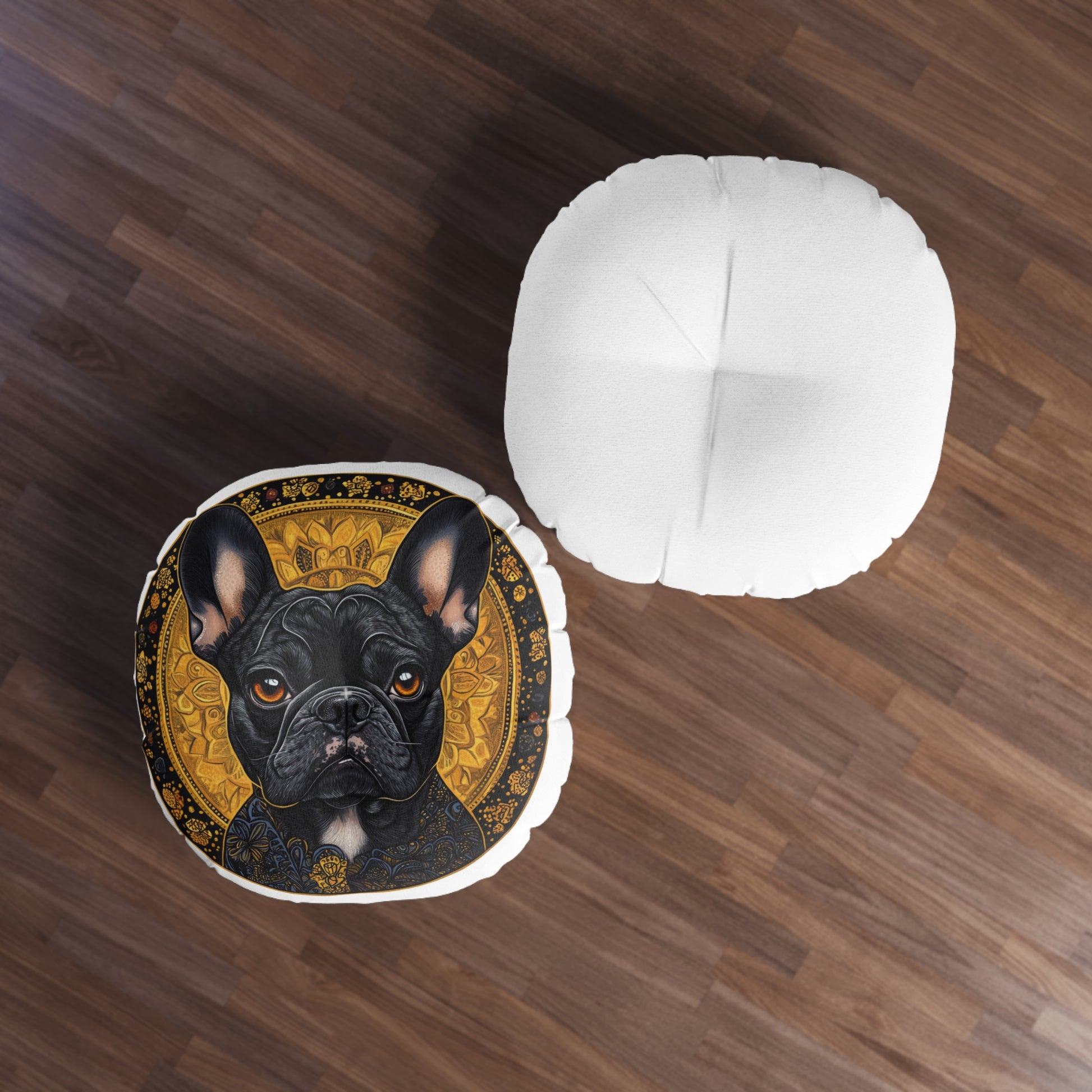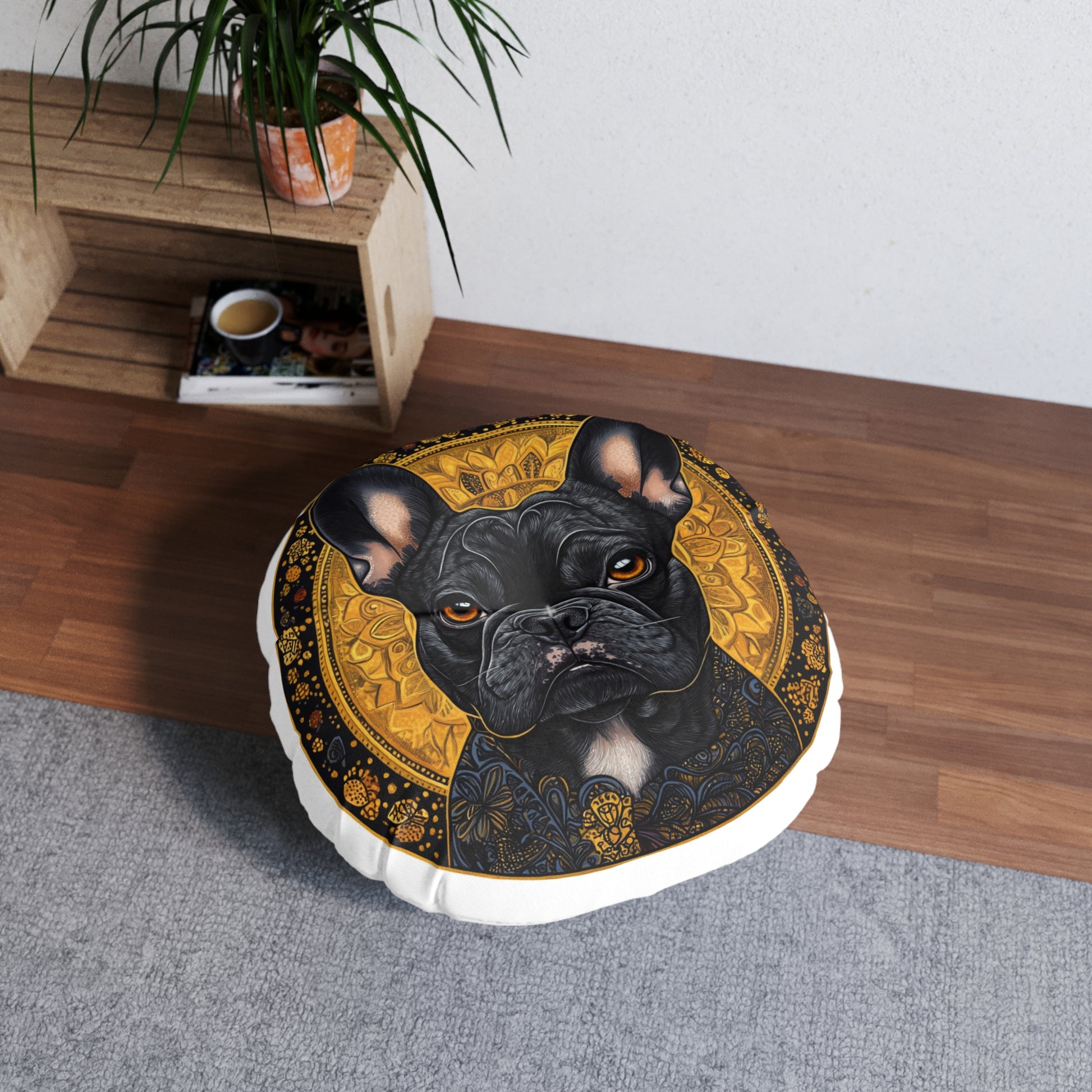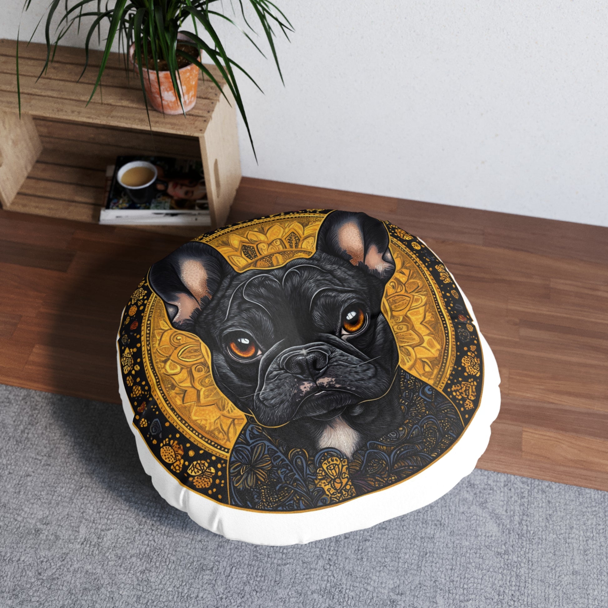French Bulldog Tufted Floor Pillow, Round Pet Decor, Boho Home Accent, Dog Lover Gift, Cozy Living Room Style