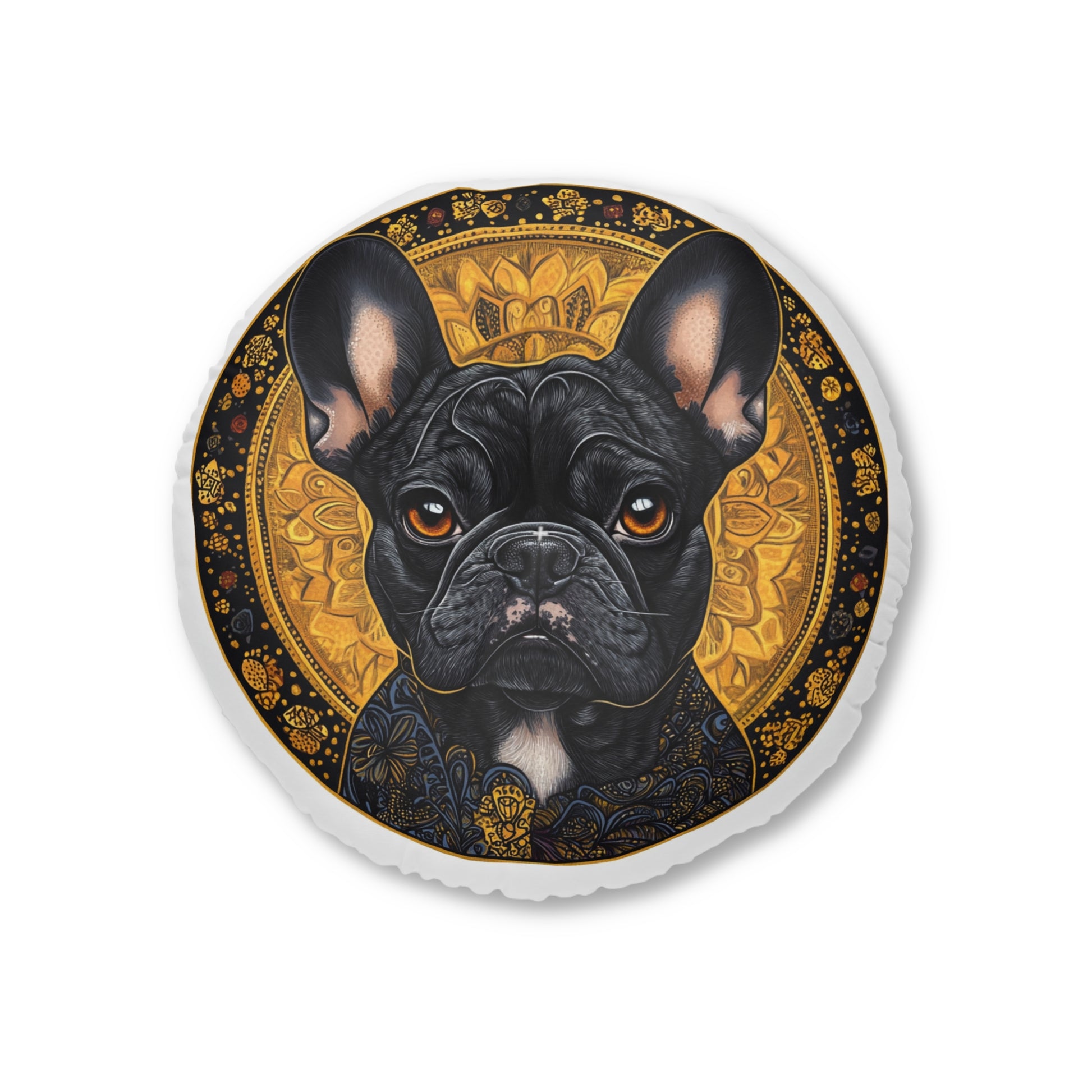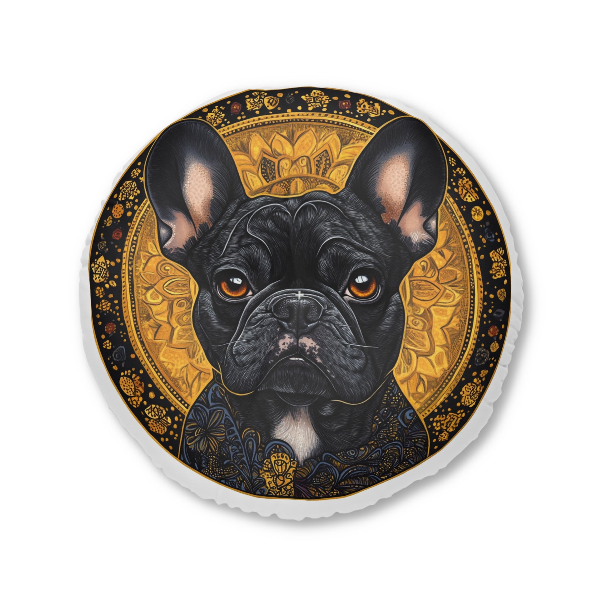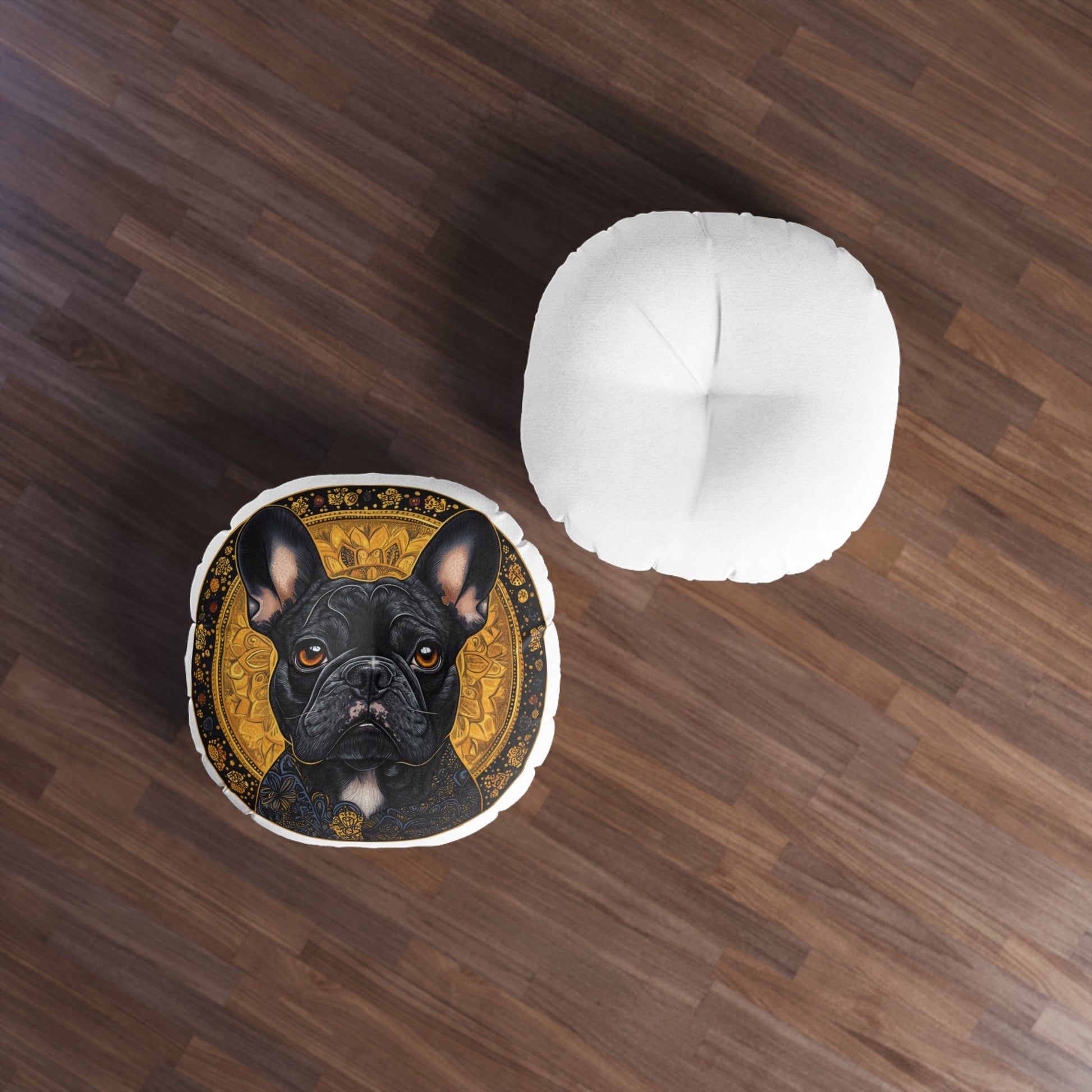 French Bulldog Tufted Floor Pillow, Round Pet Decor, Boho Home Accent, Dog Lover Gift, Cozy Living Room Style