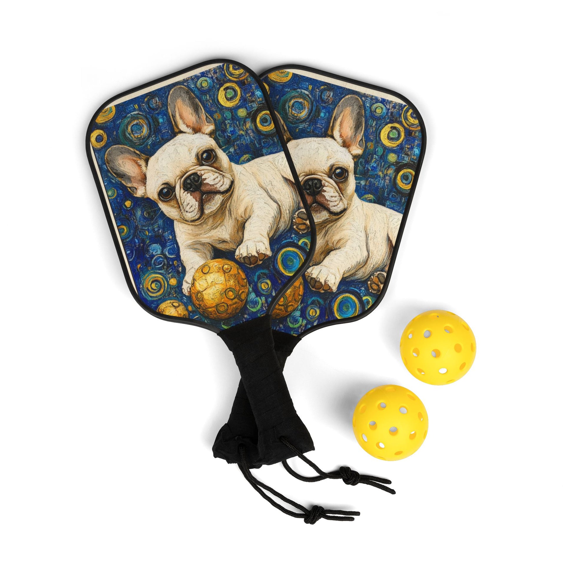 Frenchie Pickleball Paddle Set with French Bulldog Design, Fun Sports Kit for Pickleball Lovers, Unique Gift for Pet Owners and Athletes