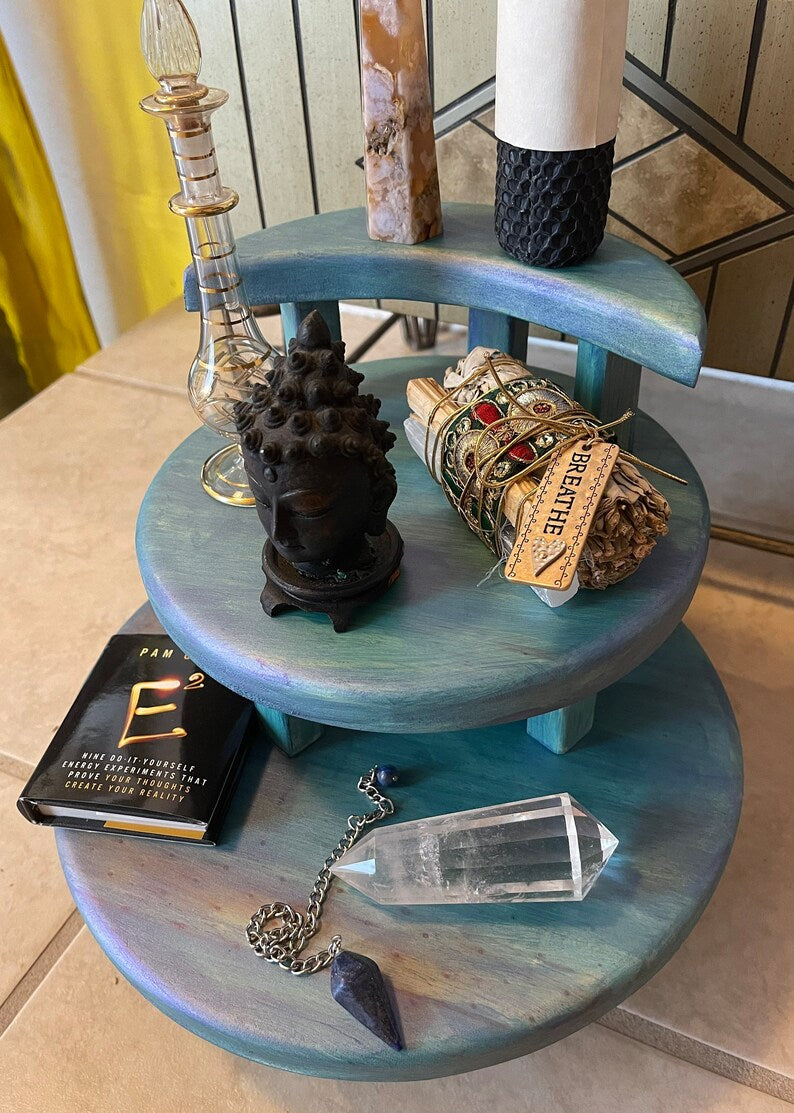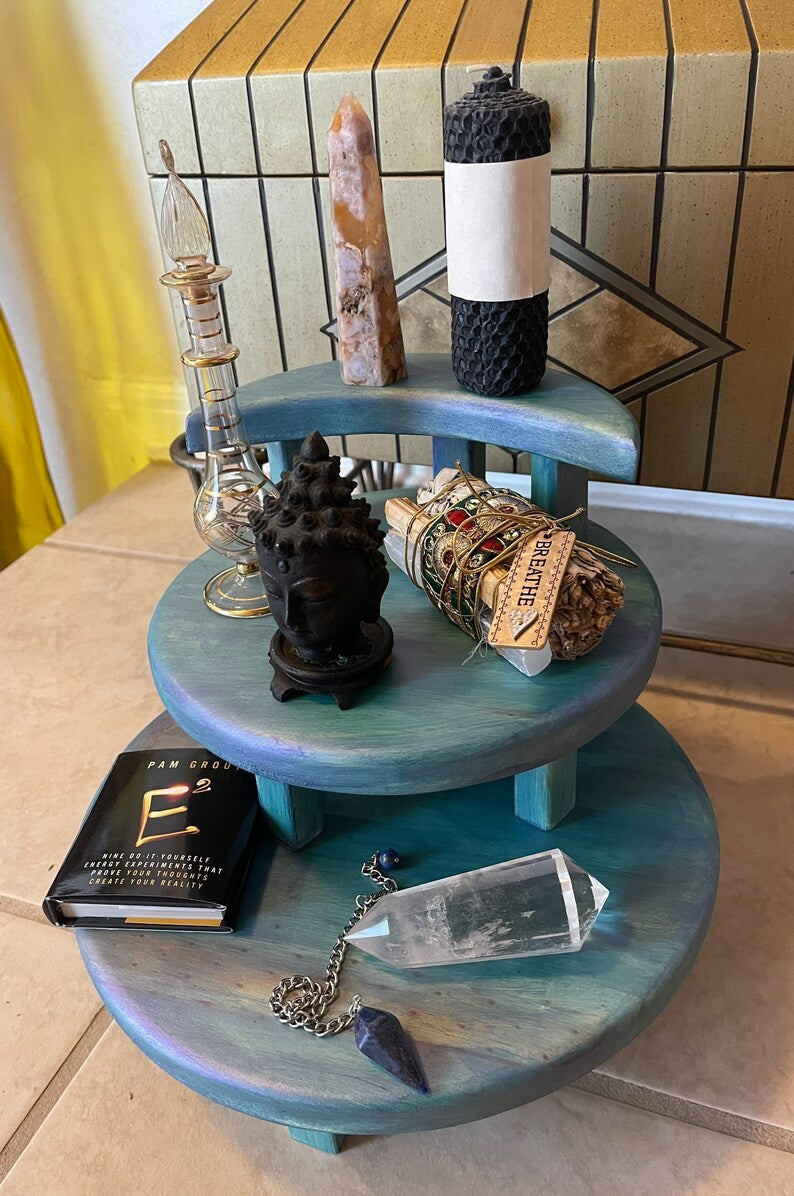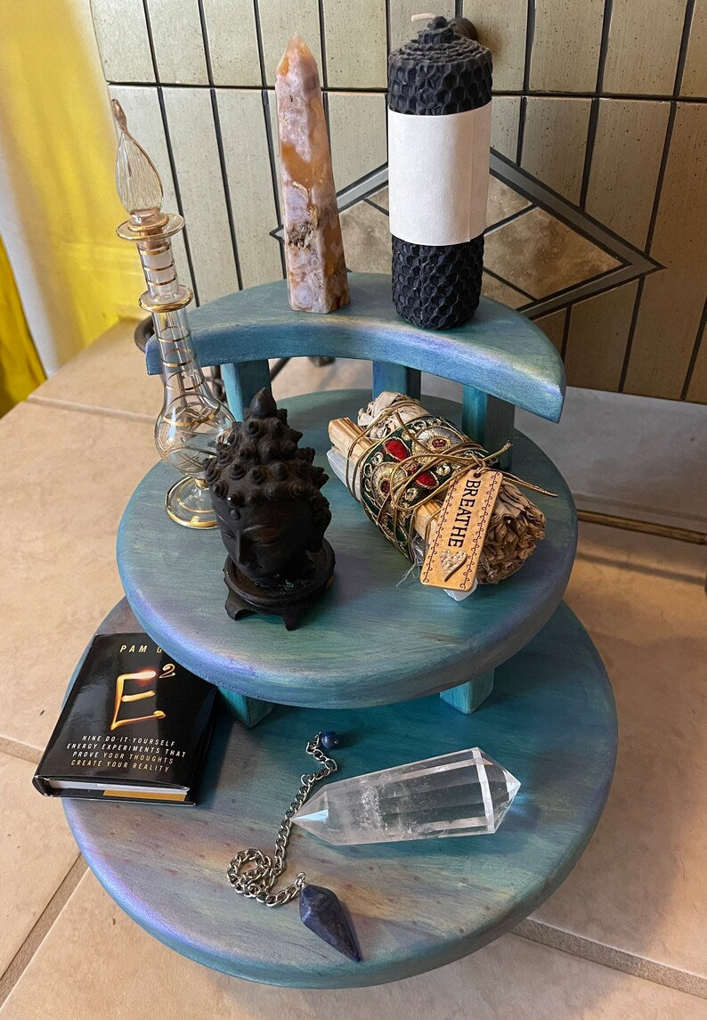 Galaxy Stain Crescent Moon Meditation Tables, Home Decor