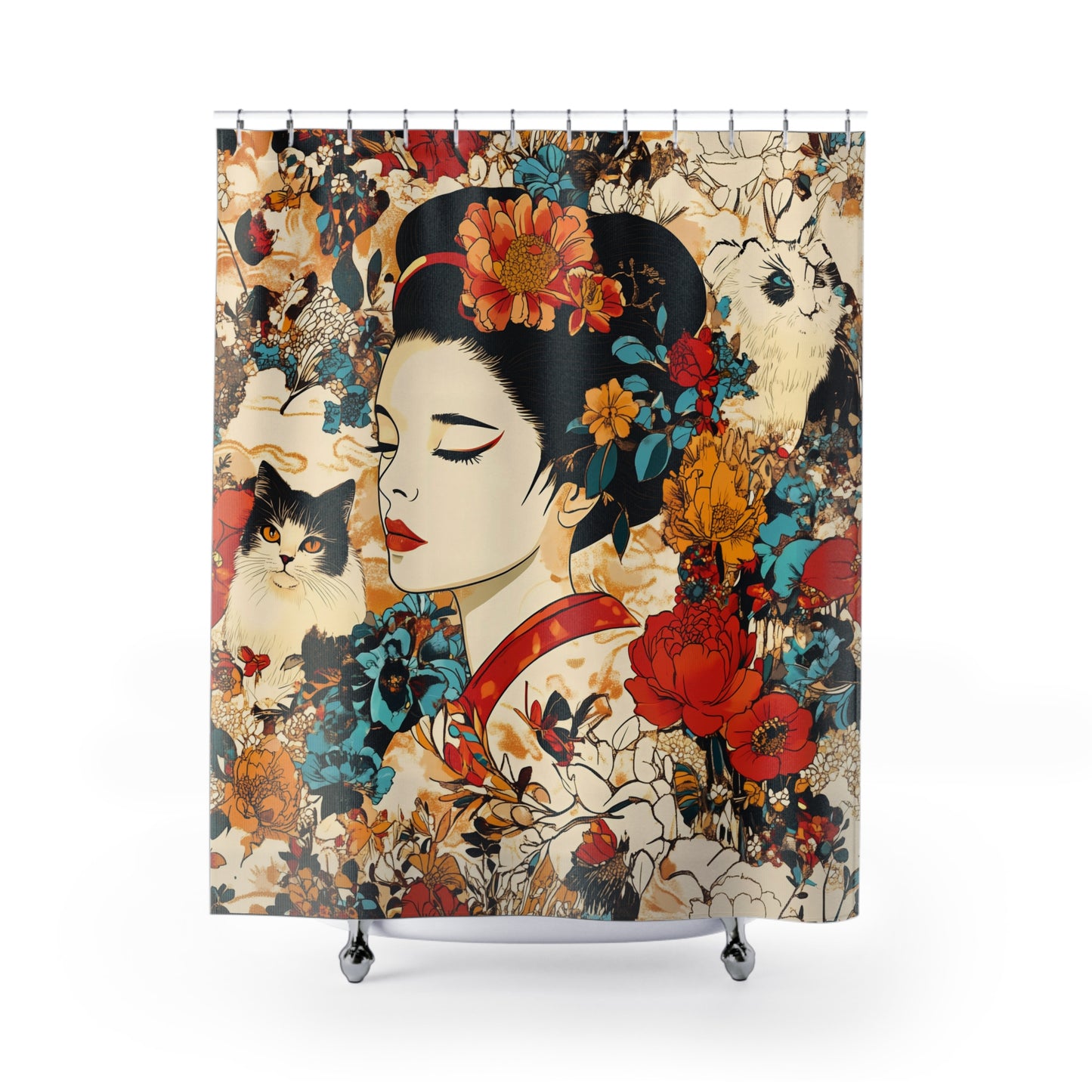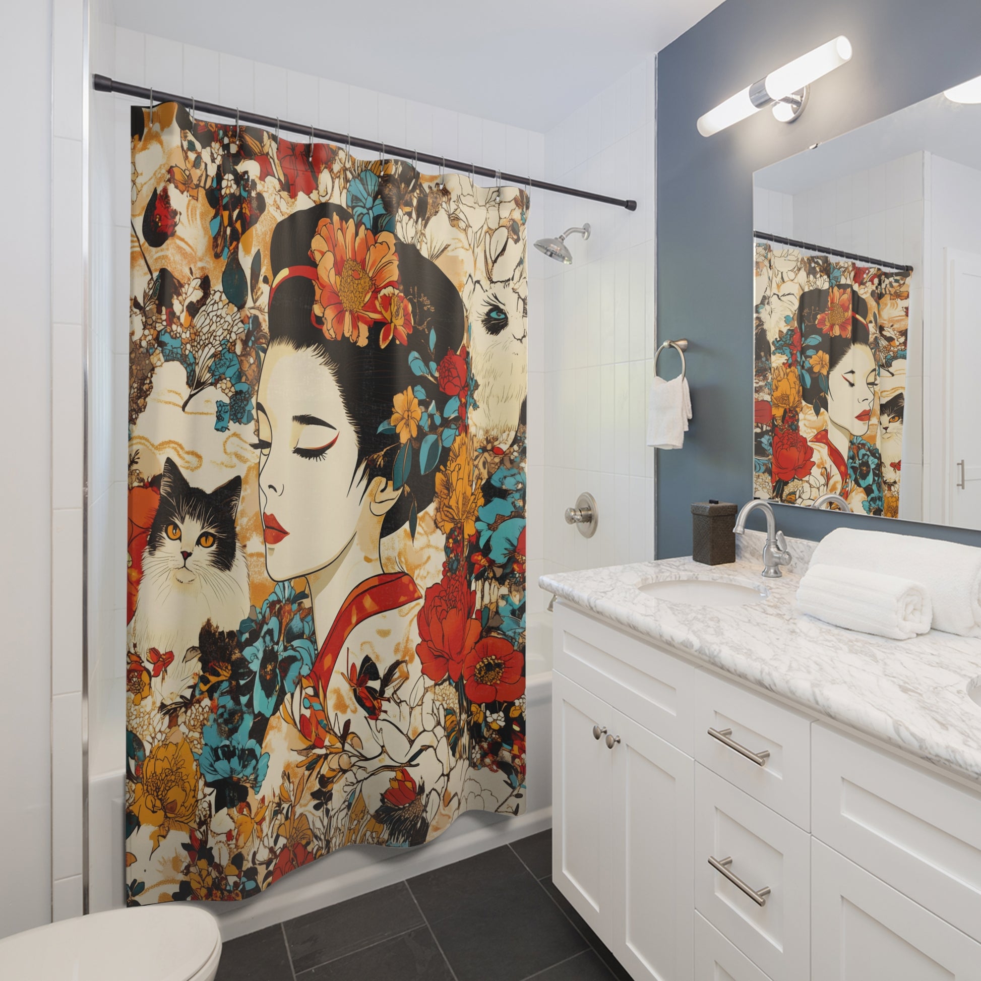 This shower curtain is here to add an original touch to any bathroom with your designs. Made with highly durable polyester, this curtain stays like new for a long time to come and is a perfect printing area for your art. Please note: While polyester offers adequate protection against water, a liner might be necessary for full waterproofness.