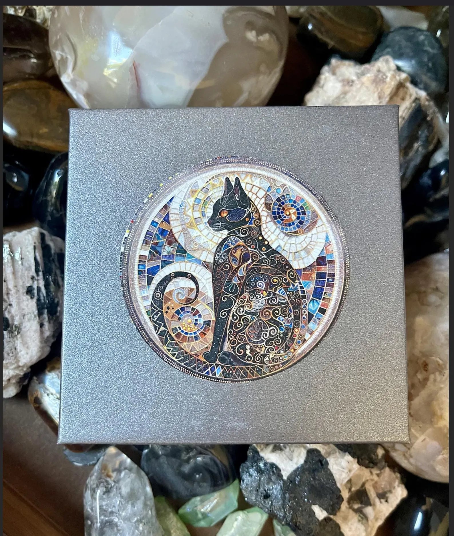 Gift Boxed Cat and Hag Stone With Artisan Bronze Heart Charm, Bodhi Jewelry