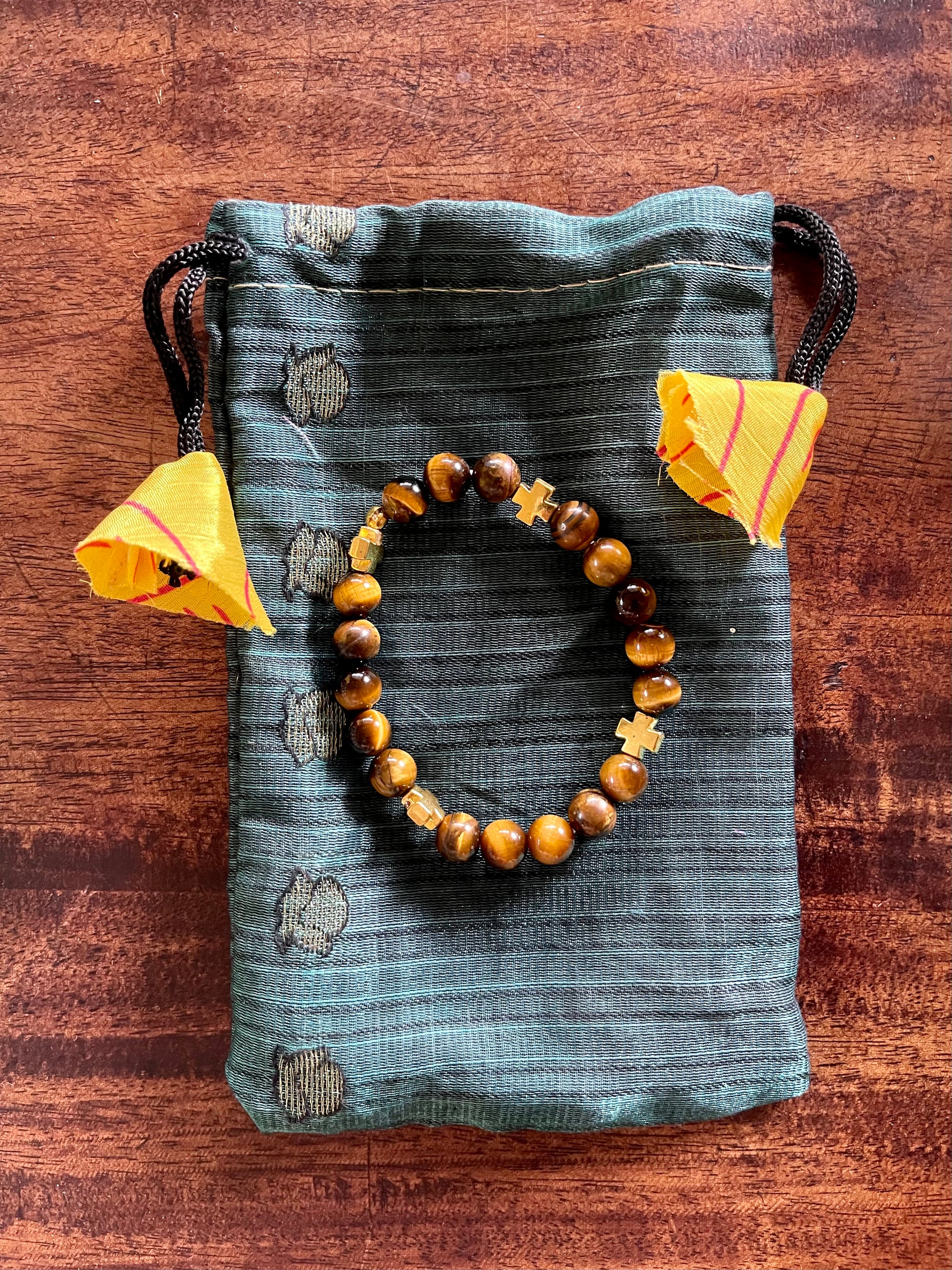 Goddess Hand Beaded Tiger's Eye Bracelet, Bodhi Jewelry