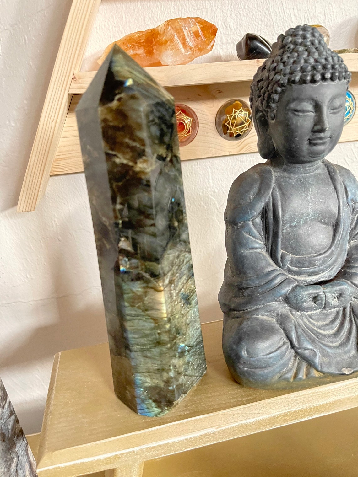 Iridescent labradorite is a highly mystical and protective stone, a bringer of light.