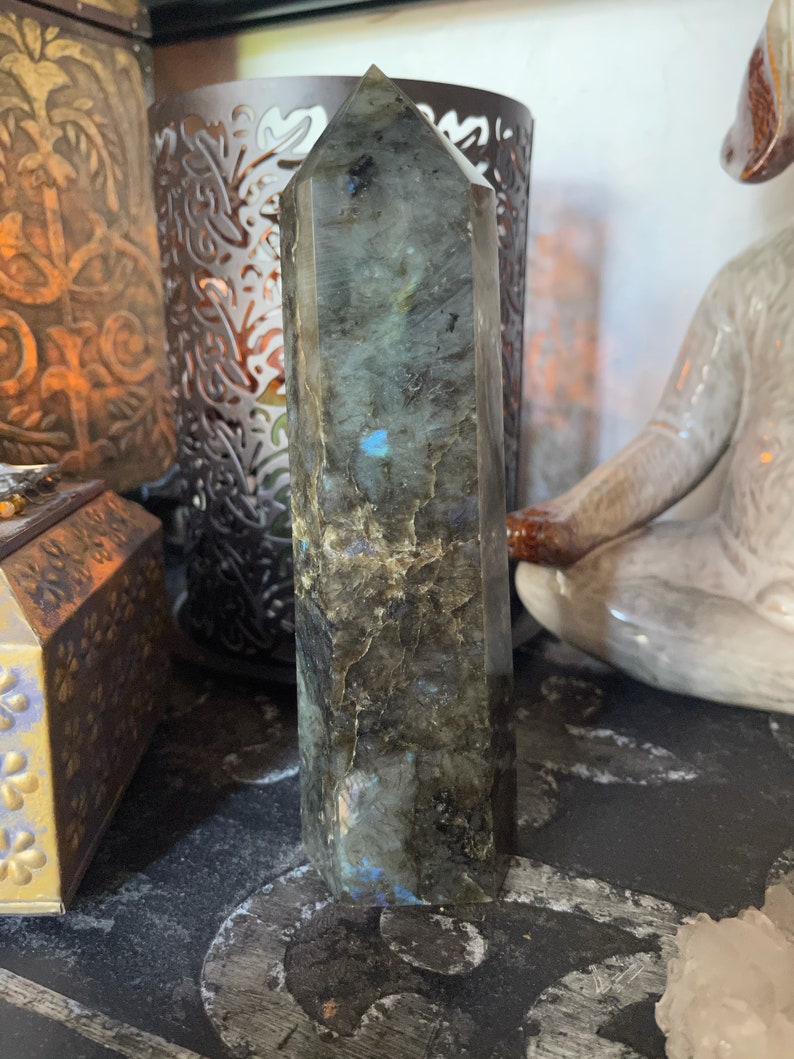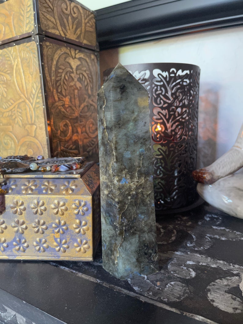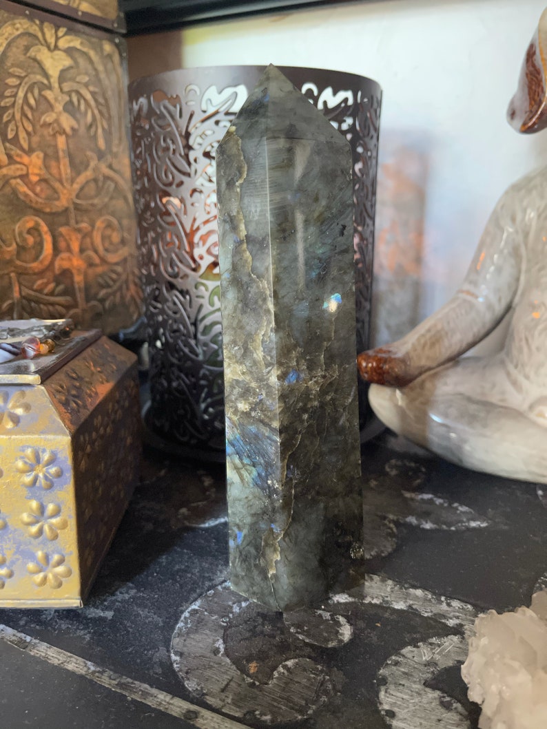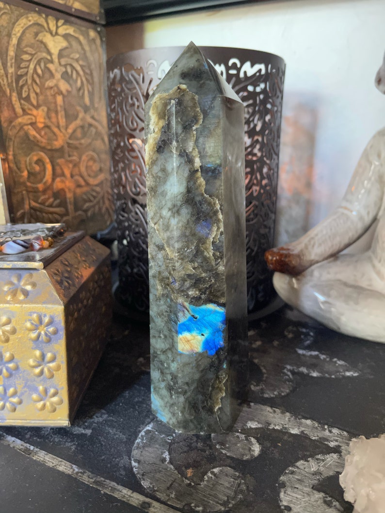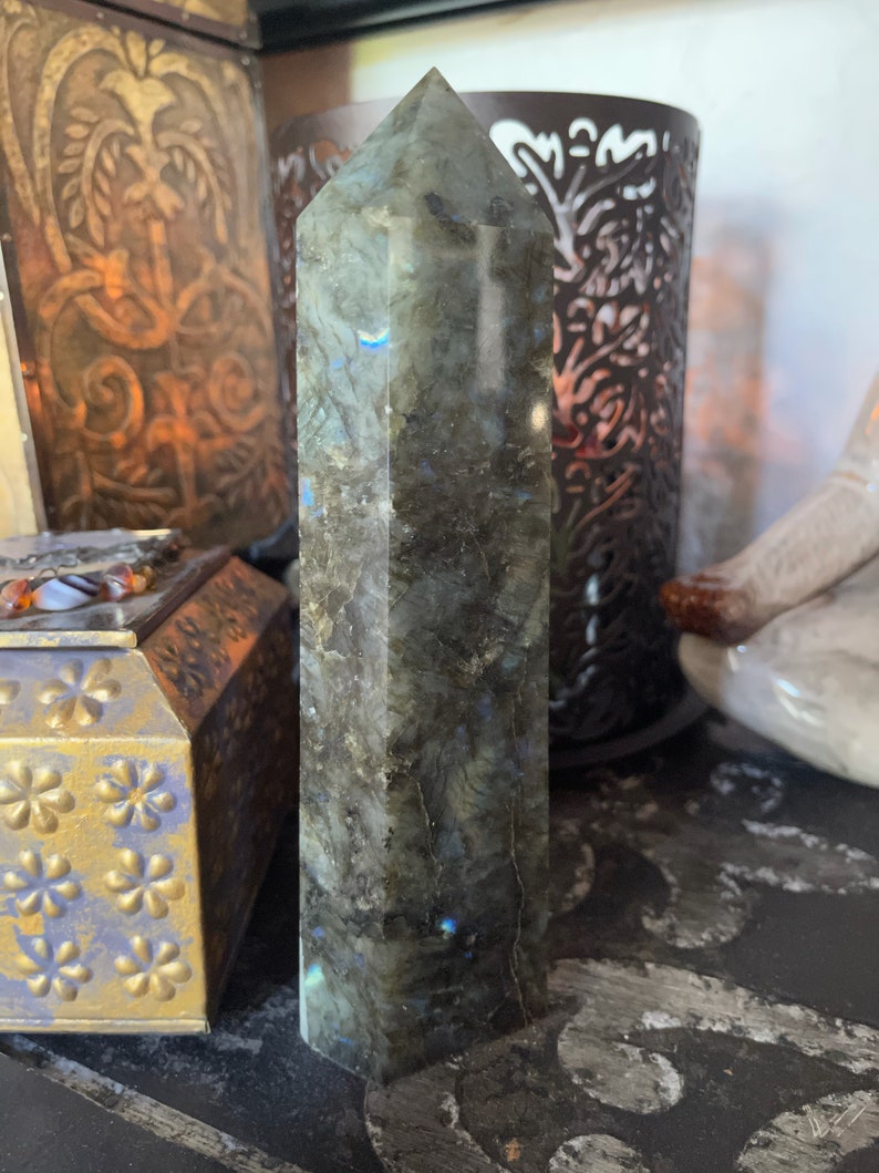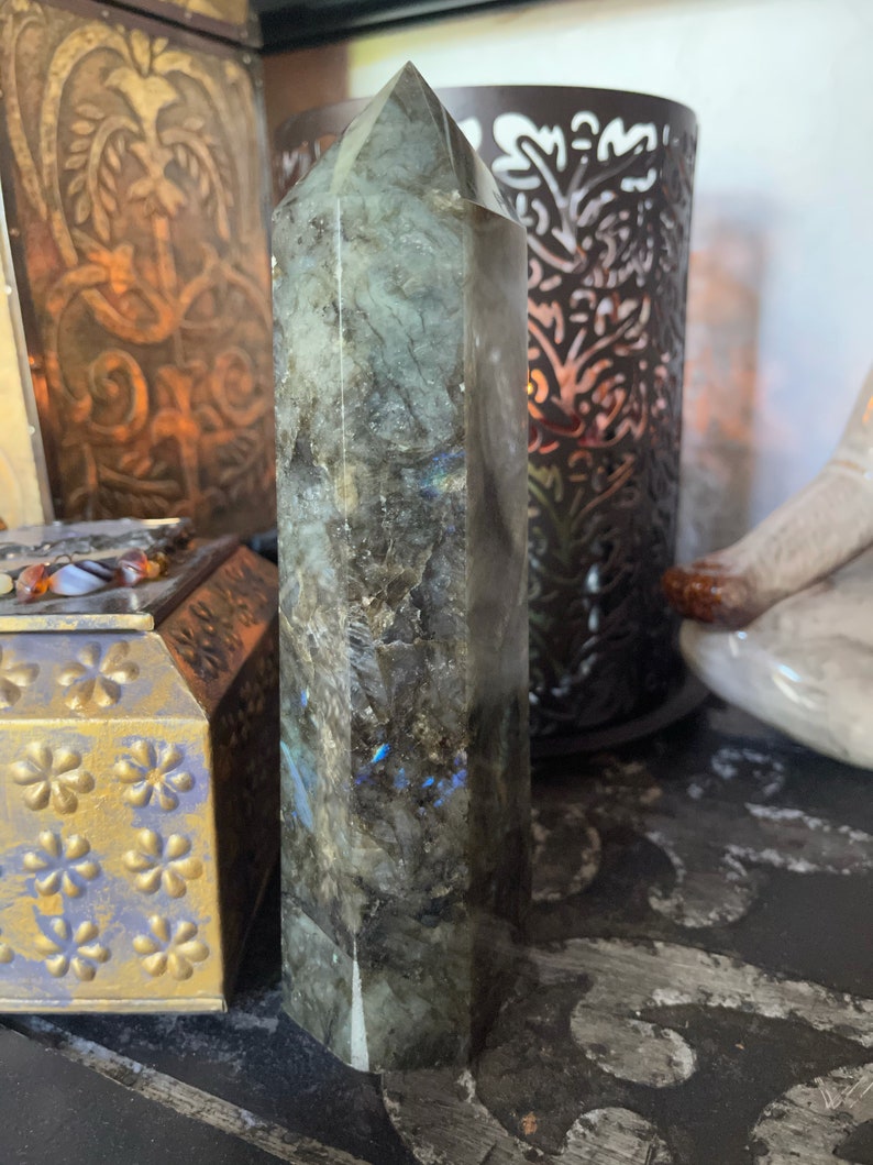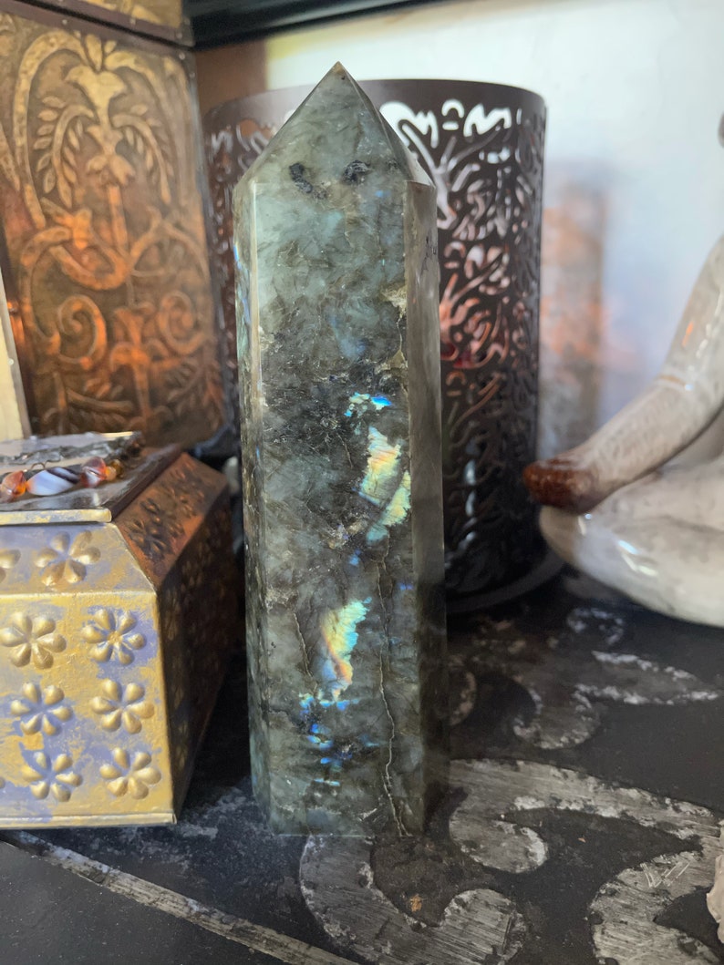 Gorgeous Flash Tall Labradorite Tower, Crystal Magic
