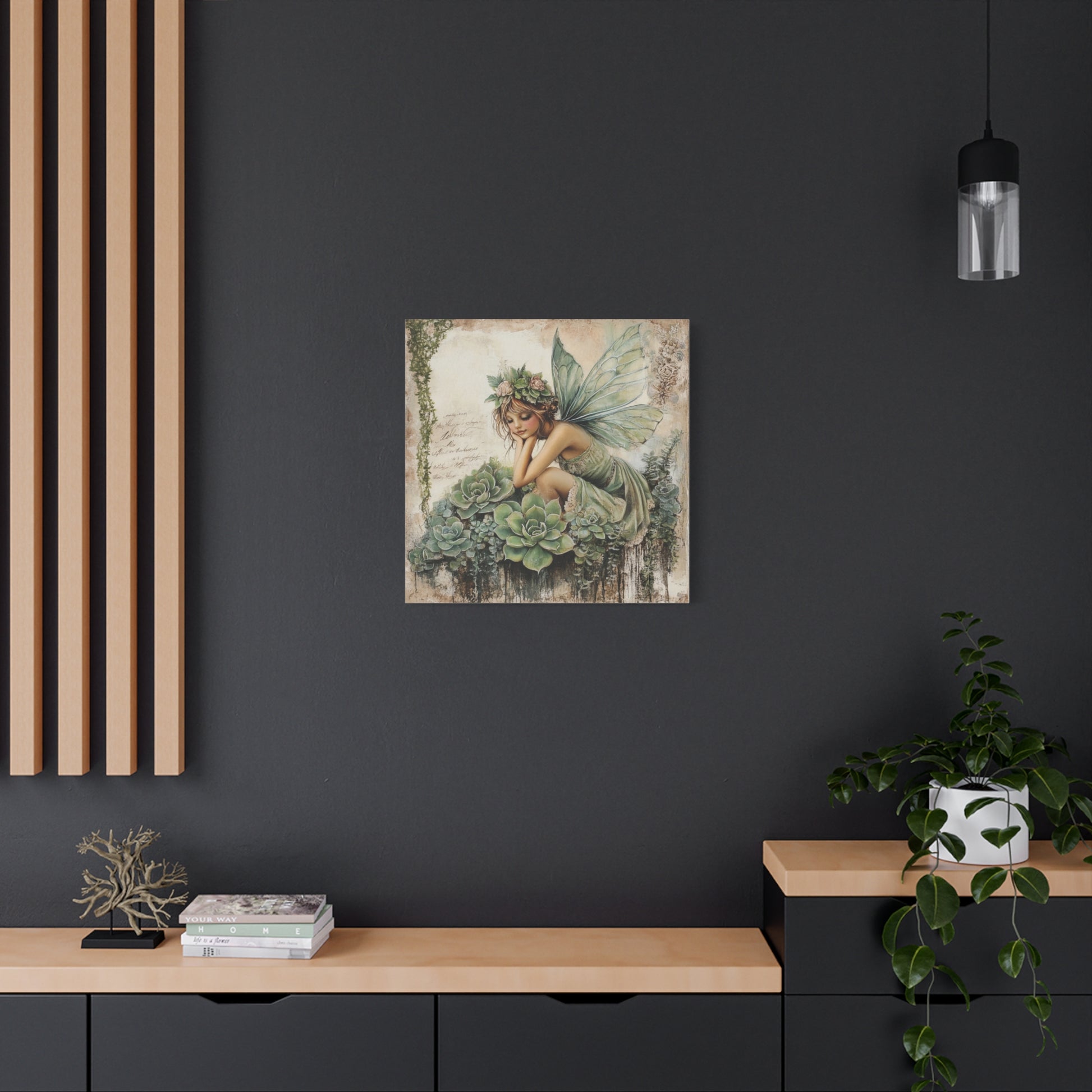 Transform your space with this enchanting matte canvas, designed to inspire a serene and whimsical atmosphere. Featuring stunning artwork of a fairy amidst lush succulents, this piece invites a touch of magic into any room. Perfect for nature lovers and those who appreciate fantasy art, it fits effortlessly in bedrooms, living areas, or creative spaces. With the versatility to suit various decor styles, it’s an ideal gift for birthdays, housewarmings, or special occasions. Celebrate the beauty of nature and bring joy and wonder into everyday life with this captivating canvas.