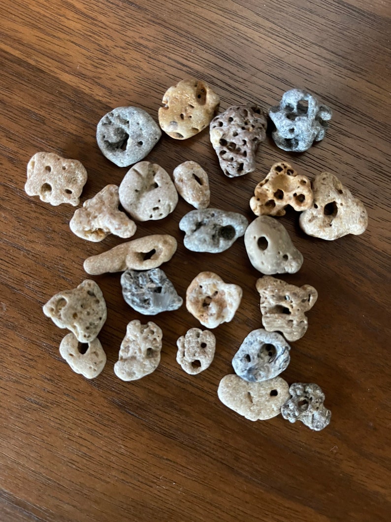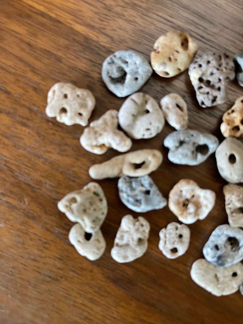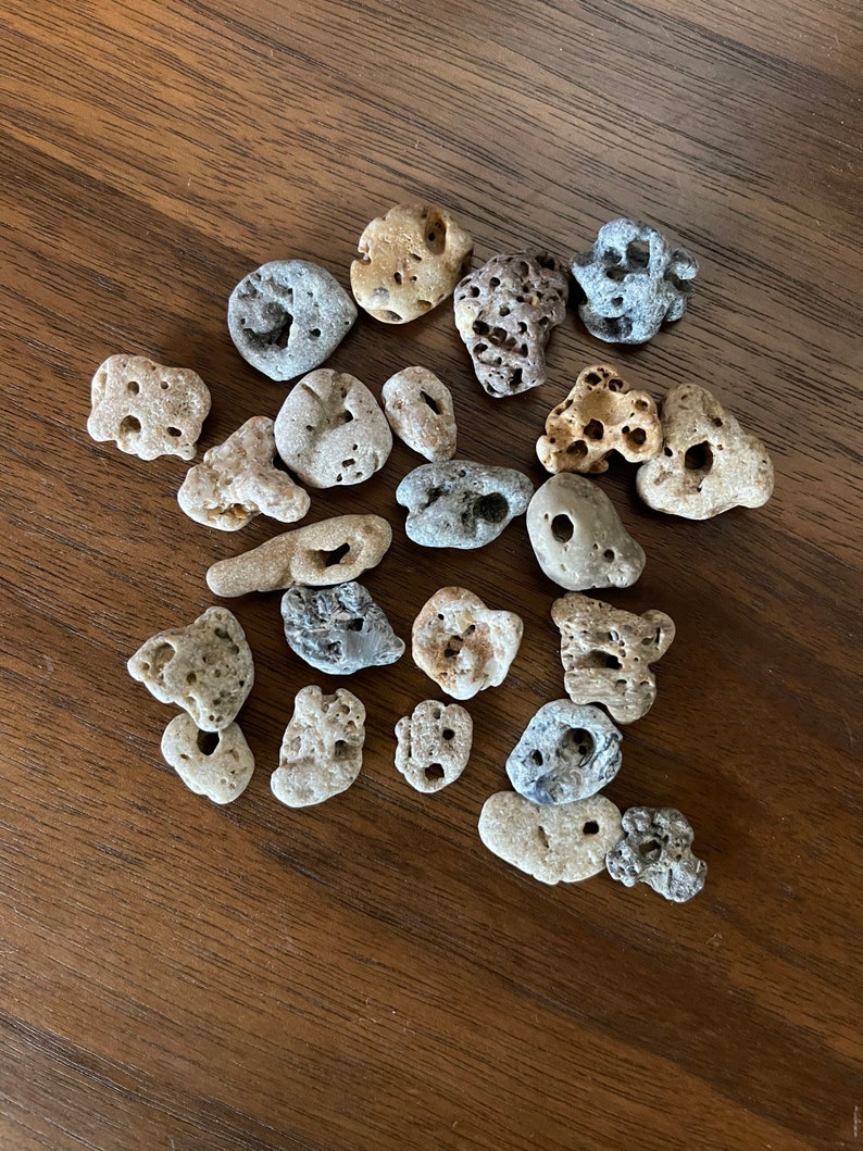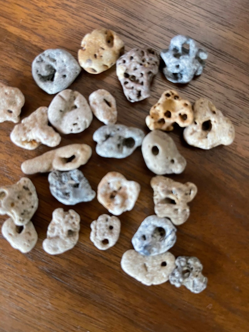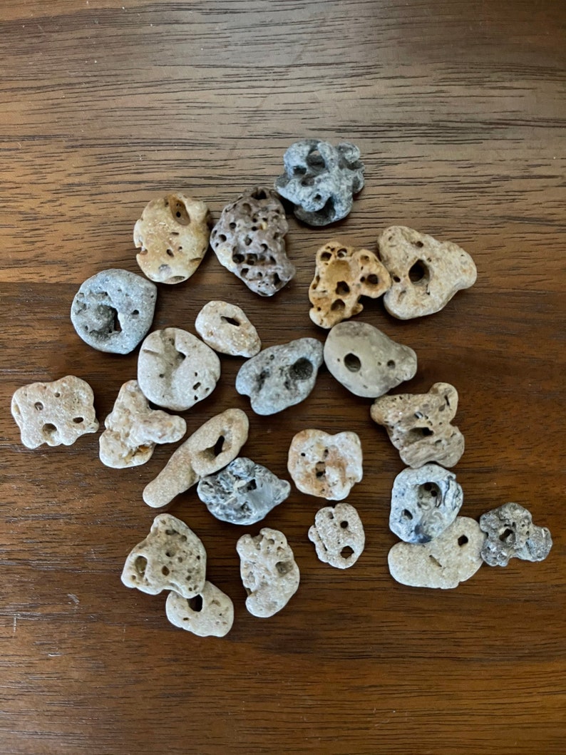 These are beautiful hag stones found on the beaches of our islands in SW Florida.