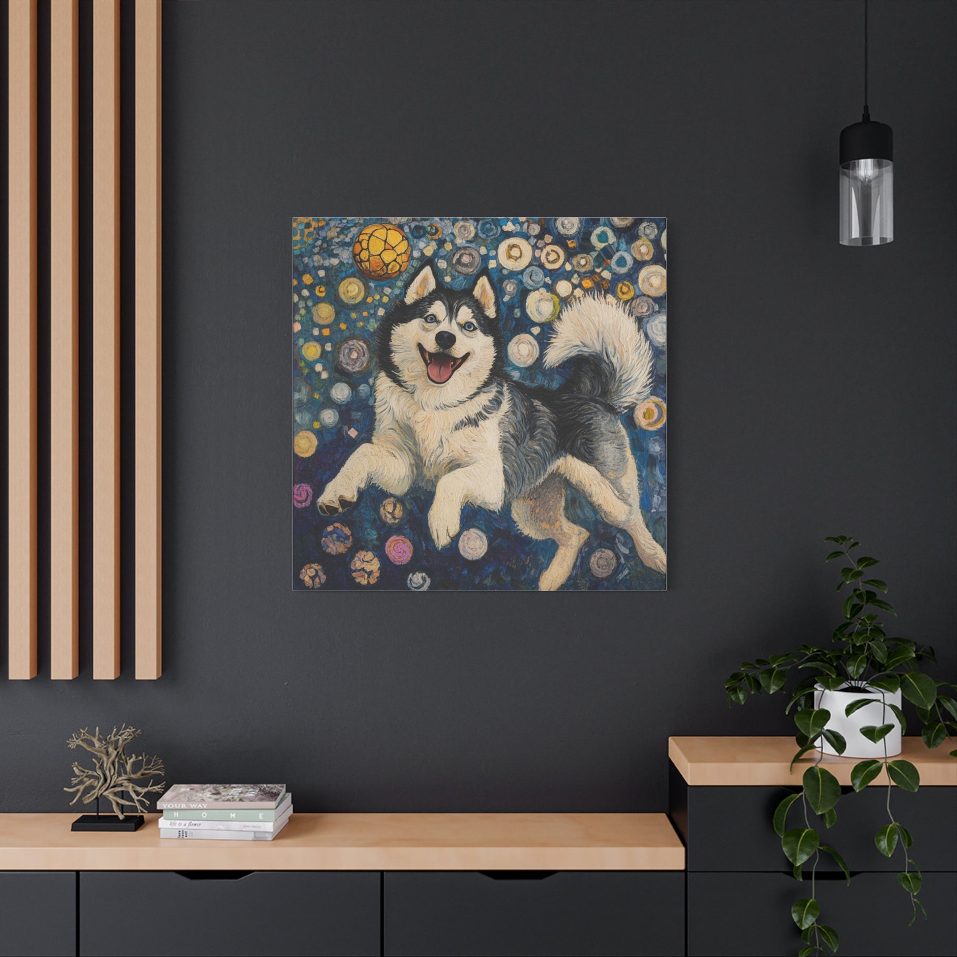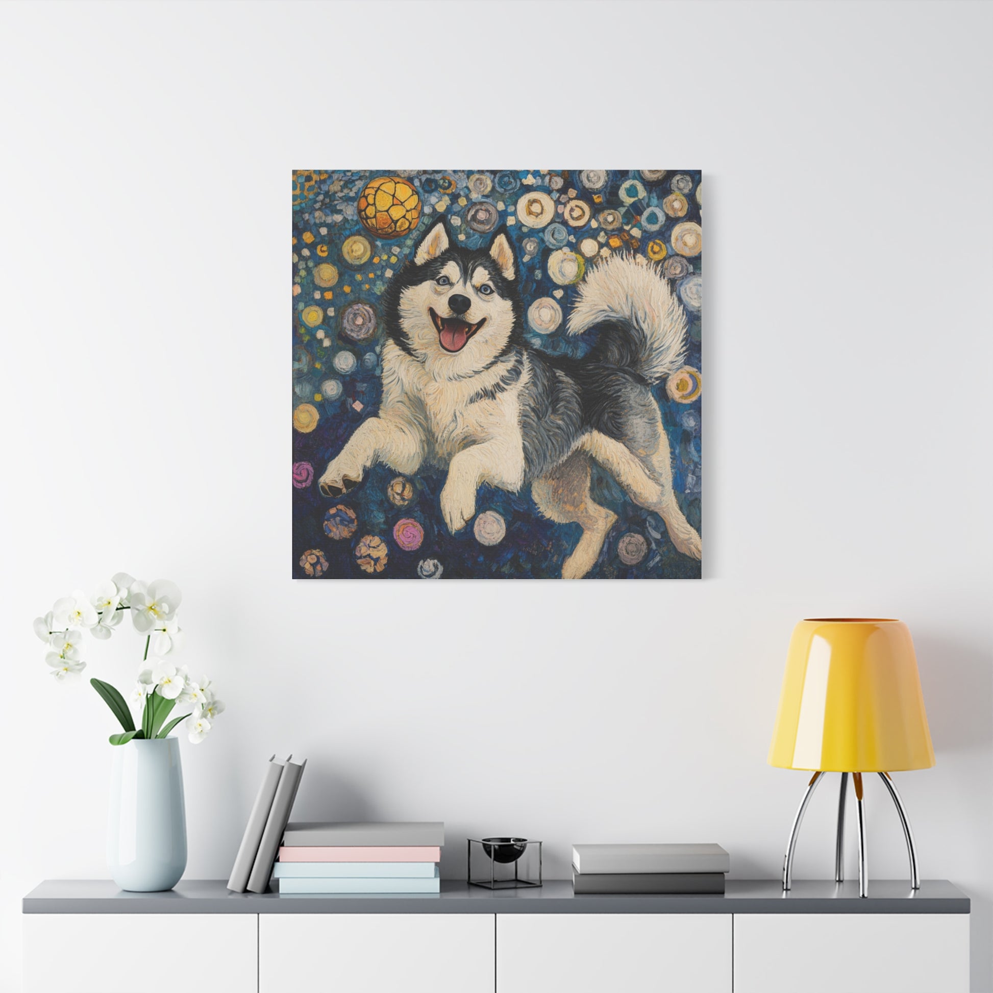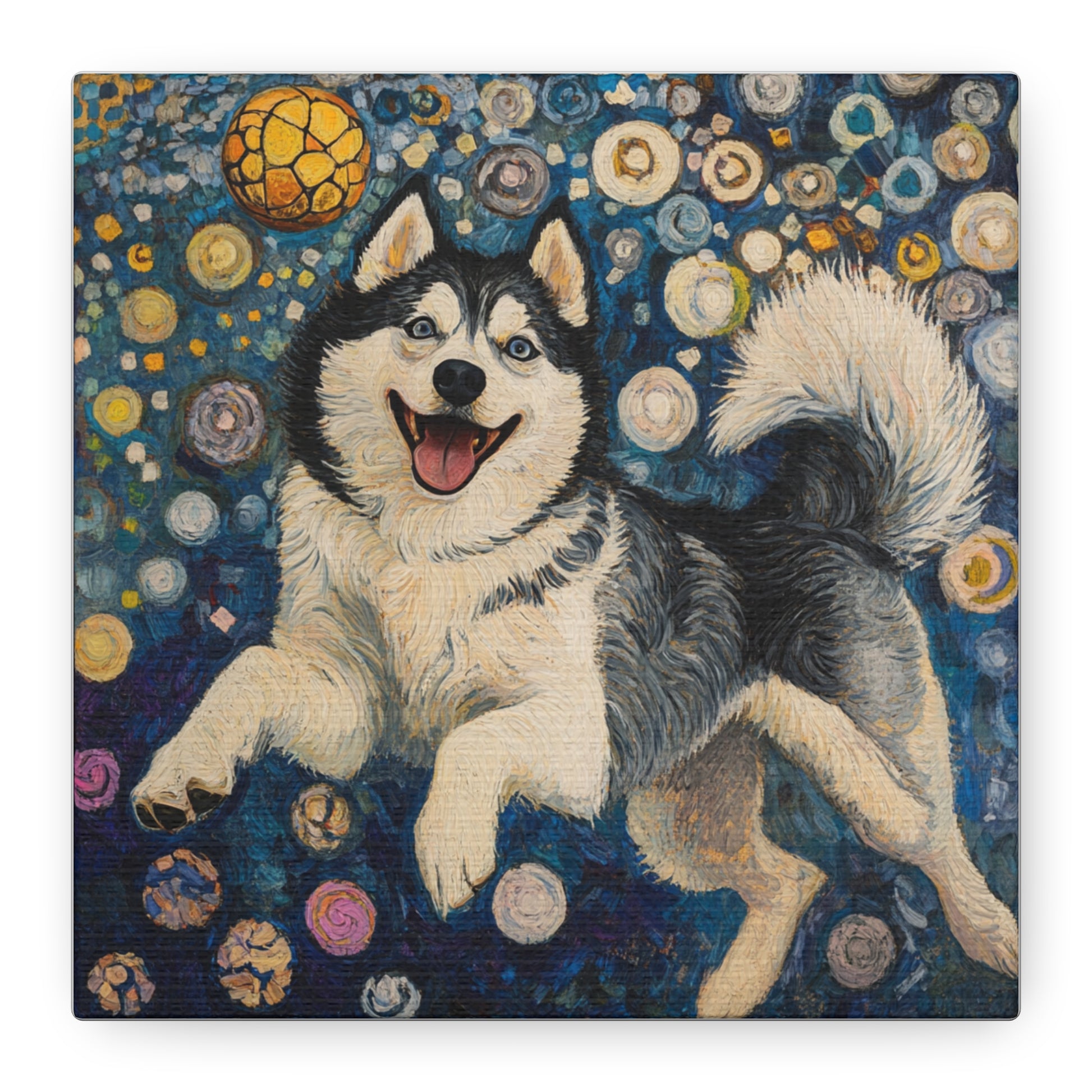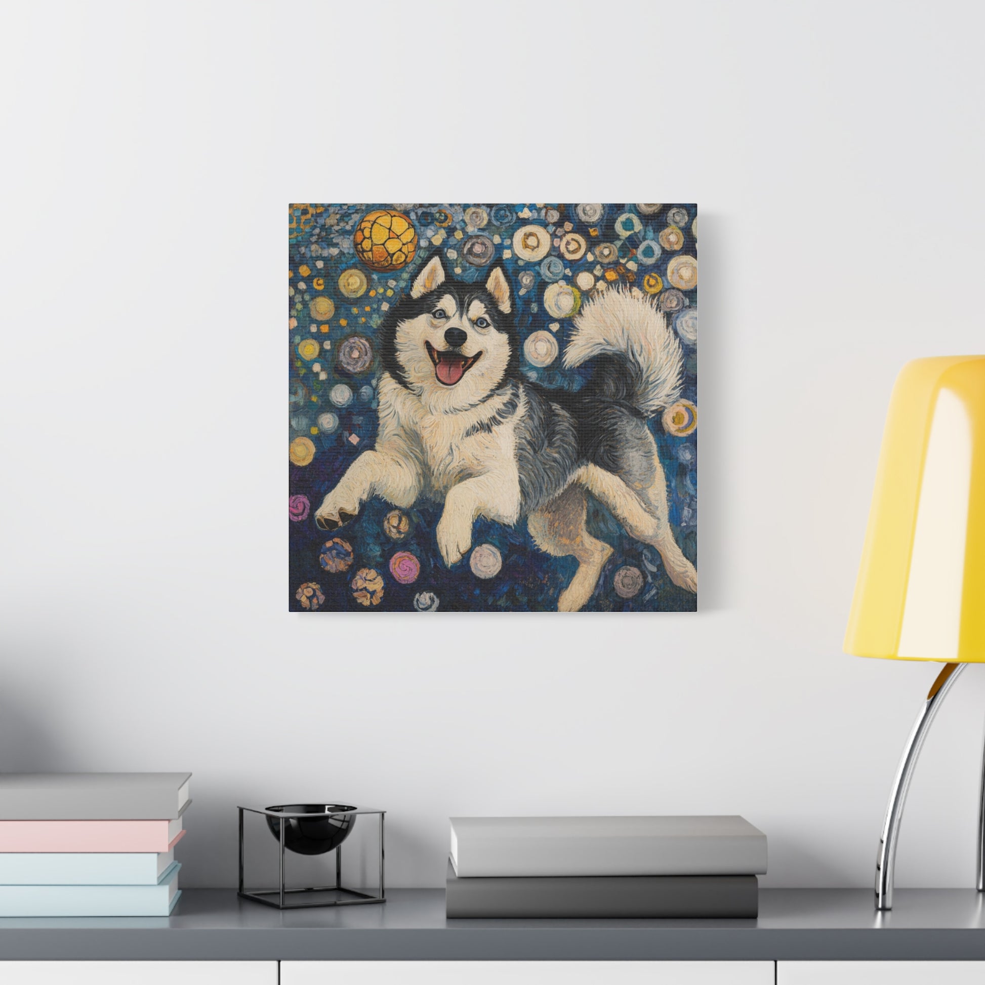 Joyful Husky Canvas Art, Pet Wall Decor, Dog Lovers Gift, Home Decoration, Animal Art, Husky Portrait