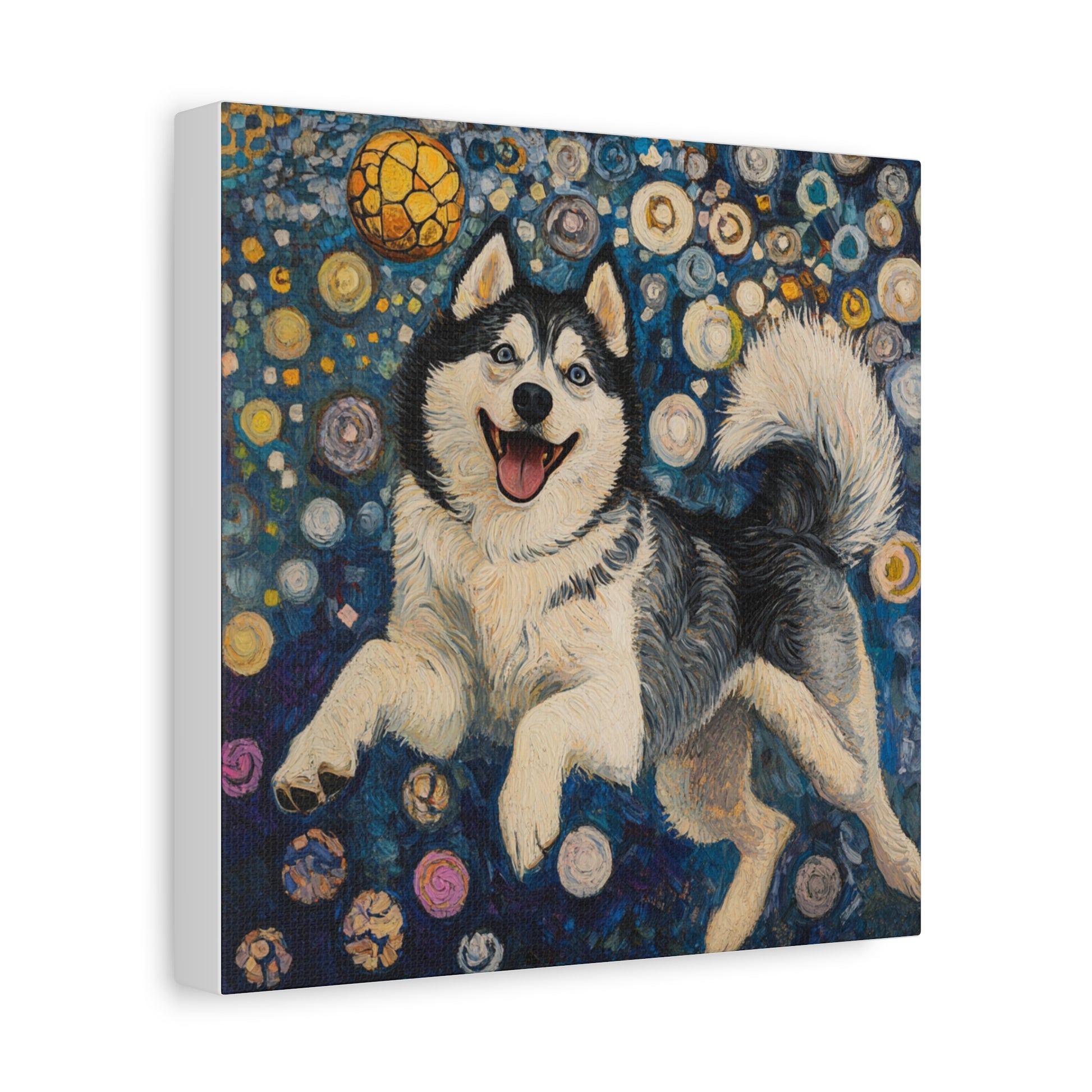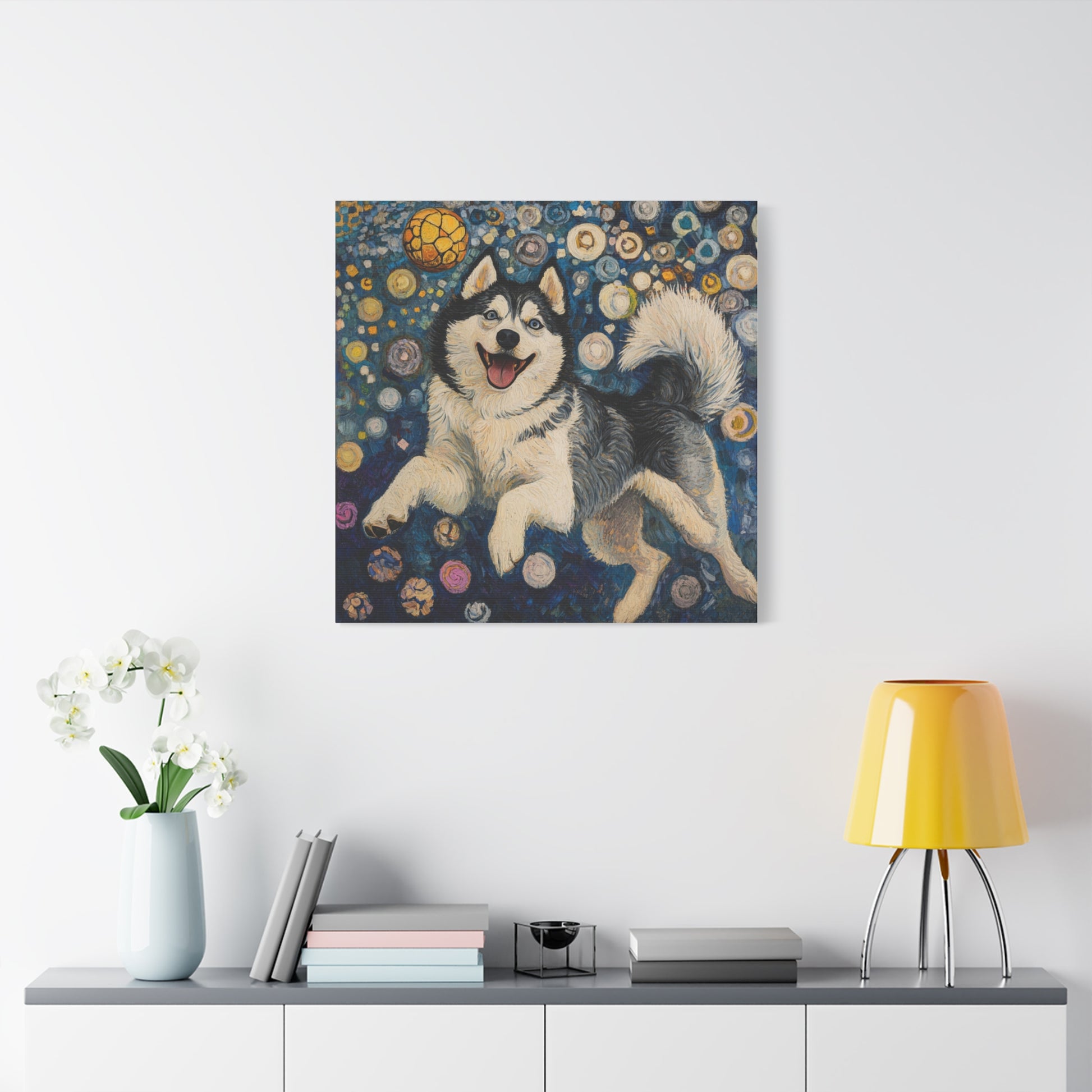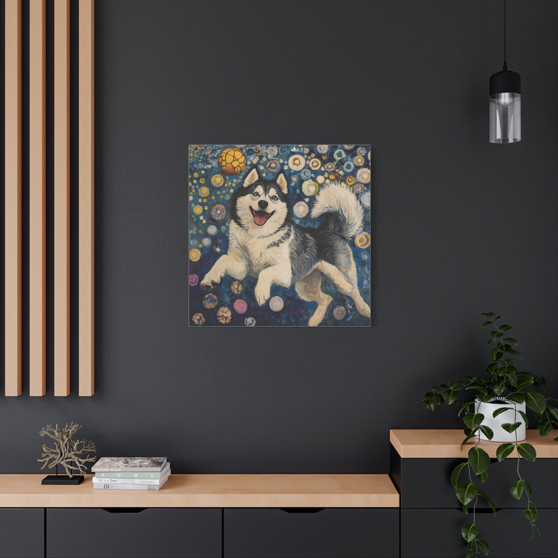 Joyful Husky Canvas Art, Pet Wall Decor, Dog Lovers Gift, Home Decoration, Animal Art, Husky Portrait