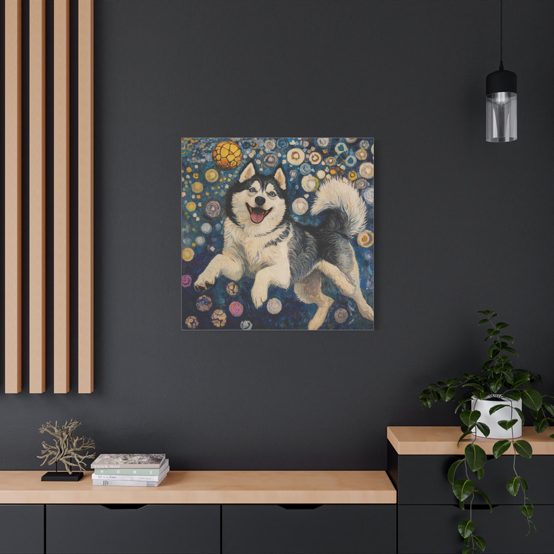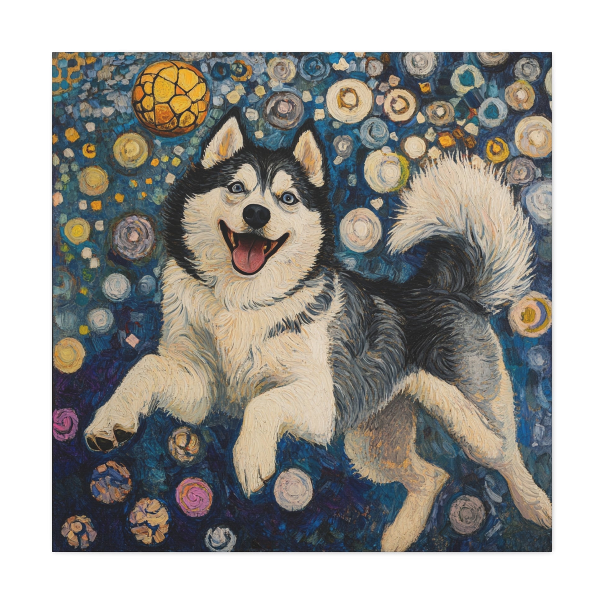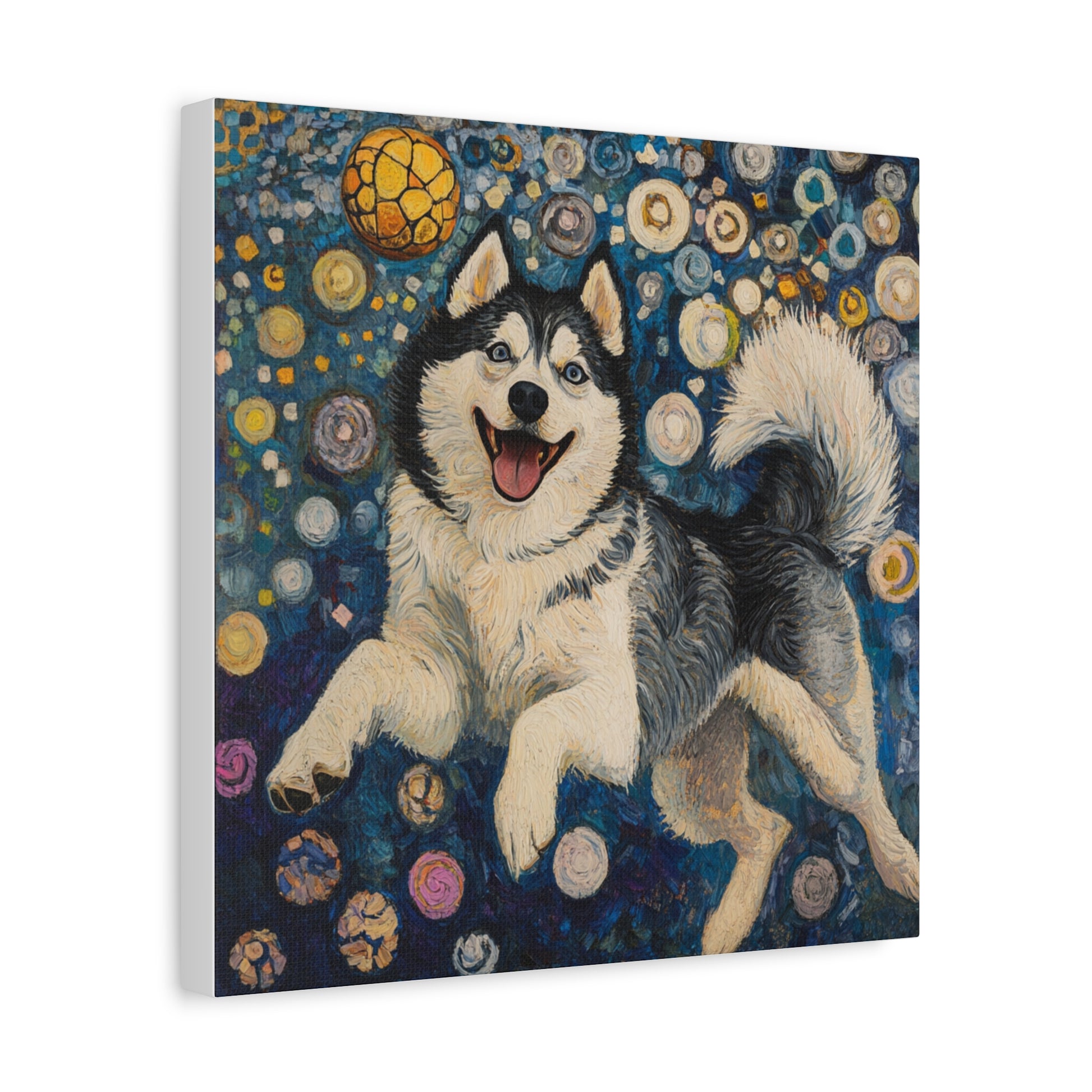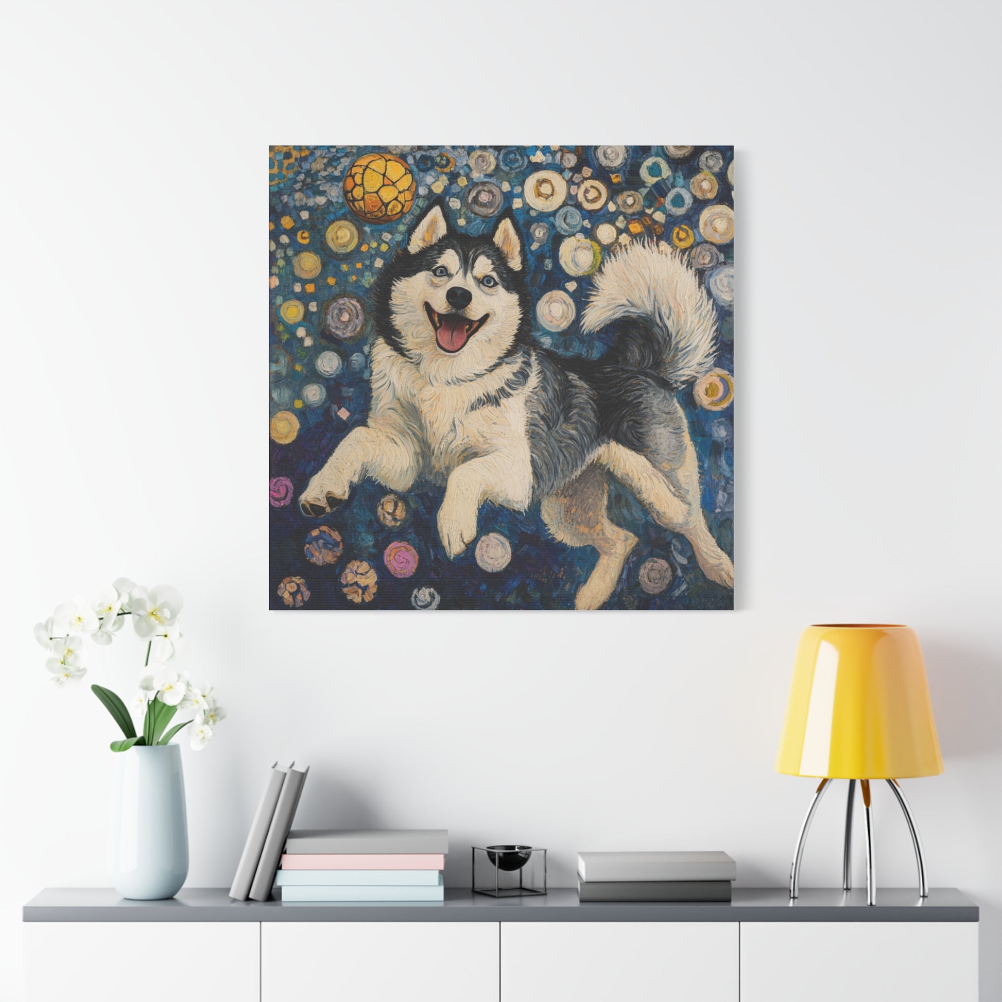 Joyful Husky Canvas Art, Pet Wall Decor, Dog Lovers Gift, Home Decoration, Animal Art, Husky Portrait